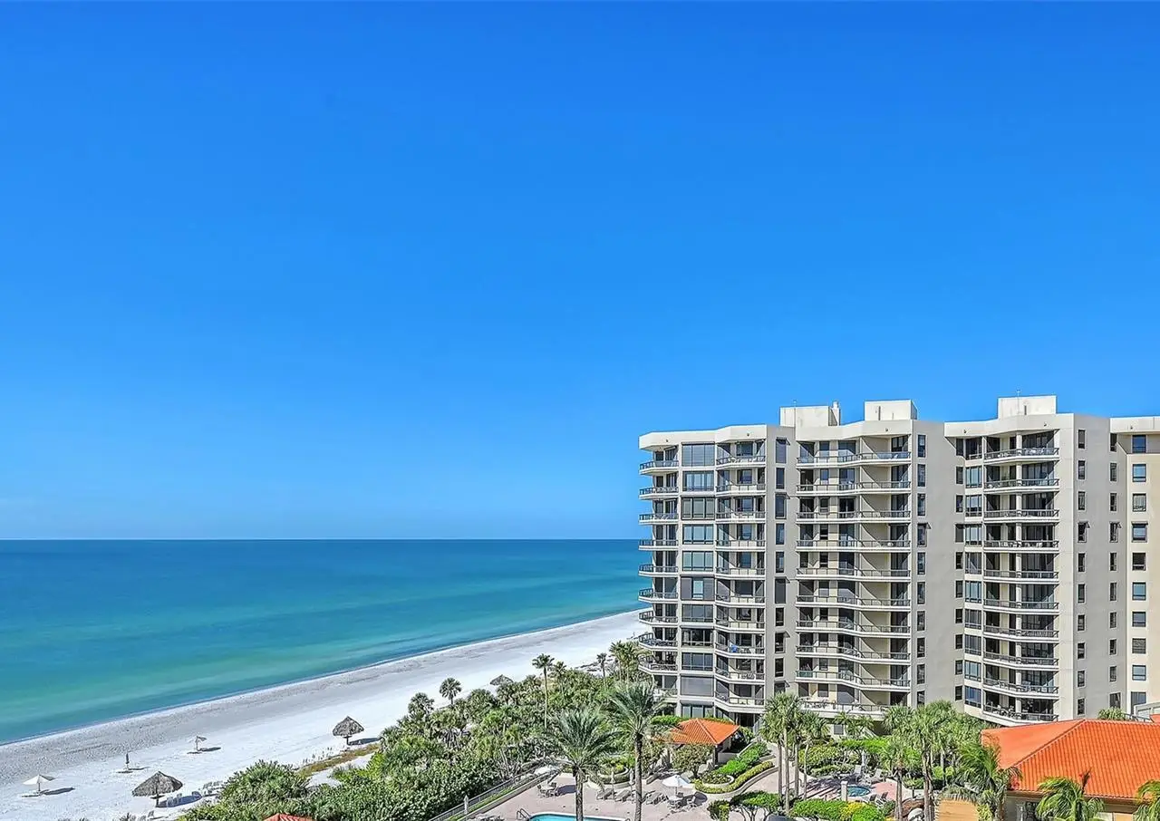 Experience unparalleled coastal elegance at The Water Club on Longboat Key, a premier gated beachfront community spanning 16 acres of lushly landscaped grounds. This eighth-floor Brighton residence offers three bedrooms, panoramic Gulf, beach, and bay views, and two expansive terraces, ideal for sunsets and entertaining. A semi-private elevator opens directly into a grand foyer with floor-to-ceiling windows overlooking Sarasota Bay and the city skyline. Ten-foot ceilings, extensive glass walls, and storm protection shutters enhance both comfort and sophistication. The primary suite features a private terrace, den, dual bathrooms, and walk-in closet, while a split-bedroom layout ensures privacy for two generous guest suites with en-suite baths. The gourmet kitchen offers ample storage and a breakfast area with stunning water views. Residents enjoy resort-style amenities including a 17,000 sq. ft. clubhouse, fitness center, spa, heated lap pool and hot tub, four Har-Tru tennis courts, concierge services, billiards room, ballroom, library, firepit, and grilling areas, along with under-building parking, climate-controlled storage, on-site management, and 24-hour security. Located at the south end of Longboat Key, enjoy close proximity to Longboat Key Club golf, Publix shopping, St. Armands Circle, downtown Sarasota, and Sarasota International Airport. Pet-friendly and impeccably maintained, this residence offers the pinnacle of coastal luxury living.