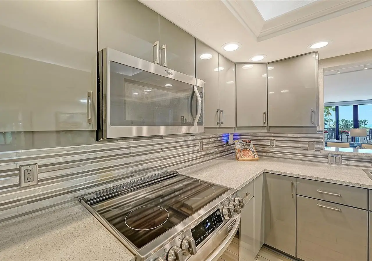 Welcome to luxury Gulf-front living at The Players Club. This sophisticated three-bedroom, three-bathroom end-unit condominium offers unobstructed Gulf views from two spacious covered balconies. Its thoughtfully designed floor plan maximizes vistas and natural light across an expansive interior. The residence has undergone a comprehensive renovation, featuring a modern kitchen outfitted with custom cabinetry, quartz countertops, a center island adorned with stainless steel and espresso wood base cabinets, as well as a contemporary tile backsplash and high-end appliances. Additional upgrades include new porcelain plank flooring, freshly painted walls, updated baseboards, designer window treatments, and enhanced lighting throughout. All bathrooms have been beautifully updated with new cabinetry, countertops, tile, and premium fixtures. The great room layout with two master suites, each providing water views and private access to the extended terrace. Impact-resistant windows and sliding doors have been installed to comply with the latest building codes. For convenience, the unit includes both an assigned under-building parking space and an enclosed garage, accompanied by an external storage room. The Players Club demonstrates a commitment to excellence with recent engineering and reserve studies, ensuring ongoing community stability and maintenance. Elevator systems have been modernized and certified. The association maintains fully funded reserves for long-term reliability. Spanning 11 pristine Gulf-front acres on Longboat Key, this private community offers unparalleled amenities. Life at The Players Club is defined by luxury and leisure. Residents enjoy a newly renovated clubhouse equipped with a state-of-the-art fitness center, library and meeting room, catering kitchen, various gathering spaces, four Har-Tru tennis courts with pickleball capabilities, a 70-foot heated saltwater pool and spa, putting green, fire pits, outdoor grills, lushly landscaped grounds, deeded beach access, and the assurance of 24/7 gated security and on-site management. Players Club is ideally situated near the new St. Regis Resort, with optional membership available at The Longboat Key Club & Resort, granting privileged access to golf, dining, tennis, and the only deep-water marina on the island. Beyond the community, residents benefit from proximity to local conveniences, including Publix, CVS. and boutiques within two minutes, and the upscale shops and restaurants of renowned St. Armands Circle just five minutes away. The famed cultural amenities, many fine dining options, and shopping in downtown Sarasota is just 15 minutes from The Players Club.