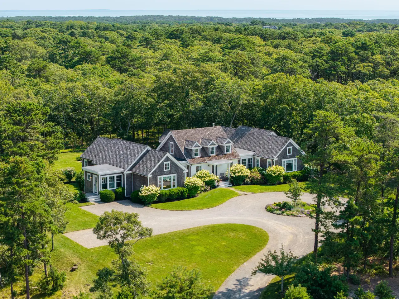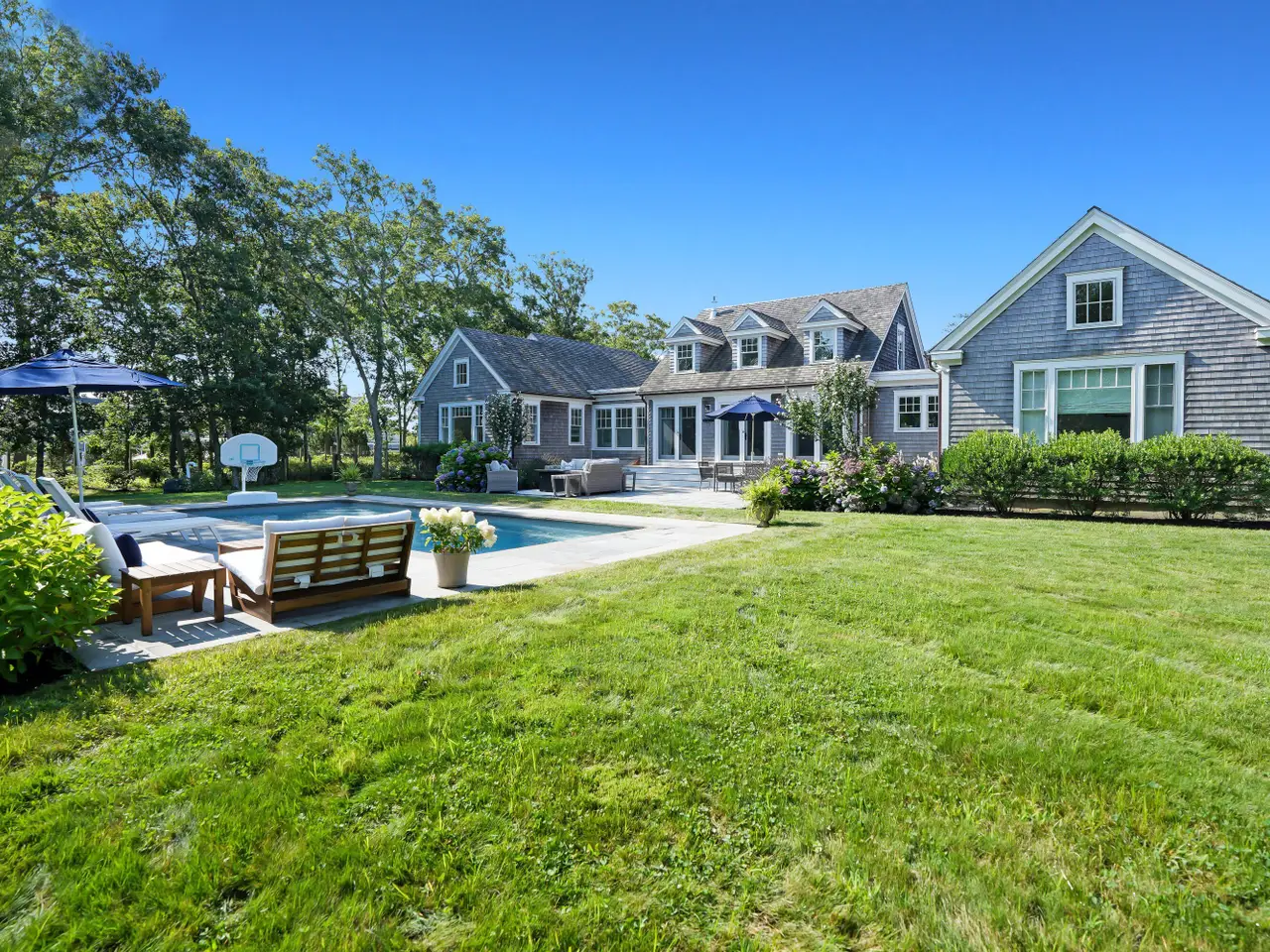 Refined Vineyard Living in The Preserve - Set gracefully on a knoll with sweeping views of a tranquil pond and surrounding grasslands, this beautiful residence offers a masterful blend of traditional coastal architecture and modern luxury. Located in the prestigious enclave of The Preserve, this sprawling home is designed for effortless elegance, privacy, and indoor-outdoor living. At the heart of the home lies an expansive great room with soaring cathedral ceilings, rich paneling, and detailed millwork. Flooded with natural light from an array of dormers and oversized windows, the space is warm and welcoming. Three sets of French doors open to a bluestone terrace, complete with multiple seating areas and a heated, saltwater pool-an idyllic setting for al fresco dining, entertaining and lounging. The chef's kitchen overlooks both the dining area and the great room, creating a seamless flow for everyday living and hosting. Each wing of the home is thoughtfully arranged: one side features a cozy secondary living room or study and a luxurious primary suite with a spa-like bath and custom walk-in closet. The opposite wing houses three generously sized guest bedrooms, each with cathedral ceilings, walk-in closets, and ensuite baths. Additional highlights include a welcoming side entrance with a well-designed mudroom and a separate laundry room, and a finished lower level offering a media room, full bath, and ample storage. Custom built-ins, refined finishes, and architectural details are found throughout, enhancing the home's timeless character and sophistication. Surrounded by beautifully landscaped grounds and mature plantings, the property offers a rare sense of seclusion. The Preserve is a highly sought-after neighborhood with walking trails that connect to conservation land, and easy access to the bike path, Farm Neck Golf & Tennis, and all down-island towns.