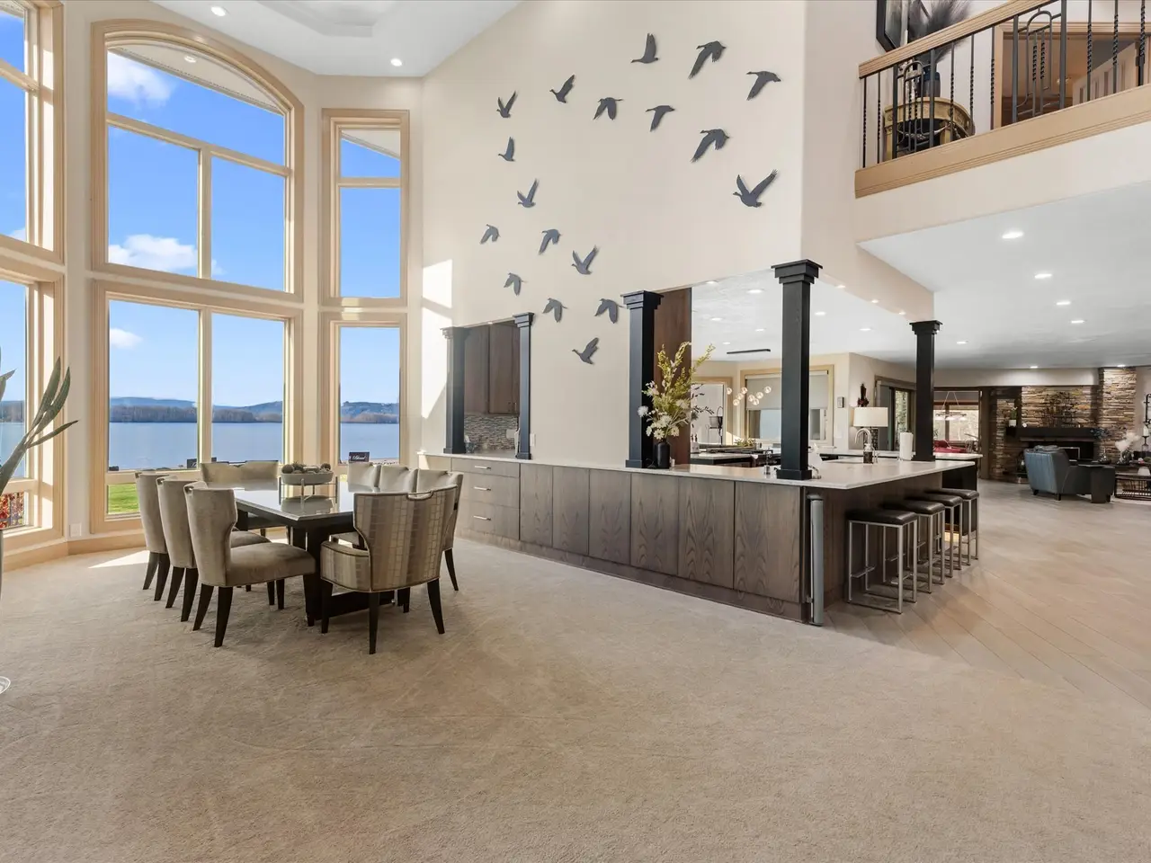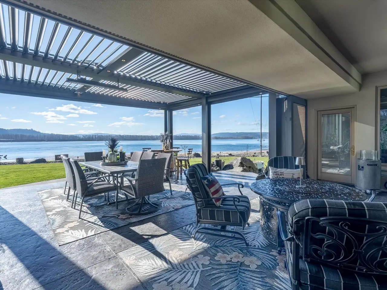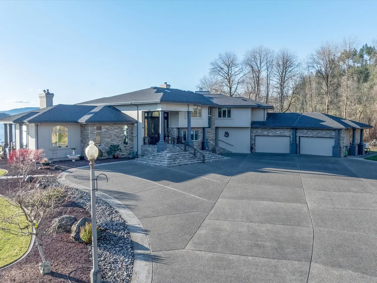 Stunning waterfront estate offers an unparalleled lifestyle, with 16 acres of privacy surrounded by water on three sides. Over 1,000 feet of sandy Columbia River beach and breathtaking views from nearly every room in the 7,280 sq ft home. Picturesque boardwalk leads to the 80-ft long boat dock, ideal for water adventures. Completely remodeled open kitchen is a chef’s dream with 3 ovens, quartz counters, and so much more. River front gazebo is perfect for hosting large gatherings with a full kitchen and the option to enclose-complete with playground, gas fire pit and more. 4 bedrooms, office, 2 versatile flex rooms and 5 bathrooms. Primary suite is an oasis of comfort you'll never want to leave. Garage parking for at least 10 cars and an RV.