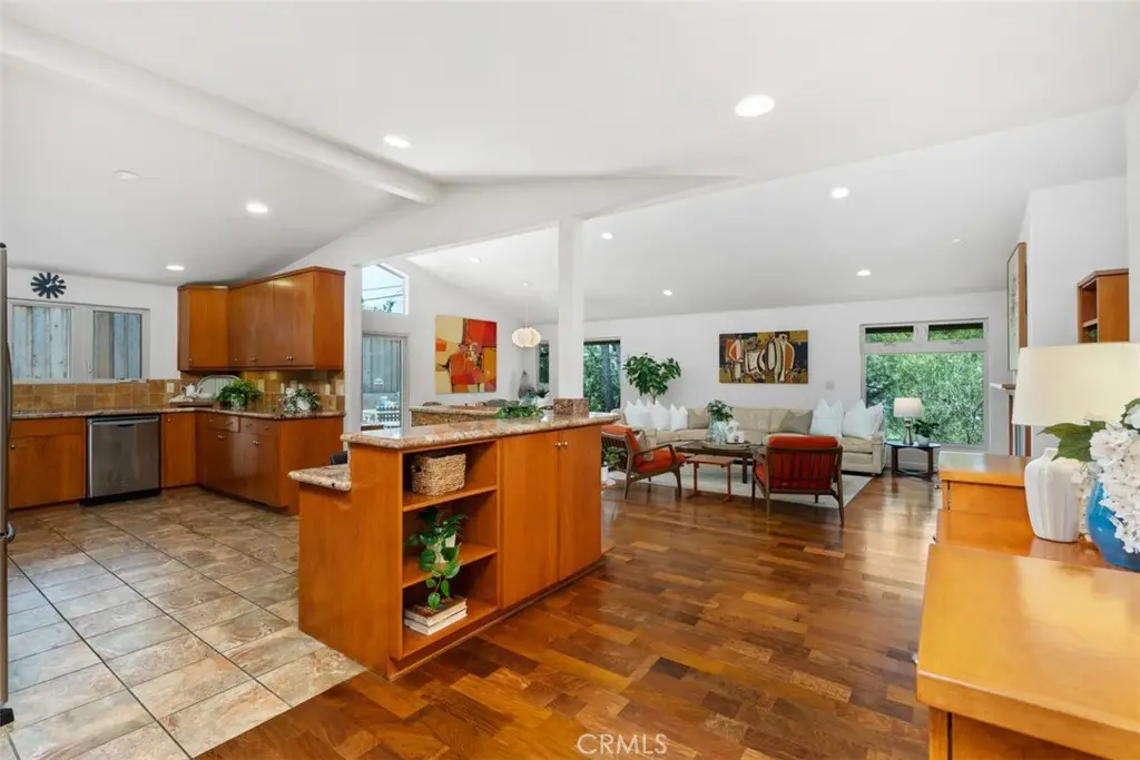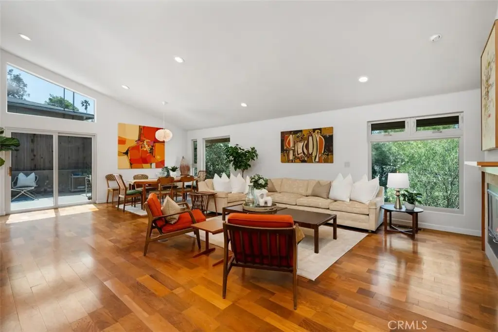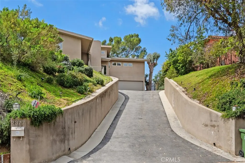 2377 Silver Ridge Avenue, a stunning retreat perched up high in Silver Lake, offers breathtaking views of the Hollywood Sign, Griffith Observatory, and the surrounding hills, providing modern living in one of L.A's most vibrant neighborhoods. This home combines luxury, functionality, and style with thoughtful design elements throughout. The home features a spacious driveway that accommodates 5 or more cars, a rarity in the area, along with a direct-access 2 car garage. Recessed lighting, hardwood flooring, and abundant windows flood the home with natural light. Designed to live like a single-level home, the primary bedroom, secondary bedroom, kitchen, living room, and laundry room are all conveniently located on the main level. The home was also designed to accommodate a future elevator if desired. The great room concept seamlessly connects the kitchen, family room, and dining area, with the dining space offering direct access to a tranquil patio, ideal for entertaining. The kitchen includes a step-in pantry, granite countertops, stainless steel appliances, a gas cooktop with a vent hood, and ample cabinetry. A counter seating area also serves as a convenient workspace. The primary bedroom offers captivating views of Silver Lake, the Hollywood Sign & Griffith Observatory, with a spacious walk-in closet featuring a custom built-in storage system. The ensuite bathroom includes a luxurious bayless walk-in shower, bench seating and multiple shower heads, plus a separate make-up vanity area. The secondary main-level bedroom is currently used as an office/den, with direct access to the patio. The secondary bathroom features a tub/shower combo. The outdoor patio area is peaceful and perfect for barbecues and outdoor gatherings. The lower level includes a third bedroom, ideal as a guest bedroom or private office, as well as a powder bath and a flex space currently used as a fitness area. The direct-access garage is also on this level, with the home designed for a potential future elevator installation. Located in the heart of Silver Lake, this home is just minutes from Whole Foods, Silver Lake Library, trendy cafes, shops, and green spaces around the Silver Lake Reservoir. Griffith Park, the Hollywood Hills, and Downtown L.A. are all easily accessible. Silver Lake is known for its modernist architecture, artistic vibe, and dynamic food scene. The neighborhood's blend of culture, nature, and nightlife makes it one of the most desirable areas to live in Los Angeles.
