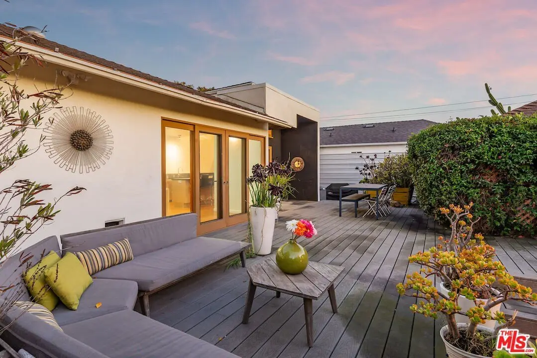 Welcome to 7713 Anise Ave, a thoughtfully renovated contemporary retreat in Westchester's coveted North Kentwood neighborhood, perfectly blending modern design with the relaxed ease of Southern California living. Meticulously reimagined by Eva Sobesky of EIS Studio, this home showcases her signature approach to modern comfort, with clean lines, natural textures, and an effortless connection between indoor and outdoor spaces. The three-bedroom, two-bath layout is light-filled and inviting, with bamboo flooring, a sleek fireplace, and custom built-in cabinetry throughout. The remodeled kitchen and bathrooms reflect a refined yet approachable aesthetic, while clerestory windows in the kitchen bring in abundant natural light, creating an atmosphere of calm and openness. Step beyond the gates to your private outdoor sanctuary: desert-inspired landscaping, pomegranate and lemon trees, a cozy firepit, hot tub, and outdoor shower provide the perfect setting for gatherings or quiet reflection. A separate stand-alone bungalow (approx. 150 sq ft.) serves as a private office or creative studio, offering versatility and privacy for modern living. The two car garage comes equipped with a EV charger. Perfectly situated just minutes from Playa Vista, LAX, and a short drive to Venice, Santa Monica, Manhattan Beach, and Hermosa Beach, this home offers the ideal combination of tranquility, style, and Southern California convenience.