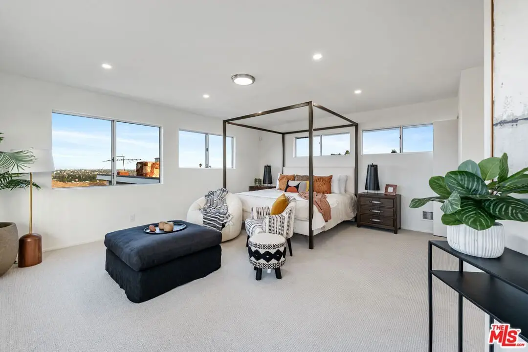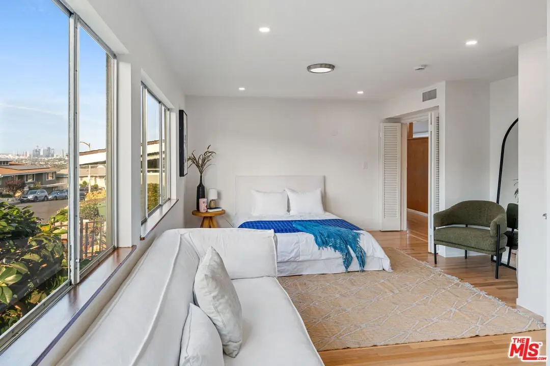 Welcome to this striking Mid-Century Modern residence, thoughtfully updated to blend timeless architecture with today's modern comforts. Perched in a cul-de-sac in the sought-after Baldwin Hills Estates neighborhood, this home showcases expansive use of glass that flood the interior with natural light while framing captivating views of the city and surrounding hillsides. The open-concept kitchen is a true showpiece, featuring brand-new stainless steel appliances, custom solid wood Shaker-style cabinetry, quartz countertops, stainless farm sink, and warm plank flooring. A cozy breakfast area with scenic outlooks offers the perfect start to your day. Flowing seamlessly from the kitchen, the family room boasts soaring vaulted ceilings and a dramatic fireplace, creating an inviting space for both casual living and entertaining. Original refinished hardwood floors highlight the home's character, while the spacious primary suite has been refreshed with designer Berber carpeting, a generous walk-in closet, and sweeping city light views that stretch all the way to Downtown Los Angeles. Two additional bedrooms provide comfort and flexibility, ideal for family, guests, or a home office. Functionality is enhanced with a dedicated laundry room/service porch, two-car attached garage, LED lighting, and abundant storage throughout. Outdoors, the property embraces its Mid-Century spirit with clean lines, natural light, and a sense of indoor-outdoor flow. Adding to its appeal, the home is located just minutes from Kenneth Hahn State Recreation Area and the scenic Baldwin Hills Scenic Overlookperfect for hiking, jogging, or simply enjoying the outdoors. With convenient access to Culver City, the Westside, and DTLA, this property combines style, comfort, and location in one remarkable package. Discover the perfect balance of classic design and modern living!