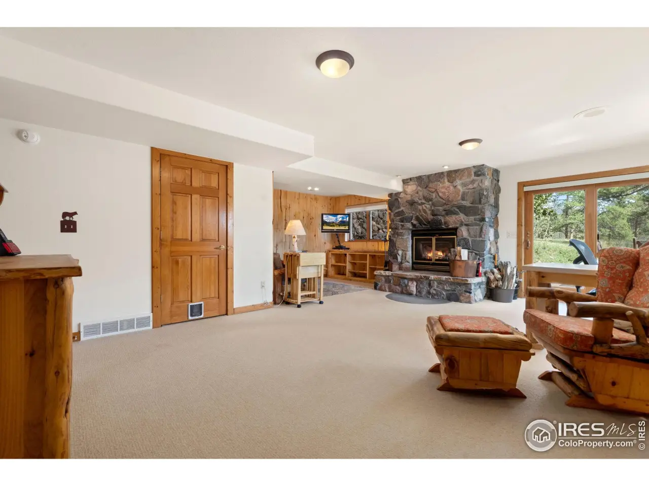 Welcome to 16235 County Road 18E - a truly unbelievable 31-acre mountain horse property known as "Back Home Acres." Just 20 minutes from Mariana Butte Golf Course and only 5 minutes from Pinewood Reservoir, this private retreat offers unparalleled access to wakeless water sports, fishing, hiking, and camping, while providing all the peace and seclusion of mountain living. Enter through the electronic gate to find three horse-safe, fully fenced pastures, a hay barn, and a horse barn with a beautifully finished 675 sq ft upstairs great room complete with a 3/4 bath-ideal for guests, a studio, or entertaining. The main log home features 3 bedrooms and 2 baths, a durable metal roof, and a walkout basement. Inside, you'll find a vaulted, open-concept kitchen and living area centered around a cozy stone fireplace, a sunlit primary suite with vaulted ceilings, and a spacious mudroom outfitted with a dog bath and exercise space. The walkout basement adds two additional bedrooms, another full bath, and a bright area perfect for a home office or family room. The property also includes a charming ~400 sq ft studio cabin with a partial kitchenette, a full bath, and a gas heat stove-making it ideal as guest quarters, a creative retreat, or a private home office. Additional amenities include a detached two-car garage and a large dog run currently housing beehives. Surrounded by gently rolling terrain, fire-mitigated trees, and sweeping views, the property is alive with abundant wildlife, birds, and native flora. Located near Ramsey-Shockey Open Space and thoughtfully maintained, this one-of-a-kind mountain estate offers both serenity and versatility-perfectly blending nature, comfort, and convenience.