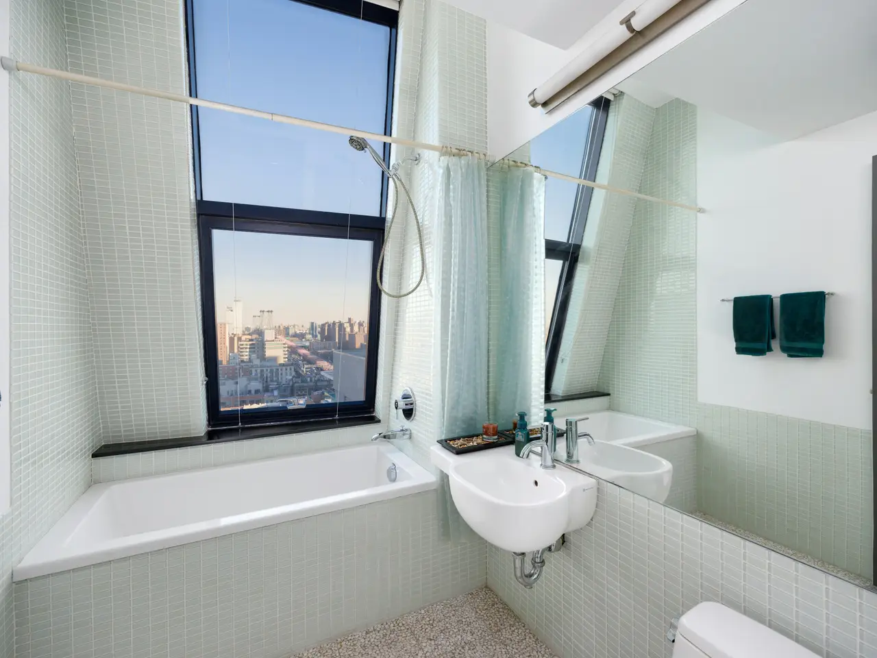 True Duplex penthouse condos (no one living above you) are rare; there are currently only 12 listed. Not only is this the least expensive, but the average cost of the other 11 is almost double that of this listing. This is not because this one is a slouch-quite the opposite. To begin with, it has the best view of all of them, but there is so much more because, at 2,500 sf, this true penthouse with two bedrooms, three baths, and an oversized Direct Living terrace is a perfect home. The lower floor is completely dedicated to the public spaces, while the upstairs is for the private areas, and the two are seamlessly separated by a windowed staircase. The key-locked elevators open on the public floor, so let's begin here. The first thing you notice is the clever flow created by opening the wall between the foyer and the kitchen. This improved both rooms. The vestibule is now a bright area with ingenious storage spaces and display shelves, ensuring that this often-forgotten spot is fully integrated, it even has a full bathroom on the north end. This bathroom's noteworthy feature is a widowed shower. (don't worry no neighboring building is high enough). The living spaces on the south side of the gallery are striking with their panoramic views (not hyperbole here. However, they need to be seen in person to be fully appreciated because the 10+ft ceiling height, full-height glass on three sides, and a slant on the east side make the room appear smaller in pictures. However, the floor plan does not lie, at 17x32, this is a very large room. One standout feature of this penthouse is the perfectly proportioned Direct Living terrace. At an almost square configuration, this terrace is perfect for entertaining. With nearly 300 degrees of open views, you have plenty to gawk at, but with no building blocking your view North, your vista of midtown is among the best I have ever seen. The kitchen is truly a study in clever design, and what you end up with is a very practical space with stunning views, plenty of storage, and commercial-grade appliancestruly a chef's dream. The aforementioned opening to the vestibule makes the kitchen feel much larger and creates a super cool dining counter. While the low storage cabinets on the slanted east wall are so clever, you can see the next owner continuing them everywhere this wall is exposed. Up the windowed staircase are two bedrooms, each with an ensuite bathroom, the smaller bedroom has a wall of windows facing east, awarding you perfect sunrise views framed by the Williamsburg Bridge, which is quite unique. The primary is a complete suite with a walk-in closet, a five-fixture bathroom, and three exposures. Regardless of the open feel these windows provide, privacy is ensured throughout, with no building on your elevation within reach. To round out the offering on the table here, the apartment has a washer and dryer. And this unit comes complete with a private storage space with its own electricity, making it a perfect wine storage. The Condo building is called BLUE; it was built in 2007 by the acclaimed architect Bernard Tschumi. It offers 8000 square feet of terraces along with Fios internet, refrigerated storage, a bike room, a full-time doorman, and concierge services. Conveniently situated fifty feet from the F-J-M-Z trains, BLUE is nestled within the vibrant heart of New York's bustling Lower East Side, with all of your favorite amenities, including the famed Essex Market, Katz' Delicatessen, Russ & Daughters, the New Museum and so much more.