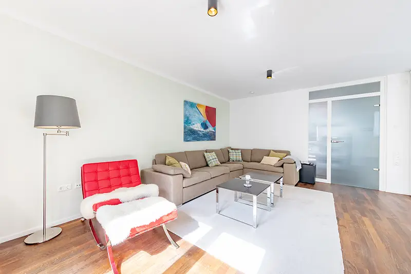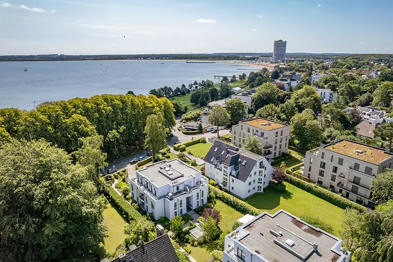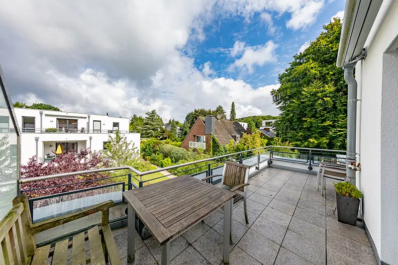 Welcome to a condominium that impresses with its almost secluded location, surrounding, fantastically large roof terrace and its immediate proximity to the Baltic Sea beach! In a sought-after location in Travemünde, just a few meters from the wide stretch of beach, you will find this well-kept apartment in a modern building constructed in 2008. The residential complex consists of 14 units, most of which are used as second homes, and is characterized by a stable and pleasant community of owners. The apartment is currently for sale by the first owner. The apartment is located on the 2nd floor, which is also the top floor of the building, allowing you to enjoy pleasant privacy and peace and quiet. With a living space of approx. 109.22 m², including a spacious roof terrace of 55.12 m² (half of which is included), the property offers a comfortable and well thought-out room concept. The pure interior living space is approx. 81.66 m². The center of the apartment is the light-flooded living room with direct access to the surrounding roof terrace, which guarantees sunny hours in the living room area until around 5 p.m. and offers a wonderful sea view in the autumn and winter months. High-quality awnings provide shade here if desired, and an outside water connection makes watering plants easier. The fully equipped kitchen impresses with granite worktops, induction hob, steam cooker, warming drawer, wine fridge and high-quality extractor hood from AEG (2022). Here you can experience culinary variety at a high level. In the bedroom, electric external roller shutters provide privacy and sun protection. The bathroom is also equipped to a high standard: a floor-to-ceiling shower, double washbasin, towel radiator and an integrated radio offer contemporary comfort. The energy-efficient central and underfloor heating ensures a pleasant climate in all rooms. A security entrance door provides additional protection. The apartment includes a spacious cellar room as well as an underground parking space, which is easily accessible by elevator. Additional parking spaces are available in front of the building. The well-kept residential complex was freshly painted on the outside as recently as 2024 and is in an inviting condition. The immediate surroundings not only offer the beach right on the doorstep with access to the Travemünde lighthouse or the Brodtener Steilufer/Niendorf, but also short distances to the Godewindpark and the famous Travemünde Week in summer - the infrastructure is excellent. The inventory of the apartment can be taken over on request for an additional charge. We would be happy to present this attractive offer to you in person during a viewing. Convince yourself of the quality, the high-quality features and the special location in the heart of Travemünde. We look forward to your inquiry!