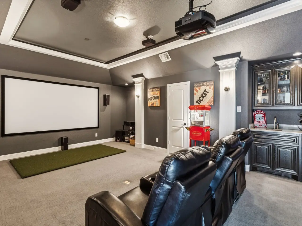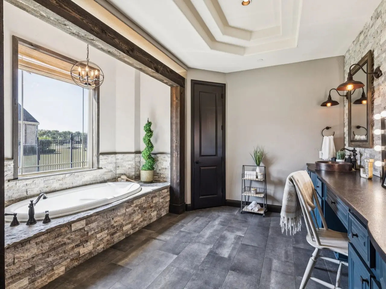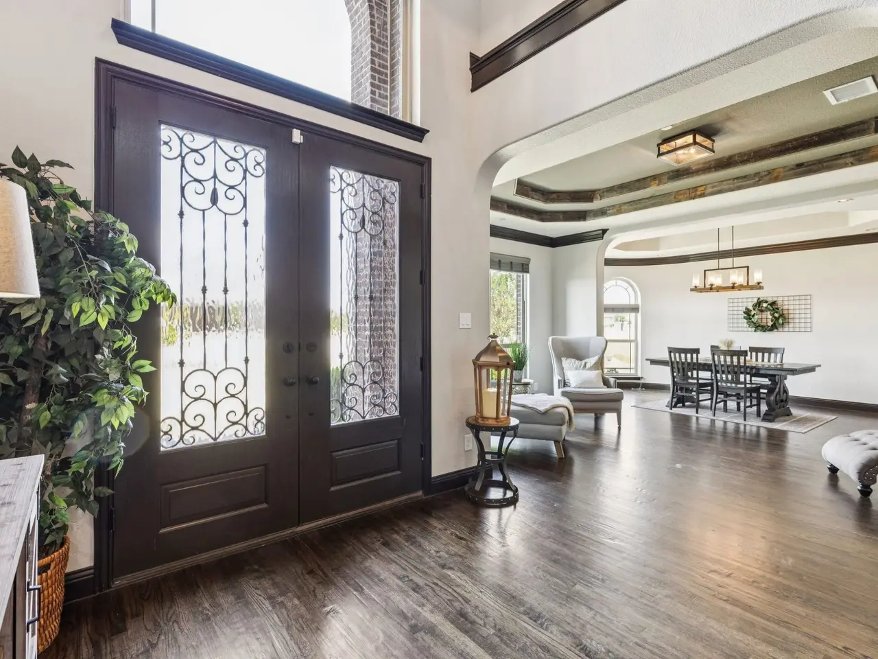 Welcome to your private retreat - an EXTRAORDINARY FAMILY ESTATE OFFERING NEARLY 8000sqft OF COMBINED LIVING SPACE which incl the primary residence plus GUEST HOUSE & ULTIMATE MAN CAVE all nestled on 2.65 acres backing to a serene wooded creek. From the moment you arrive, the striking brick and stone architecture, turret detail, and expansive landscaping set the tone for something truly special. Step inside to soaring vaulted ceilings with wood beams, warm wood floors and brick wall accents. The chef's kitchen is a dream with Electrolux appliances, dbl ovens, granite counters, prep sink, RO water system and abundant cabinetry. Entertain with ease in the oversized living areas, game room & media room with Sony projector, speakers, wet bar and wine fridge. Every detail has been carefully planned from the whole-home water softener and filtration system to the thoughtful layout. Downstairs, the luxurious primary suite awaitsfeaturing a sitting area, spa-inspired bath with stone walls, earthy textures and a multi-head rain shower. The private downstairs in-law suite with full bath is perfect for guests. Upstairs the secondary bedrooms are generously sized. Don't miss the closets that can double as study or hang out spaces! Outdoor resort-style living can be enjoyed year-round amidst twinkling Edison lights. The covered patio and pergola feature a built-in kitchen and FP with plenty of room for dining and lounging. The sparkling pool incl a spa and waterfalls with firepit nearby for cool evenings. The separate guest house not only features a fitness and sports enthusiasts ideal man cave complete with industrial finishes, but also a home office and private guest suite. Amenities include a bar, island, home gym, hardwiring for media and CAT7 for hi-speed network. Parking is abundant with two 2-car garages and porte cochere. This property blends comfort, sophistication, and functionality in a way that's rare to find. Don't miss the chance to experience all it has to offer.