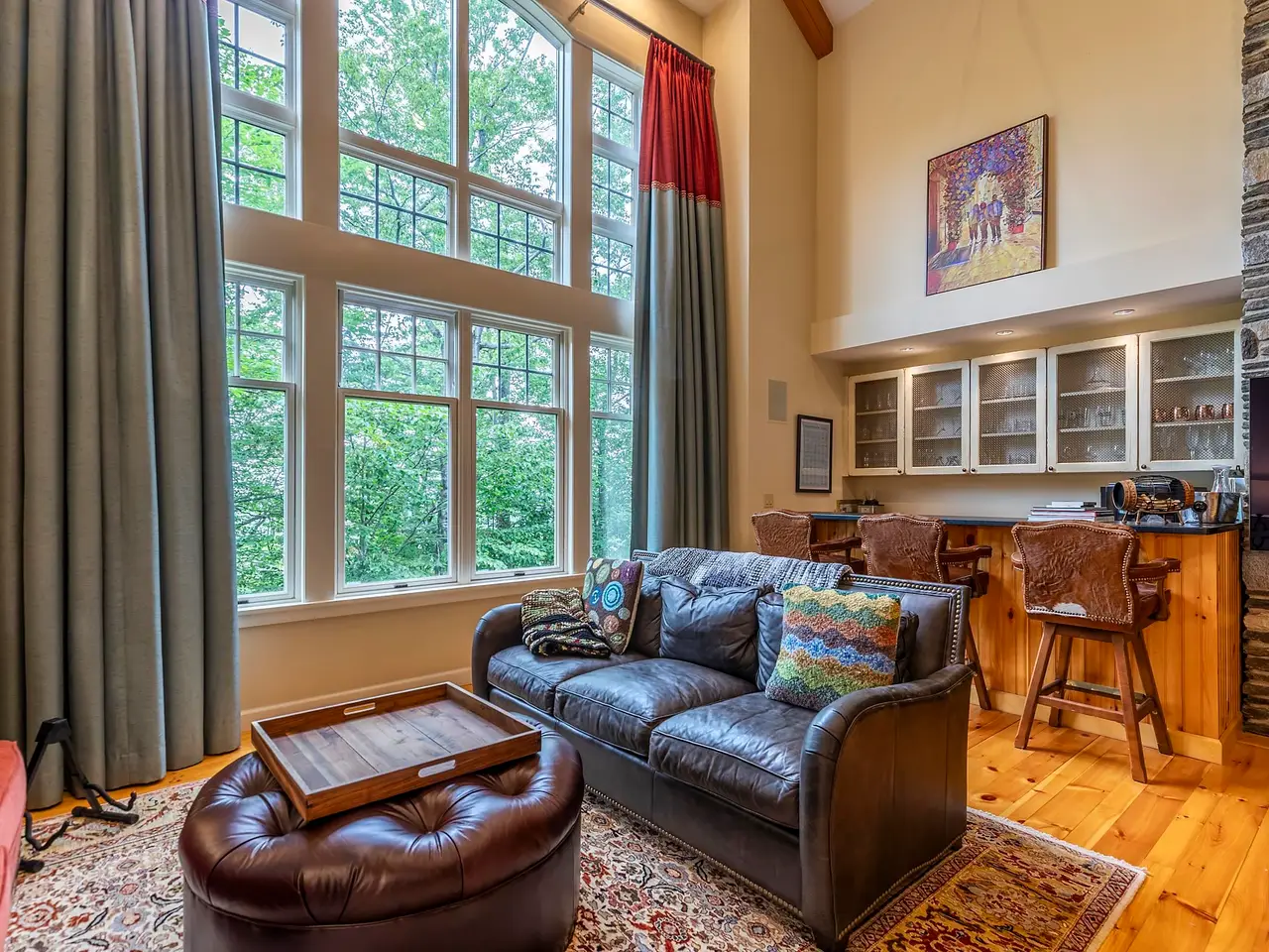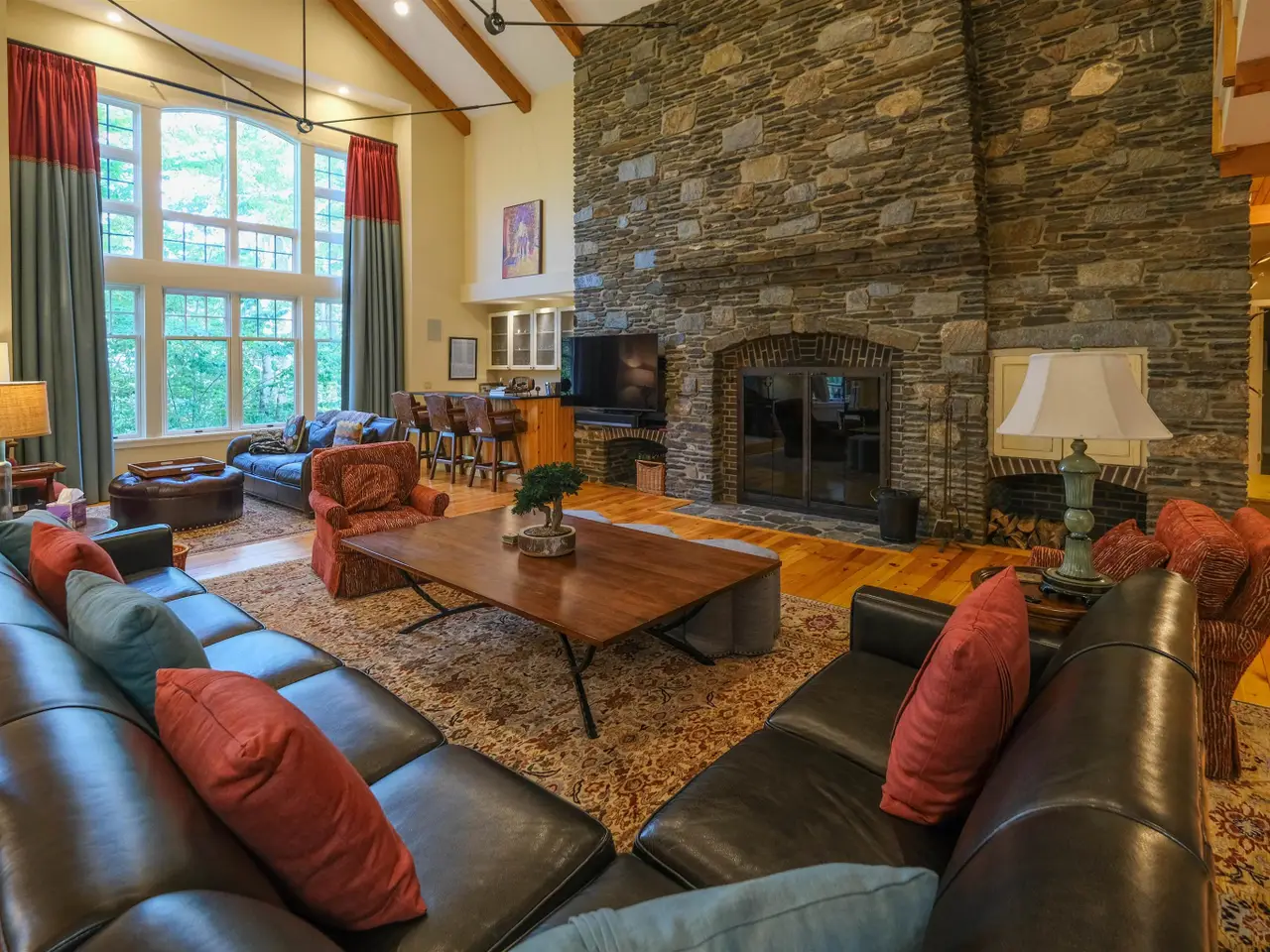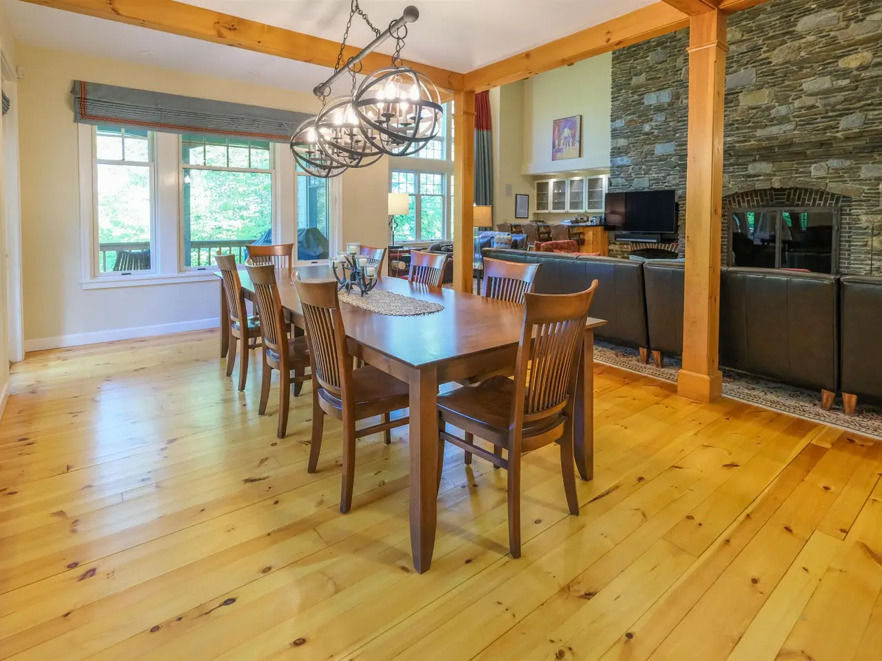 Welcome to your mountain sanctuary in the heart of Solitude Village - Okemo's premier slopeside community. This luxurious 5-bedroom, 3-bathroom retreat offers true ski-on/ski-off access, allowing you to hit the Rising Star Trail or Moonshadow right from your doorstep. Step inside to a warm, elegant interior featuring radiant-heated tile and rich hardwood floors throughout. The expansive great room, with its stunning stone fireplace and vaulted ceilings, creates the perfect apres-ski gathering space. Just off the great room, a custom beverage bar with seating for three invites you to unwind with a cocktail while watching the snow fall. The chef's kitchen is appointed with high-end appliances, granite countertops, and custom cabinetry - ideal for entertaining. The dining room comfortably seats twelve, making it perfect for holidays and celebrations. After a day on the slopes, drop your gear in the well-designed mudroom with built-in cubbies before heading down to the walkout lower level - complete with a pool table, exercise space, sauna, and hot tub for ultimate relaxation. A large game room with tons of comfortable seating for movie watching. The spacious primary suite includes a private balcony, perfect for morning coffee with mountain views. Additional features include a dramatic carport entry, two-car garage, ample storage, and timeless craftsmanship throughout. Whether you're seeking a serene winter escape or an active four-season retreat, this home delivers. ROFR
