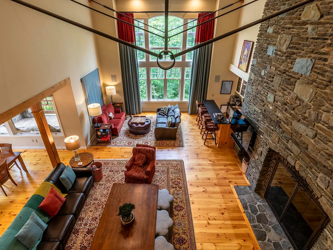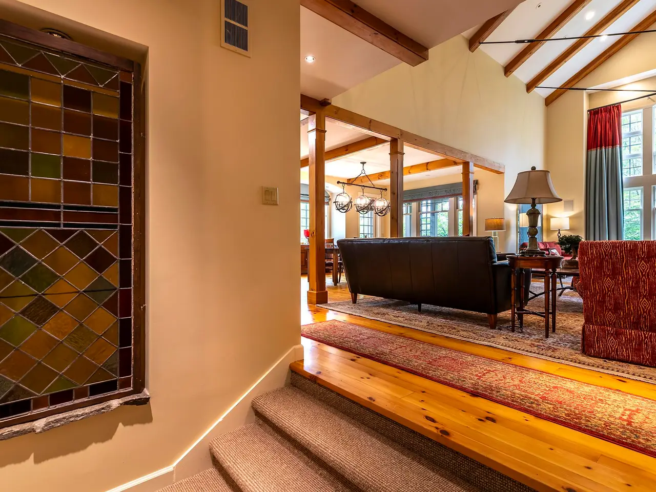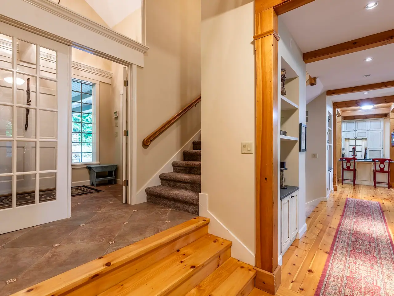 Welcome to your mountain sanctuary in the heart of Solitude Village - Okemo's premier slopeside community. This luxurious 5-bedroom, 3-bathroom retreat offers true ski-on/ski-off access, allowing you to hit the Rising Star Trail or Moonshadow right from your doorstep. Step inside to a warm, elegant interior featuring radiant-heated tile and rich hardwood floors throughout. The expansive great room, with its stunning stone fireplace and vaulted ceilings, creates the perfect apres-ski gathering space. Just off the great room, a custom beverage bar with seating for three invites you to unwind with a cocktail while watching the snow fall. The chef's kitchen is appointed with high-end appliances, granite countertops, and custom cabinetry - ideal for entertaining. The dining room comfortably seats twelve, making it perfect for holidays and celebrations. After a day on the slopes, drop your gear in the well-designed mudroom with built-in cubbies before heading down to the walkout lower level - complete with a pool table, exercise space, sauna, and hot tub for ultimate relaxation. A large game room with tons of comfortable seating for movie watching. The spacious primary suite includes a private balcony, perfect for morning coffee with mountain views. Additional features include a dramatic carport entry, two-car garage, ample storage, and timeless craftsmanship throughout. Whether you're seeking a serene winter escape or an active four-season retreat, this home delivers. ROFR