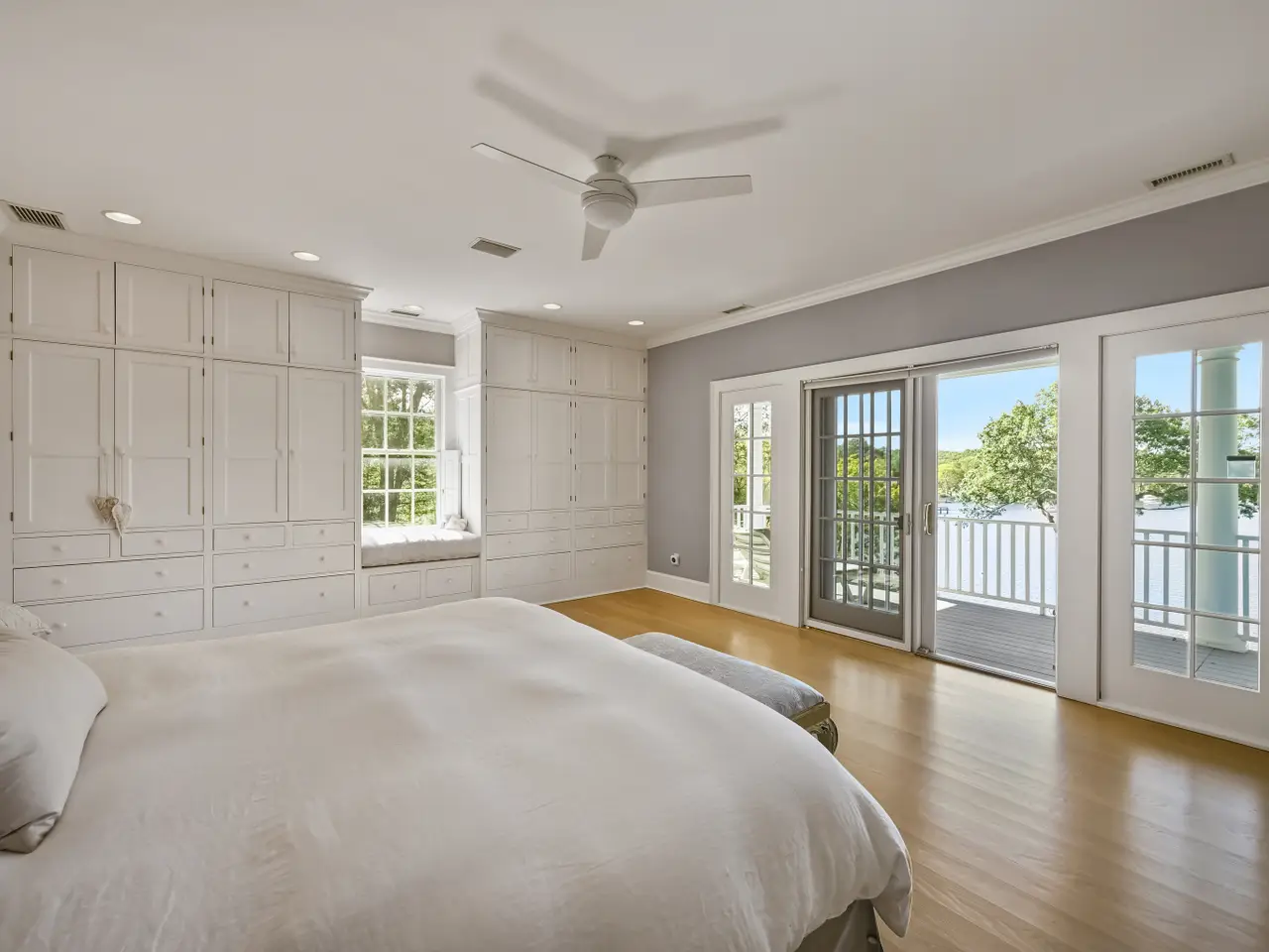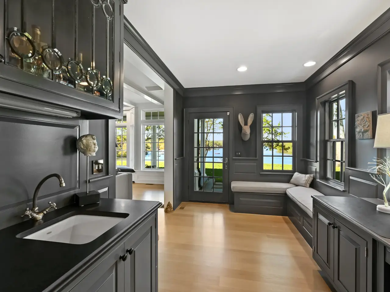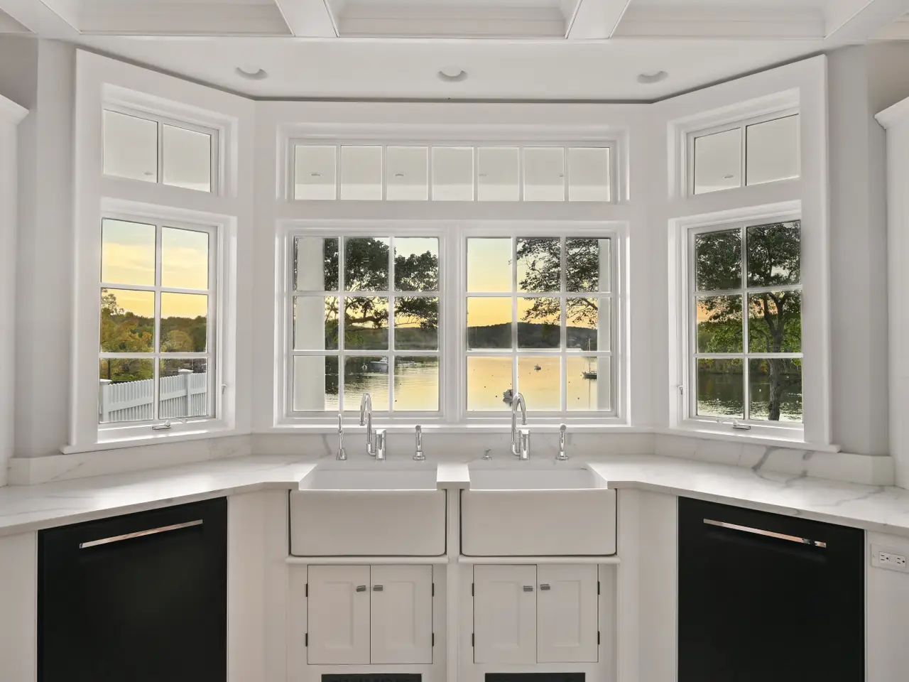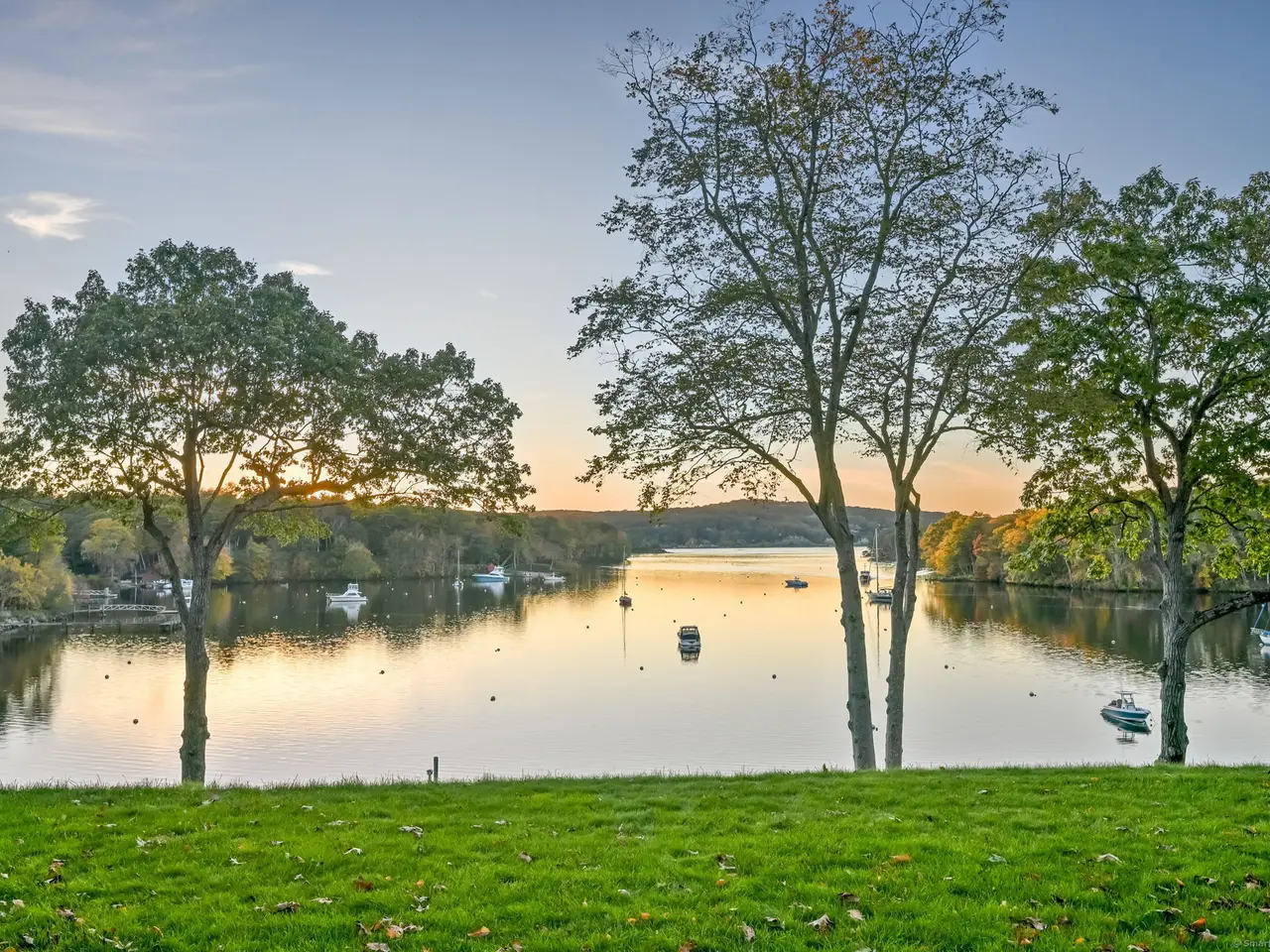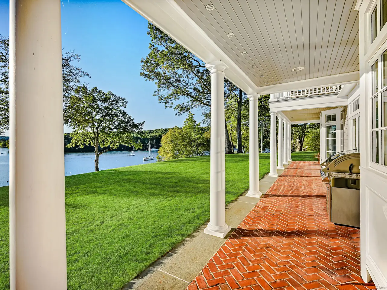 Architect-designed and inspired by Palladio's symmetry and Mount Vernon's timeless colonial grace, the essence of classic balance, symmetry, and luxury. A center-columned portico anchors the perfect proportion between two grand wings, while the interiors reveal artistry at every turn-gleaming wood floors, custom millwork, and walls of windows framing Hamburg Cove's deep-water yacht basin-where sails and yachts drift across shimmering water lusters reflecting a symphony of mystical moorings that capture what is widely considered the most breathtaking panorama on the Cove. Two magnificent semi-rotunda sunrooms at each end bathe the space in natural light, blending formal entertaining and cozy private havens that are elegant yet casual and comfortable. The chef's kitchen features a large center island and commercial-grade appliances. Two primary suites-one on each level. A large guest apartment rests over three of the six garages. The finished lower level includes a gym, billiards, and a kitchen. Landscaped grounds embrace a hardscape-wrapped pool, private expansive lawns, and stone walls-all overlooking a nightly display of fiery sunsets. The property includes one of the deepest private docks in this area-and beyond-with direct access to the Connecticut River and Long Island Sound. This remarkable waterfront residence combines architectural elegance, coastal serenity, and a setting of rare natural beauty-an extraordinary lifestyle between Boston and New York.