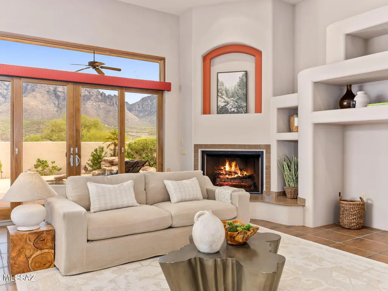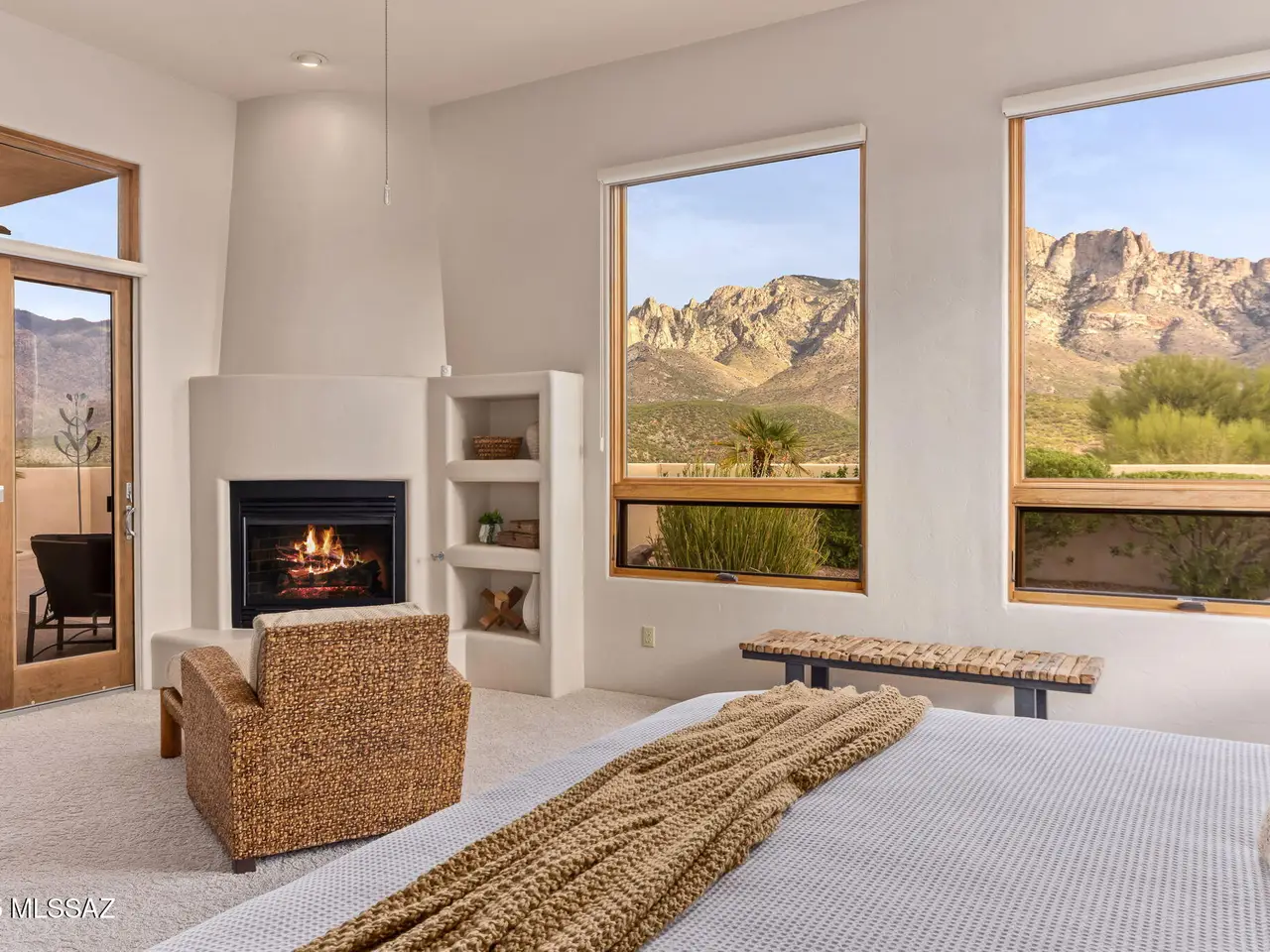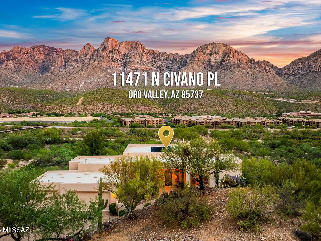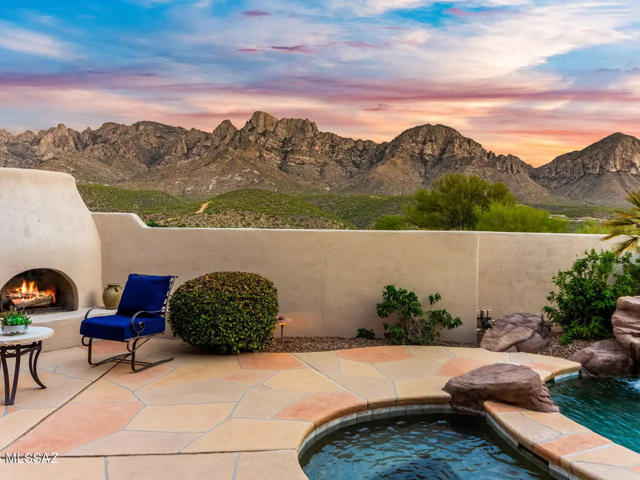 Welcome to your desert sanctuary! This 4-bed, 3-bath custom estate spans 3,282 sq ft on 2.68 private acres in a premier gated community and offers luxury, privacy, and sweeping Pusch Mountain views. The redesigned chef's kitchen with SS slate appliances, custom Alder cabinetry, and Dekton countertops flows into indoor/outdoor living spaces designed for entertaining. The large primary suite boasts soaring ceilings, a kiva fireplace, and spa-like bath. Outside, enjoy a heated resort-style pool and spa framed by desert beauty. There's plenty of seating areas to enjoy the view from both under the patio cover or on a turf area. Enjoy the outdoor Kiva fireplace on cool evenings. The vacant lot next door is also for sale, creating a retreat of more than 5 acres in the heart of Oro Valley.