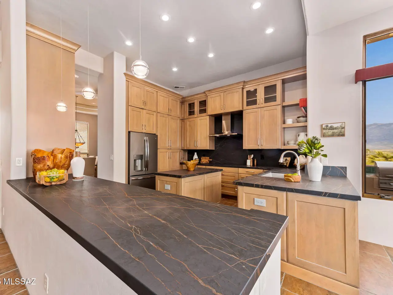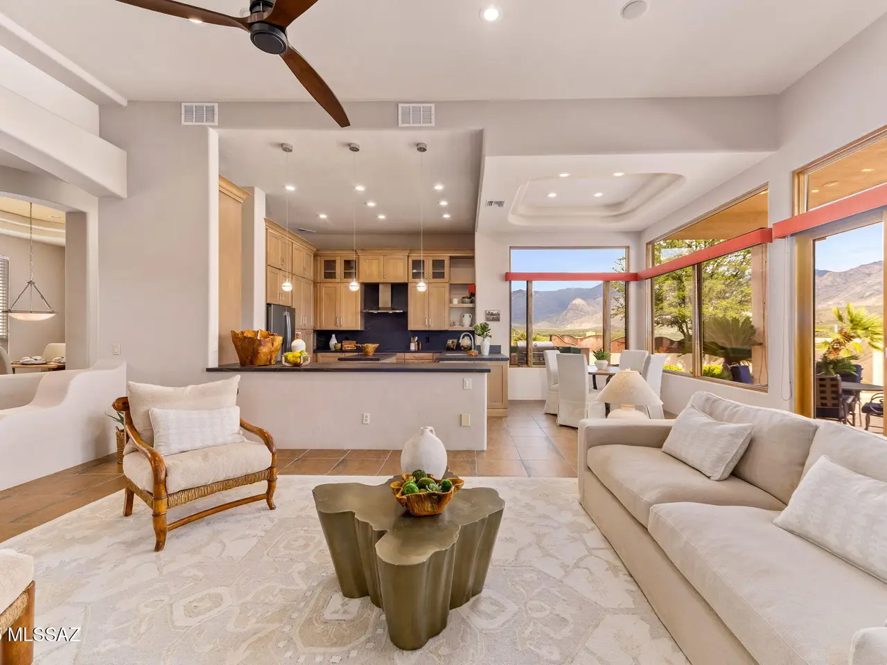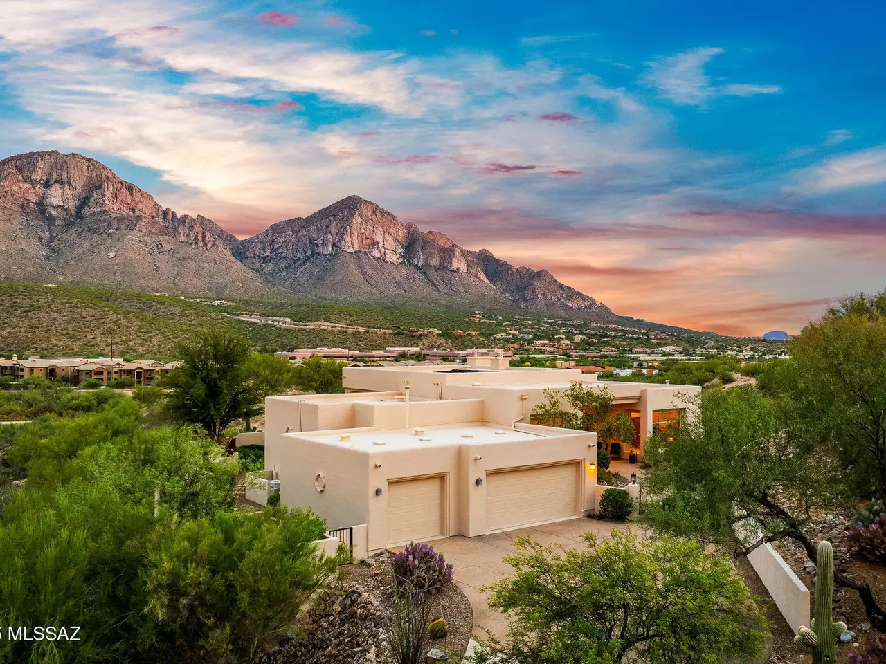 Welcome to your desert sanctuary! This 4-bed, 3-bath custom estate spans 3,282 sq ft on 2.68 private acres in a premier gated community and offers luxury, privacy, and sweeping Pusch Mountain views. The redesigned chef's kitchen with SS slate appliances, custom Alder cabinetry, and Dekton countertops flows into indoor/outdoor living spaces designed for entertaining. The large primary suite boasts soaring ceilings, a kiva fireplace, and spa-like bath. Outside, enjoy a heated resort-style pool and spa framed by desert beauty. There's plenty of seating areas to enjoy the view from both under the patio cover or on a turf area. Enjoy the outdoor Kiva fireplace on cool evenings. The vacant lot next door is also for sale, creating a retreat of more than 5 acres in the heart of Oro Valley.