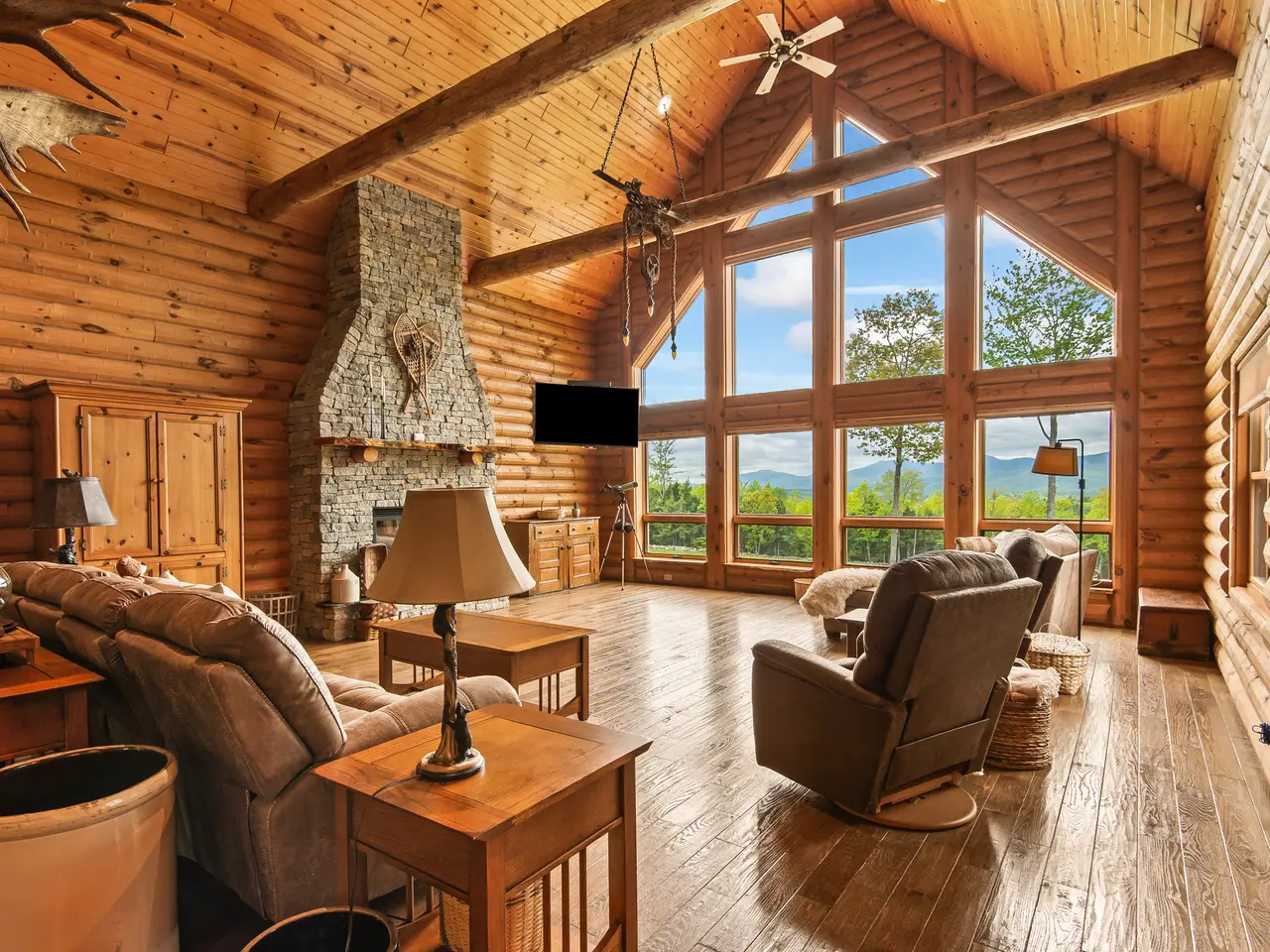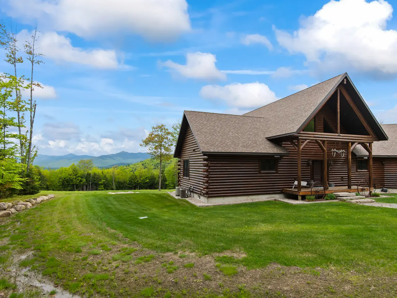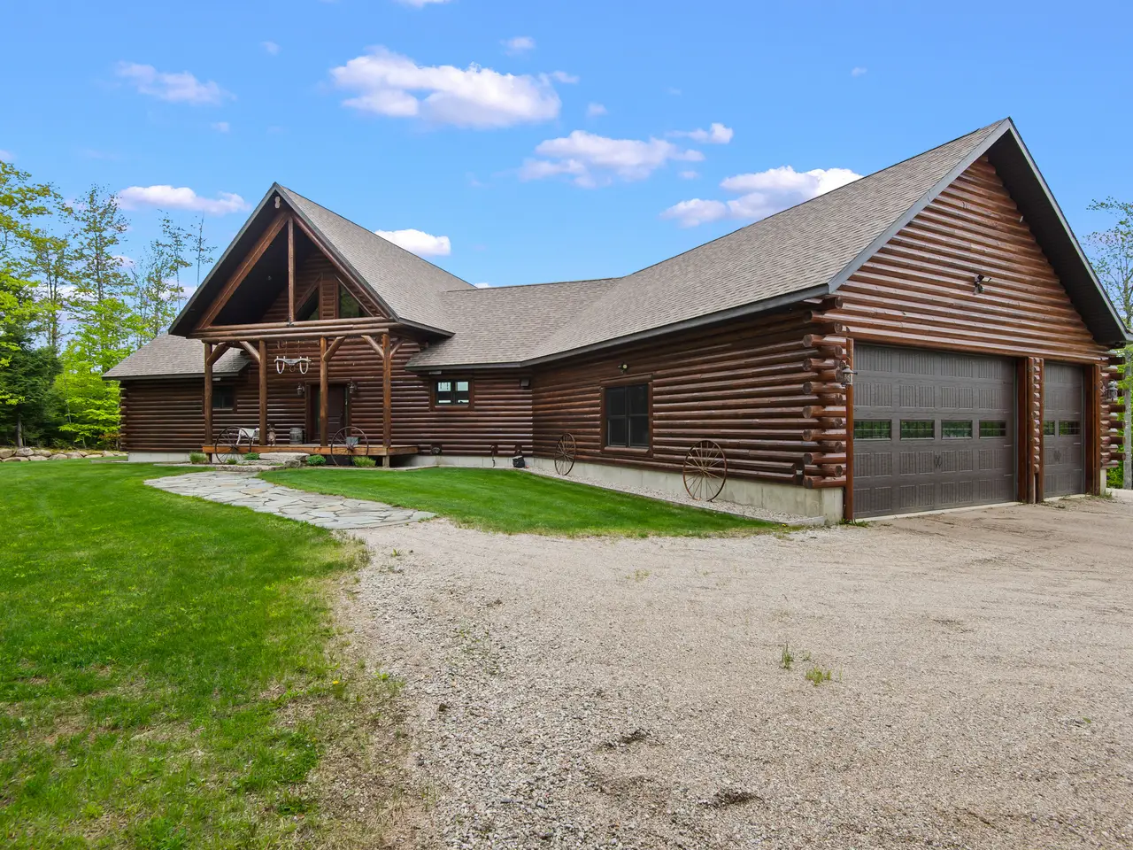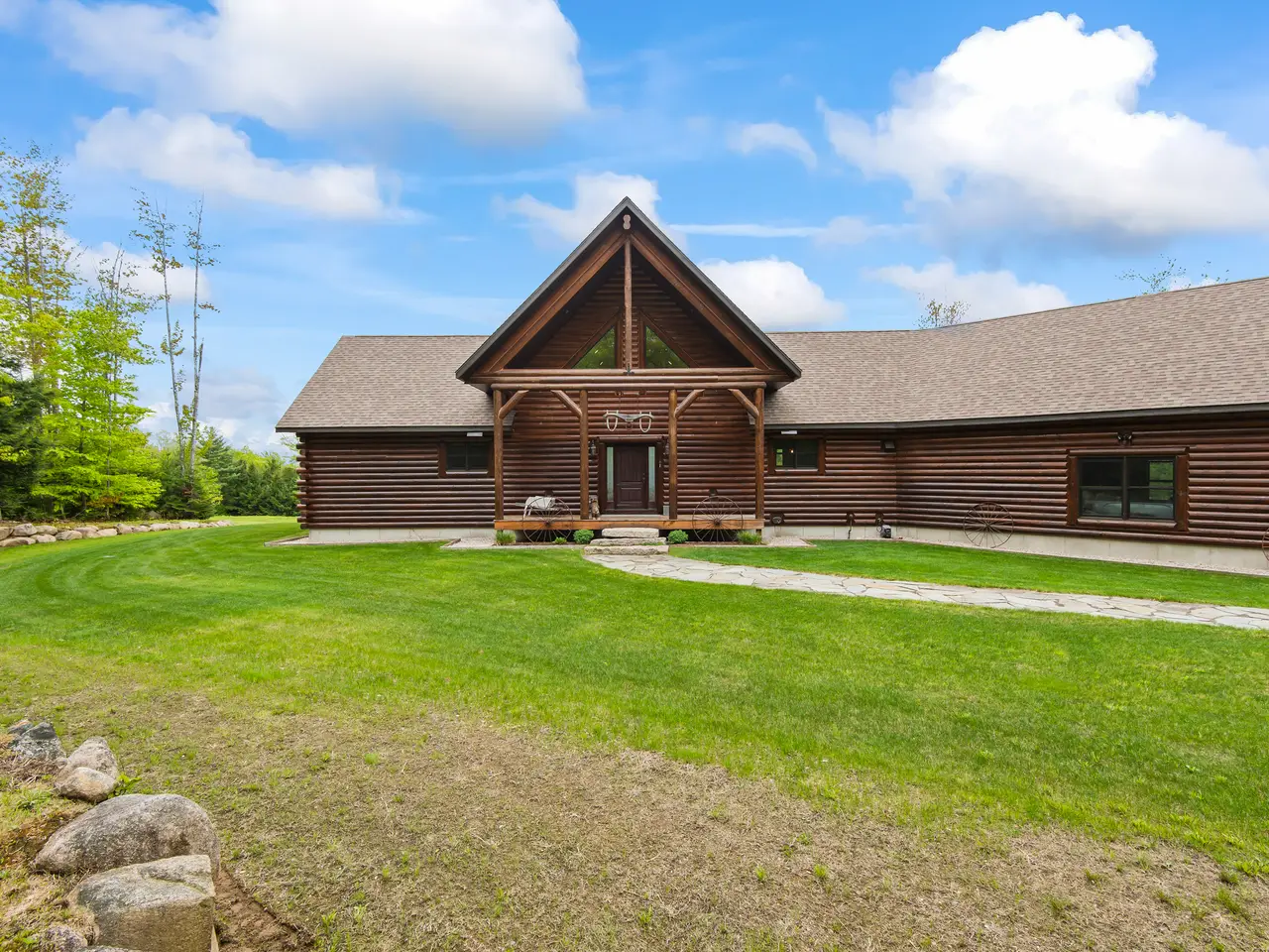 Escape to the perfect blend of rustic charm and modern luxury in this stunning 3-bedroom, 2.5-bath contemporary log home, set on 5.6 breathtaking acres in Madison, NH. Surrounded by expansive fields and majestic mountain views, this private retreat offers the best of both worlds, secluded tranquility yet just a short drive to bustling North Conway Village. Step inside and experience true craftsmanship, where custom woodwork graces every corner, creating a warm, rustic atmosphere. The magnificent, covered porch entrance sets the tone for an inviting and grand interior. At the heart of the home lies a gourmet chef’s kitchen, featuring a huge center island, perfect for entertaining, plus a spacious walk-in pantry and first-floor laundry room for effortless convenience. The grand primary suite on the first floor is a sanctuary in itself, boasting a custom-designed bathroom with an enormous tile shower, walk-in closet, and a private deck where you can soak in stunning views of Mt. Chocorua. The enormous living room is designed for both relaxation and entertaining, featuring a large stone hearth with a gas fireplace, perfect for warming up on cold winter nights. A wall of windows frames the surrounding mountains, allowing you to watch the snowfall transform the landscape into a breathtaking scene. This home has all the features you need and want for modern living with rustic charm; central a/c, radiant heat in most of the home, a standby generator, an oversized garage and toy storage.
