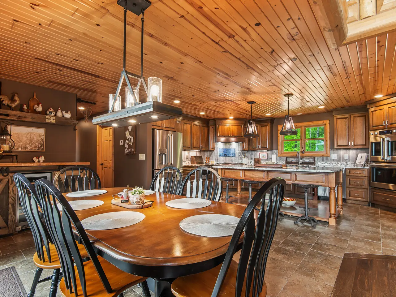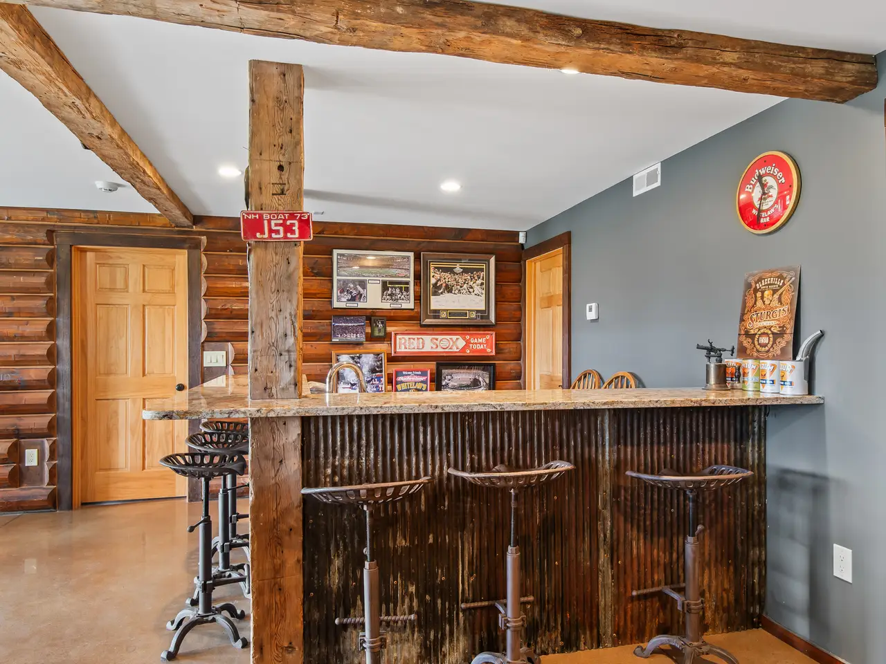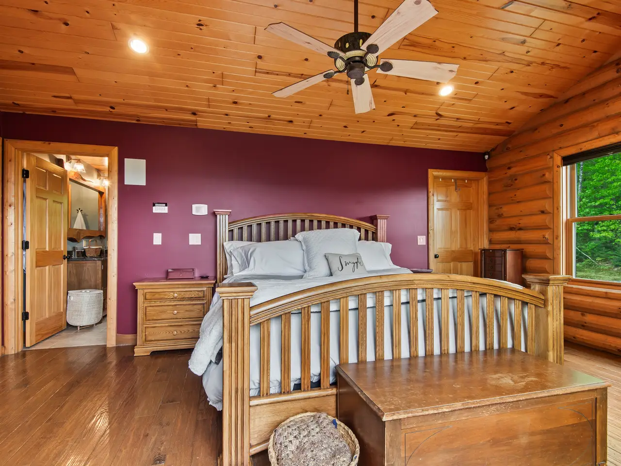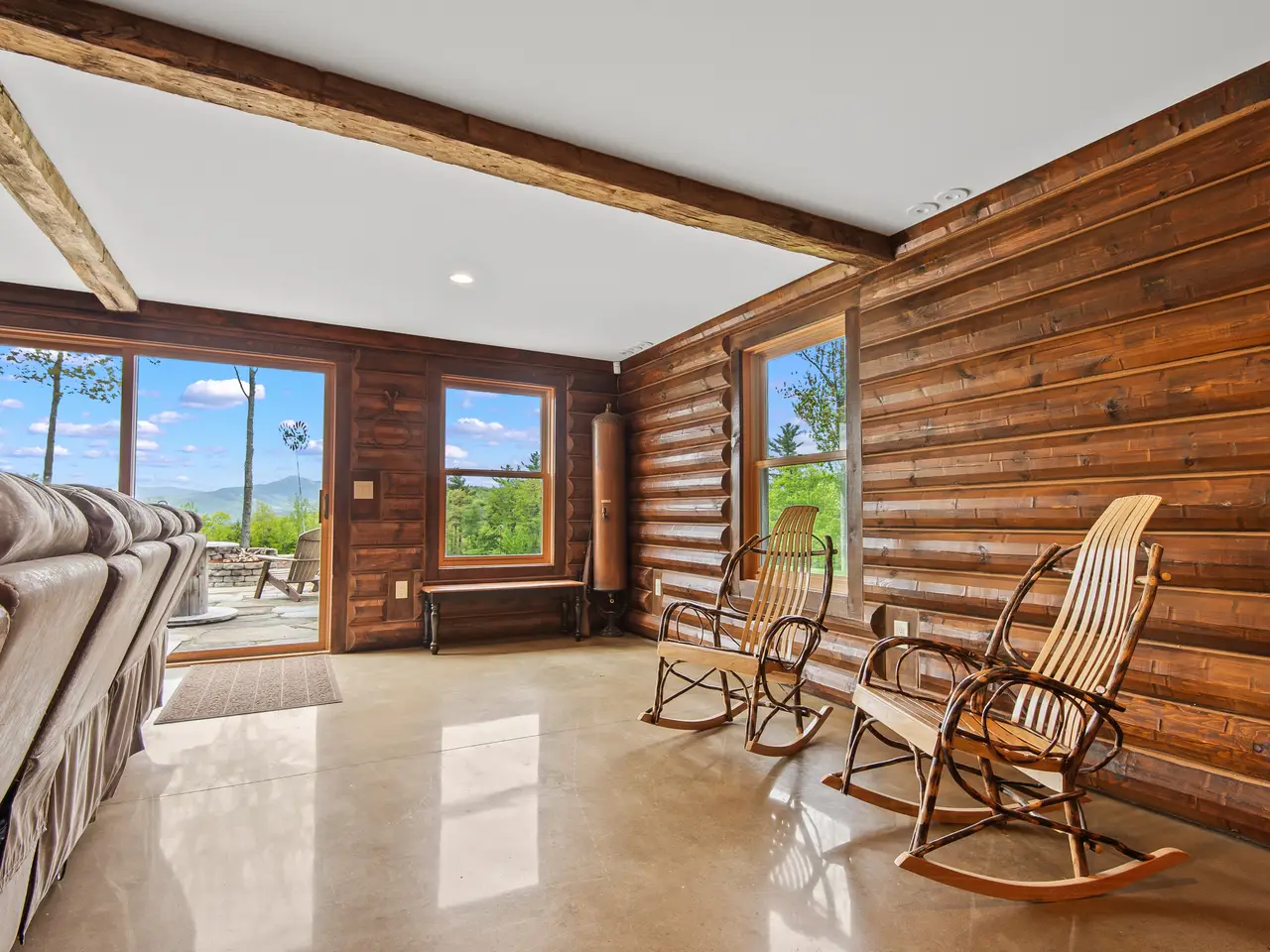 Escape to the perfect blend of rustic charm and modern luxury in this stunning 3-bedroom, 2.5-bath contemporary log home, set on 5.6 breathtaking acres in Madison, NH. Surrounded by expansive fields and majestic mountain views, this private retreat offers the best of both worlds, secluded tranquility yet just a short drive to bustling North Conway Village. Step inside and experience true craftsmanship, where custom woodwork graces every corner, creating a warm, rustic atmosphere. The magnificent, covered porch entrance sets the tone for an inviting and grand interior. At the heart of the home lies a gourmet chef’s kitchen, featuring a huge center island, perfect for entertaining, plus a spacious walk-in pantry and first-floor laundry room for effortless convenience. The grand primary suite on the first floor is a sanctuary in itself, boasting a custom-designed bathroom with an enormous tile shower, walk-in closet, and a private deck where you can soak in stunning views of Mt. Chocorua. The enormous living room is designed for both relaxation and entertaining, featuring a large stone hearth with a gas fireplace, perfect for warming up on cold winter nights. A wall of windows frames the surrounding mountains, allowing you to watch the snowfall transform the landscape into a breathtaking scene. This home has all the features you need and want for modern living with rustic charm; central a/c, radiant heat in most of the home, a standby generator, an oversized garage and toy storage.