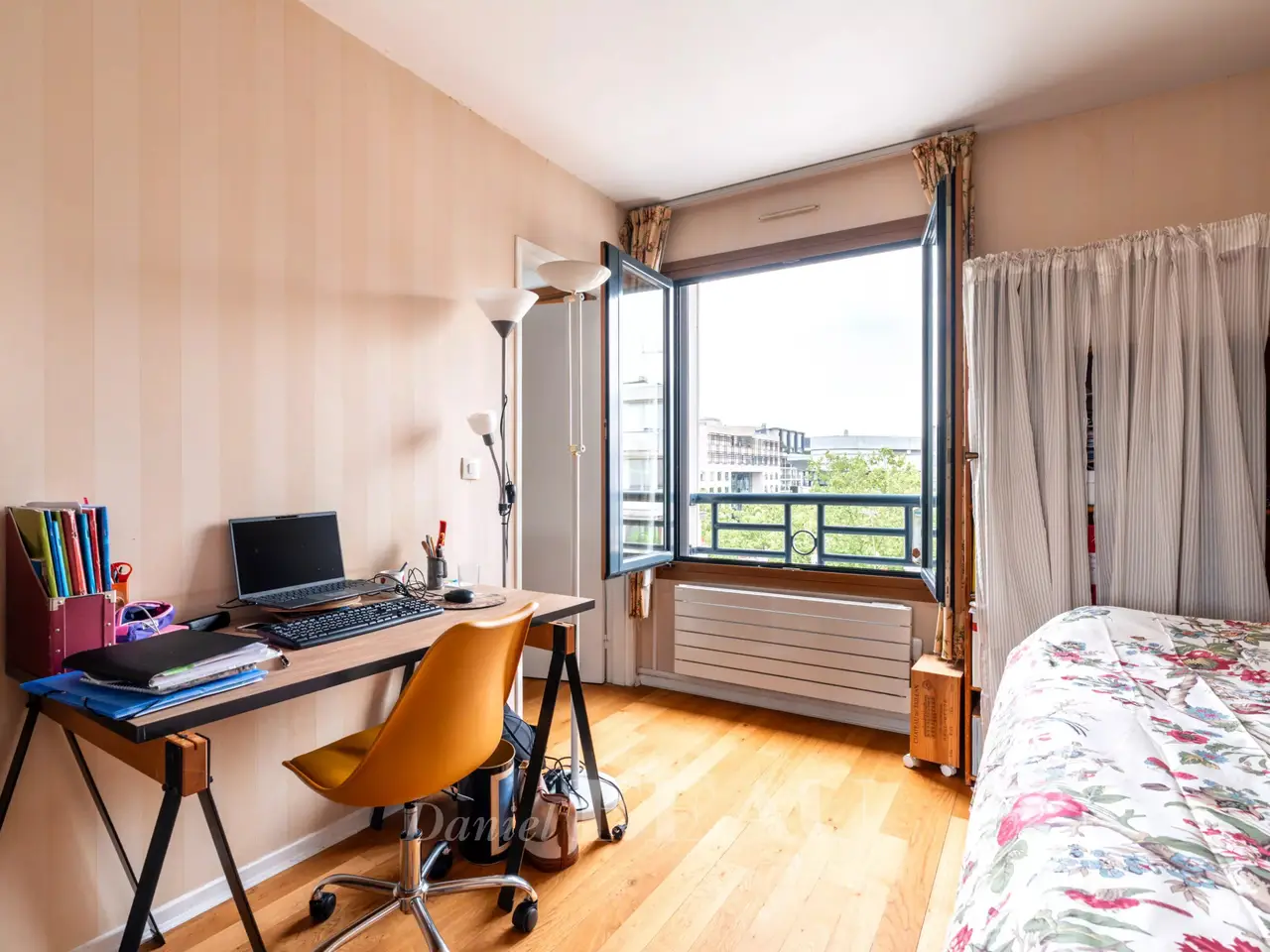 Les Passages neighbourhood, near the shops, the schools and the transport networks. This dual-aspect apartment enjoying open views is on the 5th and 6th floors of a recent building. Offering 171.57 sqm of living space as defined by the Carrez Law, it includes a bright and spacious living/reception room opening onto a 10 sqm west-facing terrace, a dining room, a separate kitchen, two bedrooms (one opening onto a balcony), and a bathroom. Upstairs are 4 further bedrooms opening onto balconies, a bathroom and a shower room. Ample fitted storage space. With two basement parking spaces.