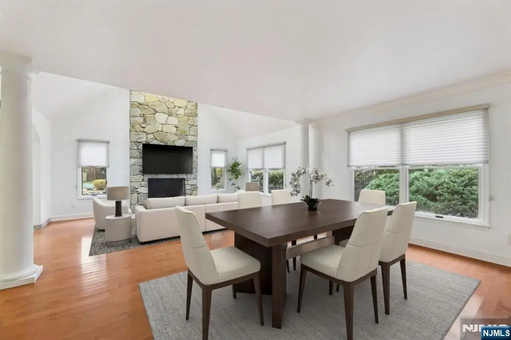 Commandingly situated on a serene cul-de-sac in the prestigious Fardale Woods area, this stunning residence offers an exceptional blend of architectural beauty and modern living. The floorplan creates a seamless flow where open-concept entertaining space combines effortlessly with a gorgeous, modern kitchen opening to a brilliant sun room rimmed with walls of glass overlooking the expanisve grounds and inground pool. This home reflects thoughtful design and impeccable care at every turn.