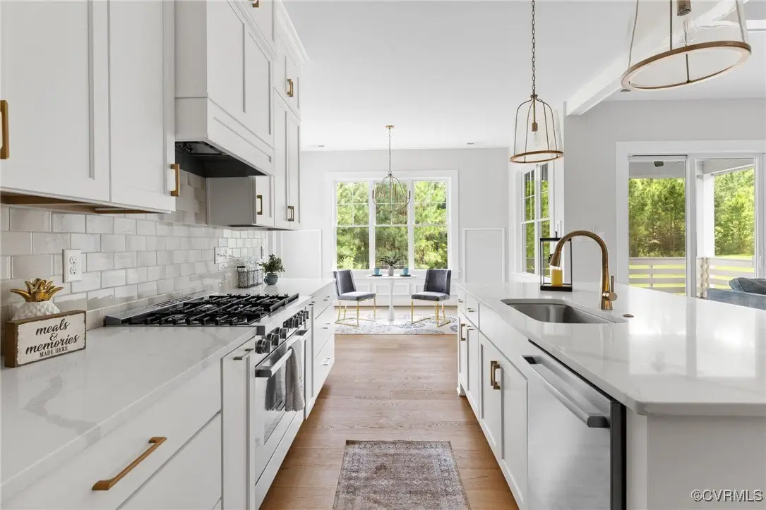 Custom designer kitchen with granite counters and stylish cabinetry.