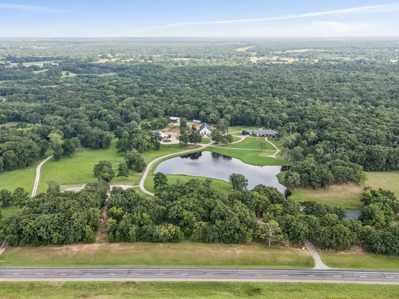 Profitable East Texas Estate Near Cedar Creek Lake This 39+ acre property in Malakoff, Texas, is located minutes from Cedar Creek Lake. The estate includes multiple residences suitable for extended families, private retreats, or multi-generational living arrangements. The land features open fields and wooded areas, suitable for outdoor recreation, gardening, or enjoying the natural environment with a scenic 2-acre pond perfect for fishing or observing wildlife. The main residence measures 3,524 square feet and includes 3 bedrooms, 3.5 baths, a private guest suite, formal dining room, office space, and a swimming pool with sun terrace for relaxing or entertaining. There are two additional buildings on the property. Once of approximately 3,284 square feet with a grand main room with vinyl wood laminate flooring and a cathedral design ceiling with LED lighting. The building includes a partitioned kitchen, two restrooms and a mechanical room. Two sets of sliding doors lead to an outdoor covered area measuring approximately 1,456 square feet. At the back of the building is an open concrete area measuring approximately 1,967 square feet. The main room has a projector and screen. Speakers are installed inside the main room and outside in the covered entertainment area. The third largest building measures approximately 3,220 square feet. It has a main room with arched windows, canned lighting, chandeliers, and a polished concrete floor. There are two rooms that could serve as potential bedrooms, each with a restroom. There is also a powder room located in the vestibule. This building is currently used as a sanctuary. Additionally, there are two agricultural shop measuring 1080 square feet and a barn of 476 square feet. This property offers adequate space for developing a private family estate or multiple residences for country living. It is currently used as a profitable wedding and events venue. Please contact the listing agents for further information.