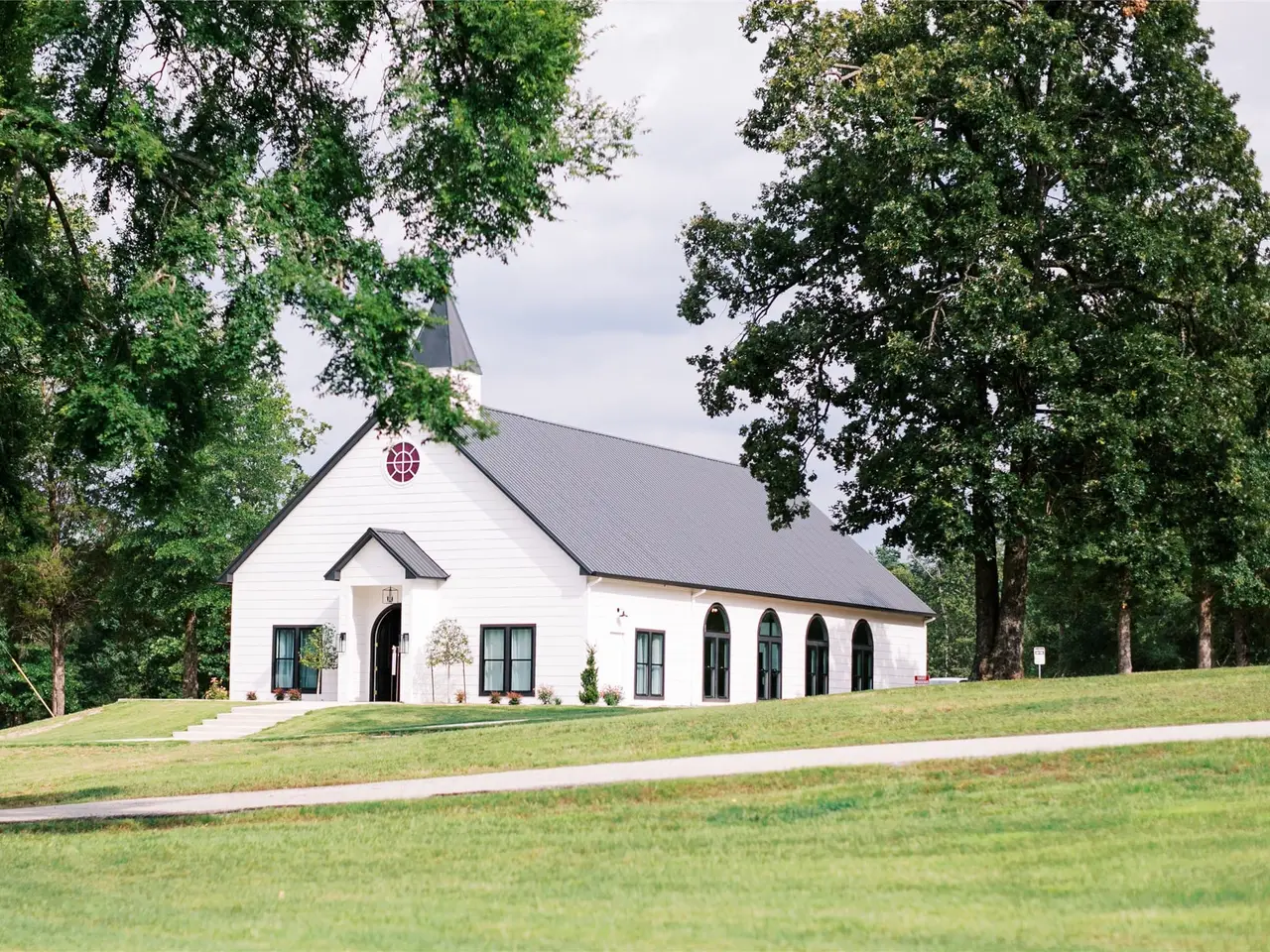 Arched windows with canned lighting