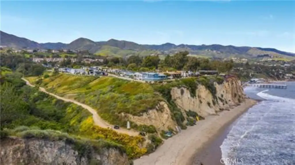 Welcome to a stunning, completely remodeled 2-bedroom, 2-bath open-concept home on the highly desired bluff of Paradise Cove in Malibu. This beautifully landscaped property features a modern 2-year-old aluminum roof with solar panels, an updated electrical panel with a designated exterior plug for a generator, and copper plumbing and electrical wiring throughout. The gourmet kitchen boasts new stainless steel appliances, including a double oven and 5-burner cooktop, granite countertops, custom cabinets, and a spacious granite-topped island with ample storage. A large skylight and custom lighting enhance the bright and inviting atmosphere. The dining area, adorned with a custom chandelier and China cabinet, opens to an expansive Trex deck via a sliding door. The family room, designed for entertaining, features two skylights and a double ceiling fan, while the large living room showcases an ocean-themed frieze at ceiling framed with marine rope, a corner travertine-faced gas fireplace, and art alcoves. The updated guest bath includes wainscoting, an enclosed shower over the tub, and ample storage. The open and bright primary bedroom has sliding doors leading to a back Trex deck and deck-level spa. The primary bath features a large walk-in shower with designer tile, a quartzite-topped custom dual sink vanity, and a skylight. Throughout the home, you'll find engineered wood flooring, recessed lighting, and plantation shutters. Outdoor amenities include a large built-in BBQ with a counter and seating area, a Rumford gas fireplace, a well-lit large shed with interior electrical outlets and shelving, and over 190 square feet of concrete-lined rolling storage hidden by sliding doors. The property is equipped with under-coach lighting for easy night access, a kayak storage bay, and extensive outside lighting controlled from the inside. Additional features include a tankless water heater, a covered driveway, an outside hot and cold water shower, a golf cart with its parking and charger, and an earthquake cradle for safety. This exceptional property offers unparalleled luxury and comfort in a prime Malibu location. Don't miss this incredible opportunity to own this beautiful retreat in the heart of Paradise Cove, Malibu. Embrace the beauty of coastal living and make this enchanting home yours today! Low space rent.