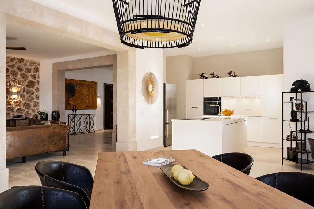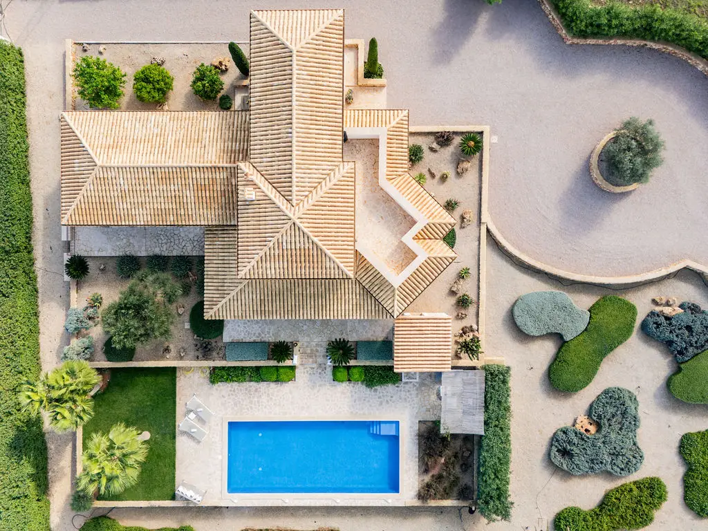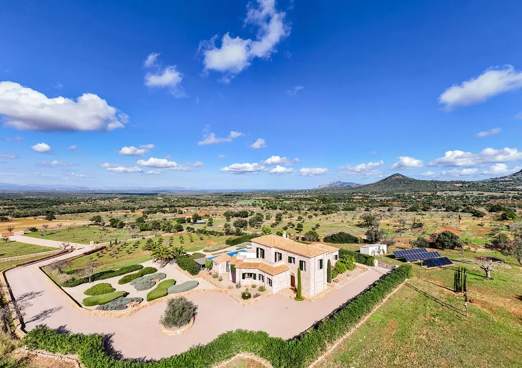 An authentic jewel of Mediterranean architecture that perfectly combines traditional Mallorcan style with modern elements and luxurious details. Idyllically situated between Artá and Manacor, it enjoys privacy, tranquillity and spectacular views of the dreamlike landscape and the bay of Alcúdia. This exclusive finca with an area of approx. 442 m² is located on a large plot of more than 17,934 m². In addition to the spacious and bright living room with cozy fireplace, which opens onto the dining area and the modern fitted kitchen with cooking island, there are 3 bedrooms, each with en-suite bathroom, on the first floor. A curved staircase leads to the upper floor with the impressive master suite with dressing area, en-suite bathroom and adjoining terrace with panoramic views. The large covered outdoor terrace with dining area, barbecue area with mini-kitchen and a fantastic pool are ideal for family get-togethers or spending quality time with friends. The beautifully manicured garden surrounds the whole house with a variety of plants and gives the property a pleasant, relaxing environment and is bathed in a pleasant light even late at night. The sustainable energy supply is provided by solar panels. Families benefit from the proximity of the American International School of Mallorca and the Rafa Nadal International School, which are located within the Rafa Nadal Academy complex, and the ISLA Academy, also close to Manacor. Contact us for more information and arrange a viewing to enjoy all the beauty and harmony of this property. A personal visit is better than a thousand words!