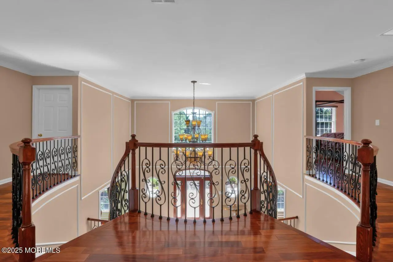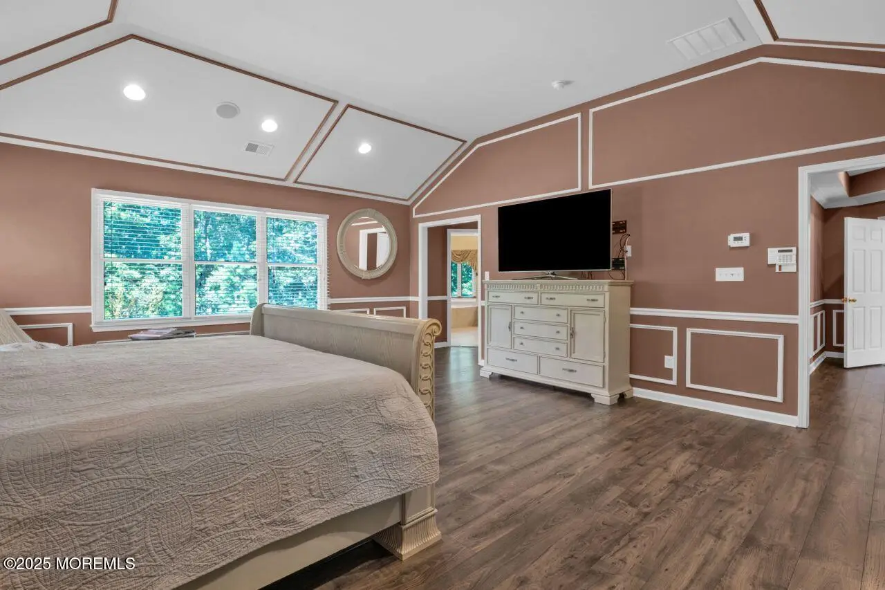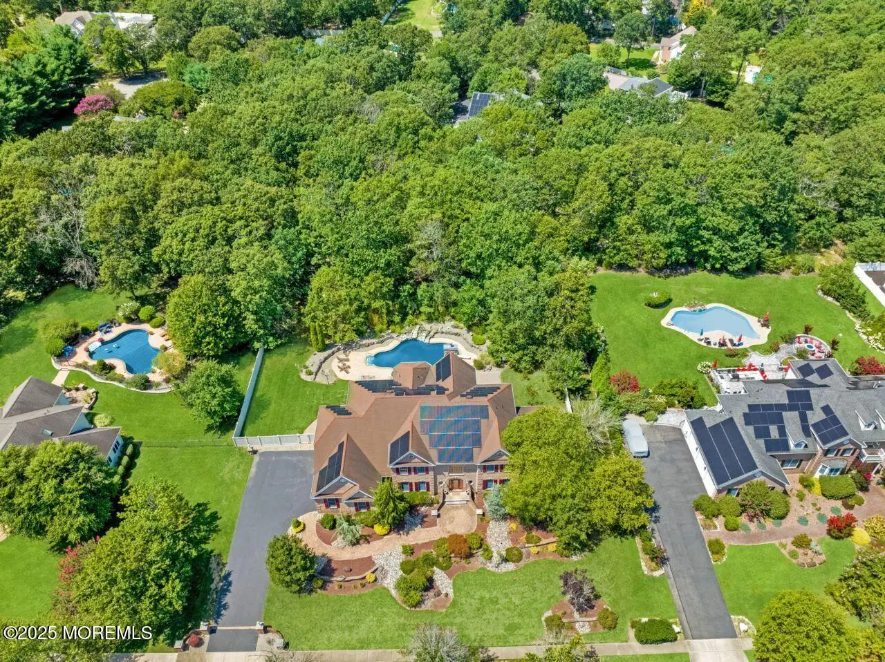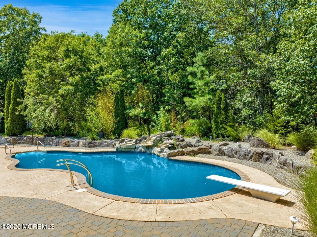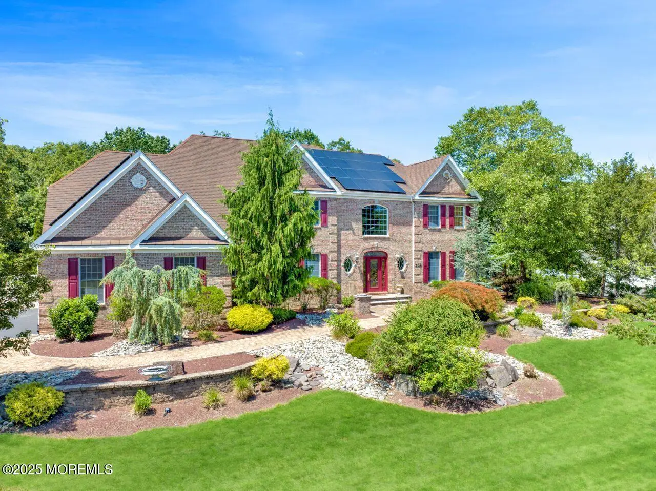 Step into the elegance of this custom-designed estate, perfectly situated in one of Stafford Township's most coveted neighborhoods. Built in 2005, this grand residence offers approximately 5,879 square feet of living space on a 1.01-acre lot, featuring five bedrooms and 4.5 baths - an ideal combination of scale, style, and comfort. Upon entry, you're welcomed by a dramatic double staircase and a soaring two-story family room centered around a striking cultured-stone fireplace - setting the tone for both sophisticated entertaining and relaxed everyday living. Thoughtfully designed for elegance and functionality, the home also boasts an in-law suite, office, custom molding, solar panels, and a recreation/billiards room, creating versatile spaces that seamlessly blend refinement with comfort The backyard is a true private retreat, complete with a heated saltwater pool featuring a cascading waterfall, an expansive paver patio perfect for hosting gatherings, and lush landscaping that enhances the sense of tranquility. A three-car garage provides generous parking and storage. Combining timeless architecture with resort-style amenities, this exceptional property offers an unparalleled lifestyle whether you envision grand celebrations or quiet moments in complete privacy.
