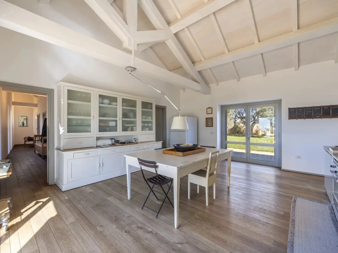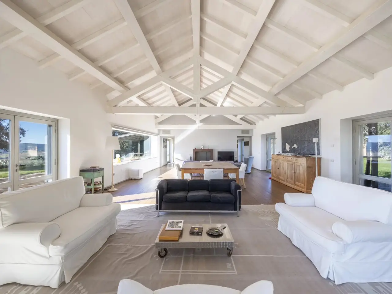 In one of the most authentic and unspoiled landscapes of Tuscany, among the gentle Maremma hills and just a few kilometers from Capalbio, stands this extraordinary villa, nestled within an enchanting olive grove. A residence that captivates with its dominant position, offering breathtaking views of the sea and the island of Giannutri: a panorama that changes color throughout the day, glowing fiery red at sunset.A haven of elegance and serenity, where every detail reflects perfect harmony between nature and architecture. The interior spaces blend harmoniously with the outdoors through pergolas and patios that extend the home’s living areas into the open air, creating a flawless continuity between inside and outside.Upon entering, a grand living room with trussed ceilings and large windows opening on three sides welcomes you with light and space. Here, the sitting area, fireplace corner, and dining area coexist in an atmosphere of refined conviviality. Adjacent lies the spacious eat-in kitchen with a large table—the beating heart of the house—inviting shared moments of taste and familiarity.From the living area, one accesses two extraordinary outdoor spaces: on one side, the panoramic garden with sea view; on the other, a private and scenic courtyard with pergola, swimming pool, and secluded garden—perfect for enjoying the Tuscan summer in total privacy.The elegant and functional sleeping area, includes a master suite with walk-in wardrobe and en-suite bathroom, two additional double bedrooms, a second bathroom, and a charming room in the tower ideal as a fourth bedroom or a study with a view. The two wings of the villa are connected by a bright glass hallway that could become a splendid library or art gallery.Built with high-quality materials and a contemporary taste that harmonizes beautifully with tradition, this property is a true gem of the Maremma—a place of the soul where the peace of the countryside meets the beauty of the sea.The property is accessed through a gate that opens onto a private driveway winding through the olive grove.An exclusive retreat for those seeking authenticity, nature, and timeless beauty.
