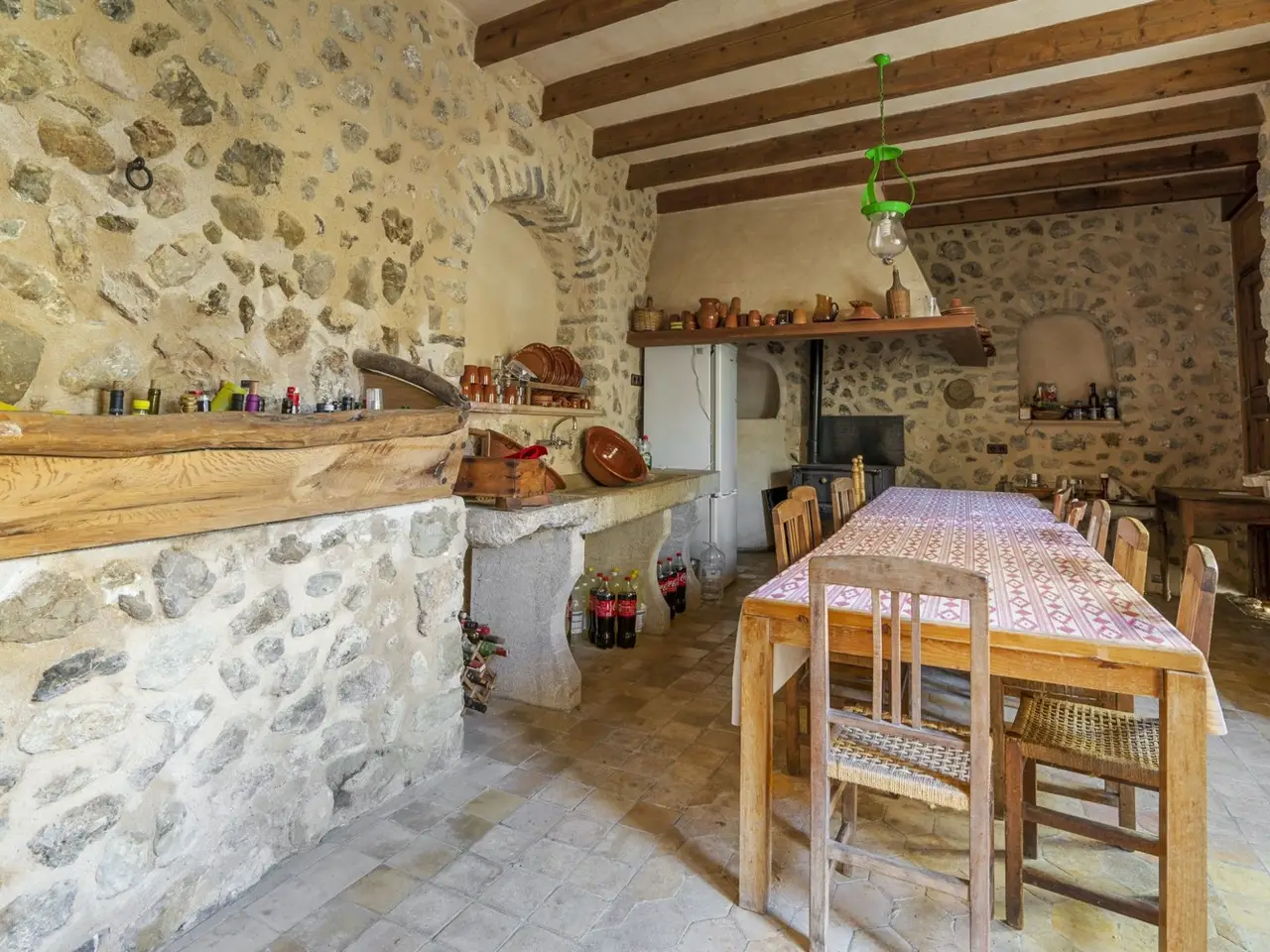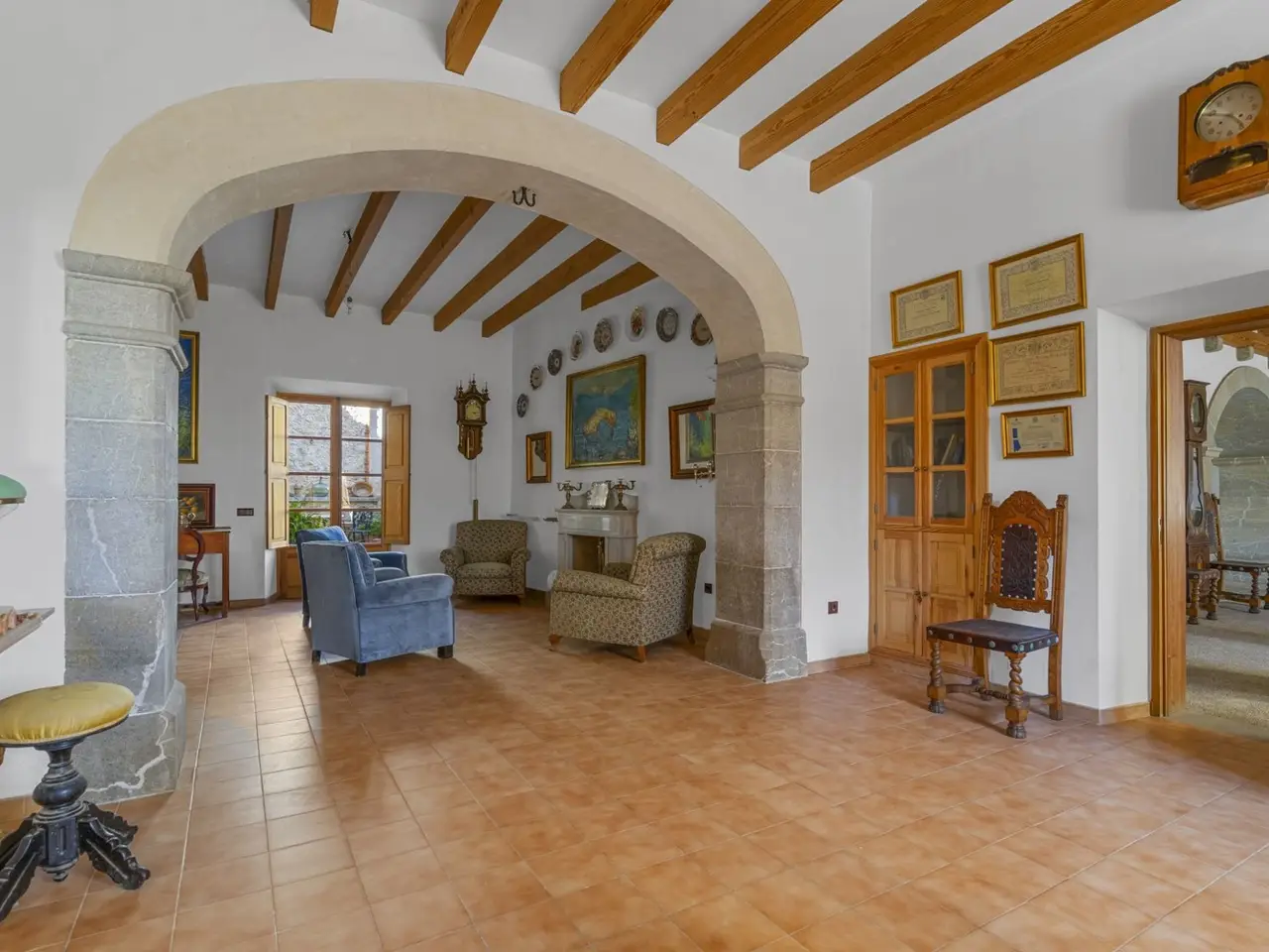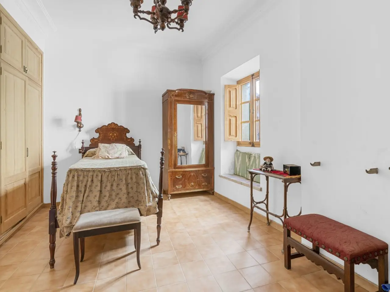This historic townhouse, originally built in the 14th century, offers a rare opportunity to immerse yourself in a piece of history. With a living area of ​​approximately 274 m² and a plot area of ​​approximately 1362 m², this well-maintained property is located in the center of Mancor de la Vall. The house comprises a total of seven rooms, including six bedrooms and four bathrooms. Solid natural stone walls, traditional wooden beam ceilings, tiled and stone floors, a fireplace and an antique olive oil press give the building its authentic character and historical charm. The ground floor offers spacious rooms with direct access to a central courtyard, which is equipped with its own well. Several smaller buildings within the property house garages for up to four cars and various utility rooms. The property is equipped with oil heating. A garden, which is located across the street, is surrounded by large natural stone walls and shady trees. This additional plot offers plenty of space for creative design options and has the potential to become a highlight of the property with new ideas. This offer will appeal to those looking for a unique residence that is both a retreat and an expression of a bygone era. Position Mancor de la Vall is located in the heart of the Serra de Tramuntana, about 215 m above sea level, and has retained the original charm of a small village in a valley surrounded by mountains. In addition to Mancor, the municipality also includes the hamlets of Biniarroi, Massanella and Biniatzent. Of particular architectural interest are the parish church of Sant Joan Baptista and the chapel of Santa Llúcia, which were first mentioned in 1358. It is worth taking a walk to the chapel to enjoy the beautiful views of the village and the mountains. Here you can also admire several houses with interesting architecture, such as Can Marquesí, Son Simó, Cas Vellaco or Turixant. The latter is now a hotel with a restaurant. In November the Fira del Esclata-sang i la Muntanya (Mushroom and Mountain Festival) is held. Mushrooms are the stars of the festival, especially the esclata-sang, which is a key ingredient in many of the island's autumn gastronomic specialties, and it is an excellent opportunity to buy all kinds of artisan products and try delicious mushroom dishes in the restaurants and bars. Palma is about 35 km away. Surrounded by mountains, Mancor de la Vall offers hikers the opportunity to discover an unspoilt landscape of great beauty. equipment - Fireplace - Oil heating - Tile and stone floor - Antique olive oil press - Patio with well - Garages for 4 cars - Garden across the street parking space 1 x garage Other Information We generally recommend having the building law situation checked by a specialist lawyer. All information is based exclusively on information provided by the owner or client. We do not guarantee that the information is complete, correct or up-to-date. The brokerage fee is borne by the seller. Taxes incurred on the purchase, notary and land registry costs are to be borne by the buyer.
