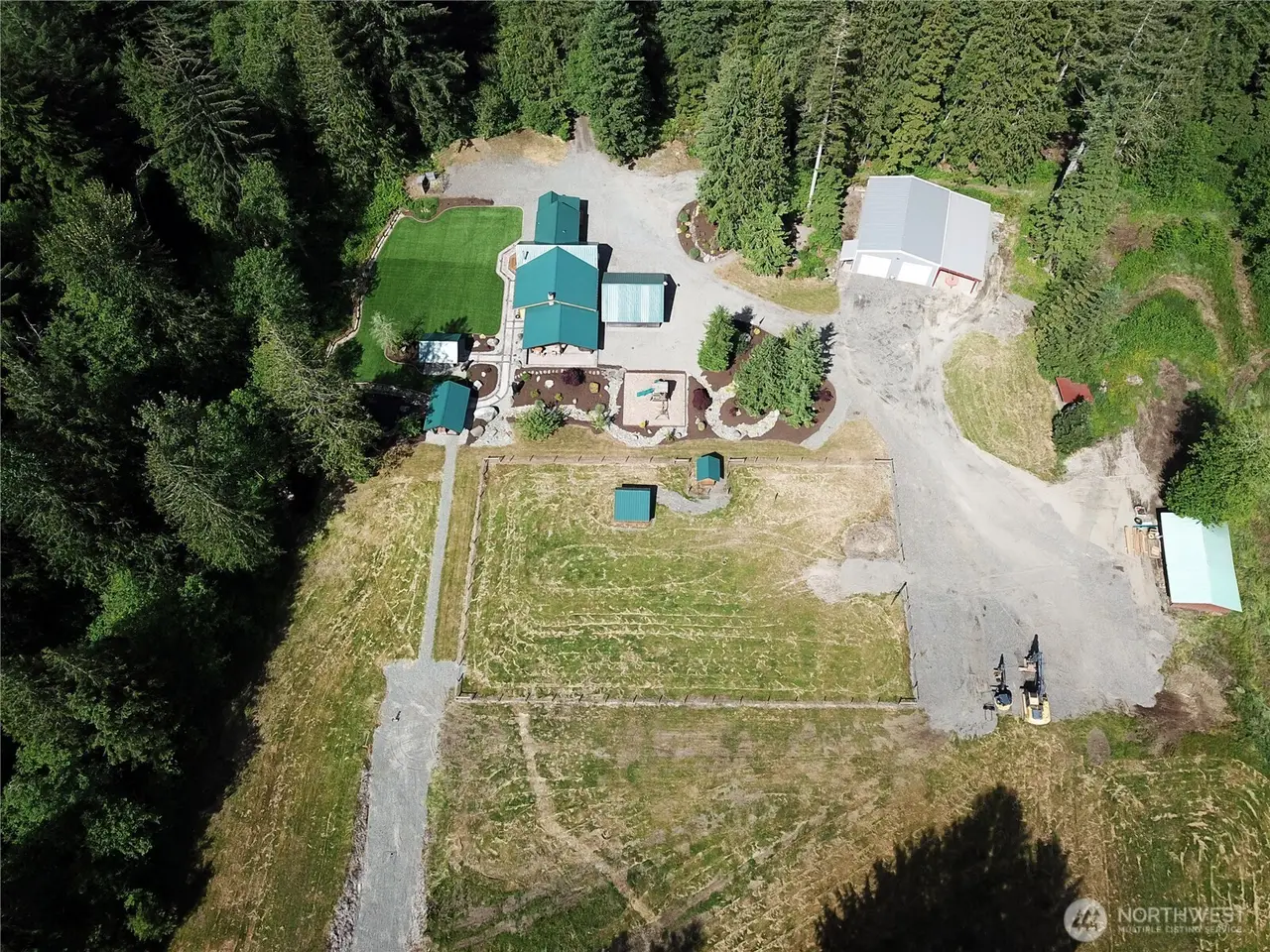 Priced to sell! Truly one-of-a-kind! 10 acres with peaceful forests and open pastures this property offers unmatched privacy and endless possibilities. Whether you're looking for a serene escape, hobby farm, or just room to breathe, this home delivers it all and a Massive Shop!. Pictures can't capture how special it is! 2 beds + a large den, 2 full baths, hardwood plank flrs, fresh int paint, 2 cozy FP, wood planked ceilings, new roof (2023), new siding. Huge luxurious master suite. Incredible covered patio entertaining space: outdoor kitchen, custom tables, astro turf. Feels like a resort. Pasture for your farm animals and plenty of space to garden. Covered Parking (10+cars), A shooting range & Giant safe room too! Tahoma Schools