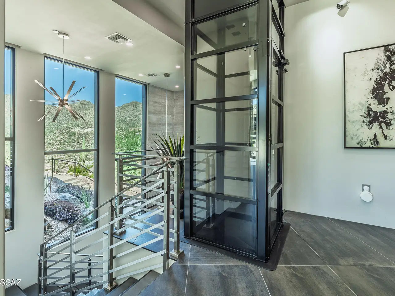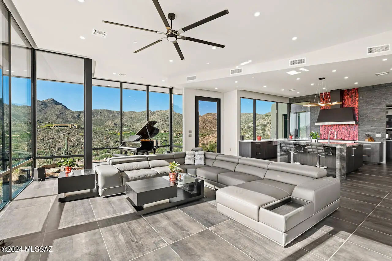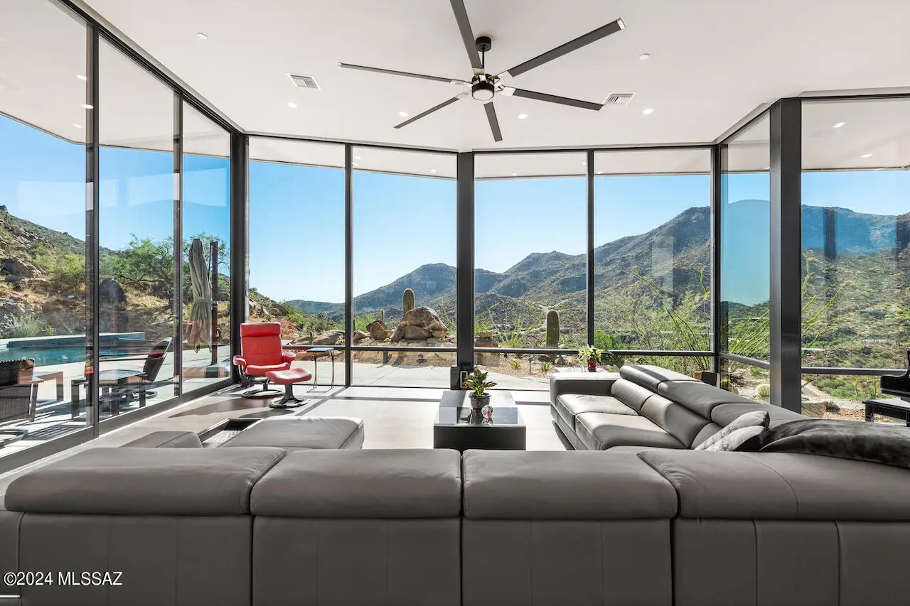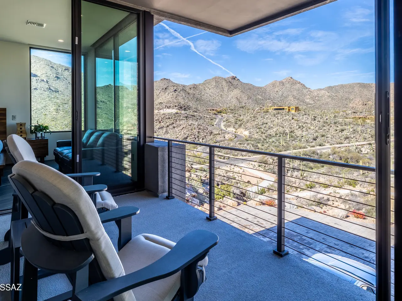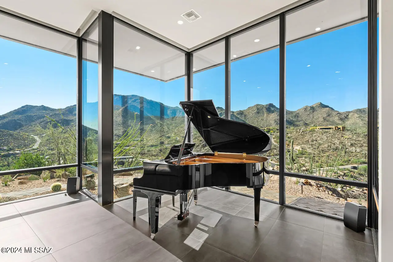 Come visit this custom Desert Modern residence within the man-gated community of Canyon Pass at Dove Mountain. Situated on a gentle rise above other neighboring homesites, this 9+ acre residence is positioned within large Sonoran Desert rock outcroppings providing unobstructed views in all directions. The 'open floor plan' was designed by Mark Soloway w/high ceilings + oversized floor to ceiling glass panes. The residence provides unlimited views yet creates a feeling of privacy and exceptional solitude. High end finishes throughout this custom masterpiece include Subzero/Wolf appliances, Lutron shades and comes fully furnished including a baby grand piano, artwork and electronic accessories. A stylish glass pneumatic elevator provides access to and from the lower level which contains