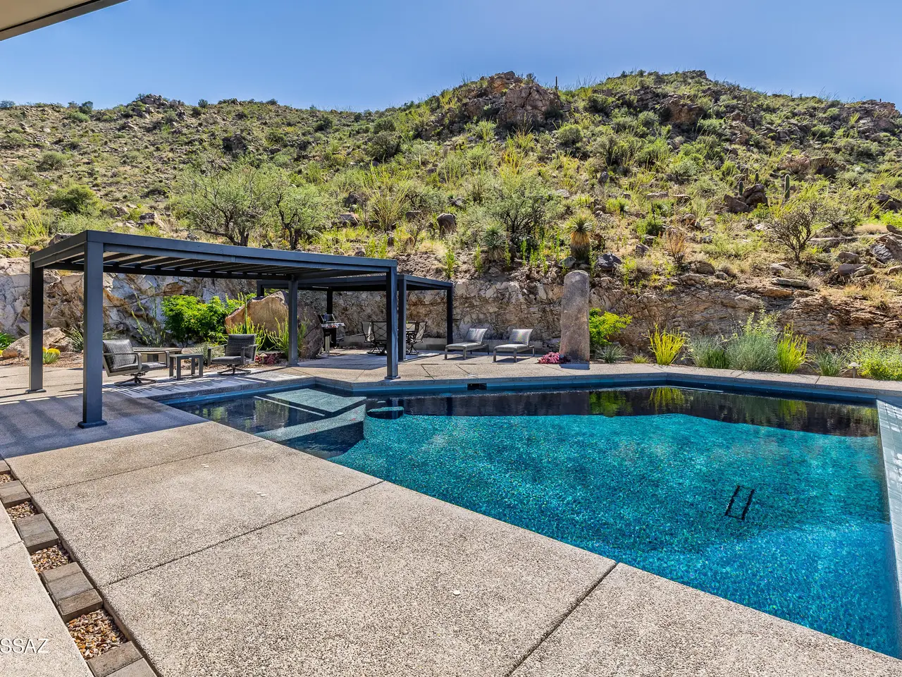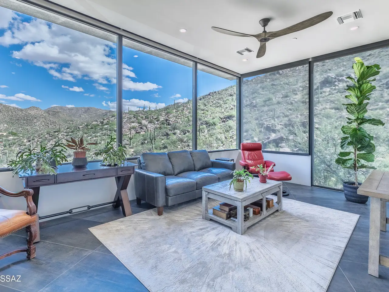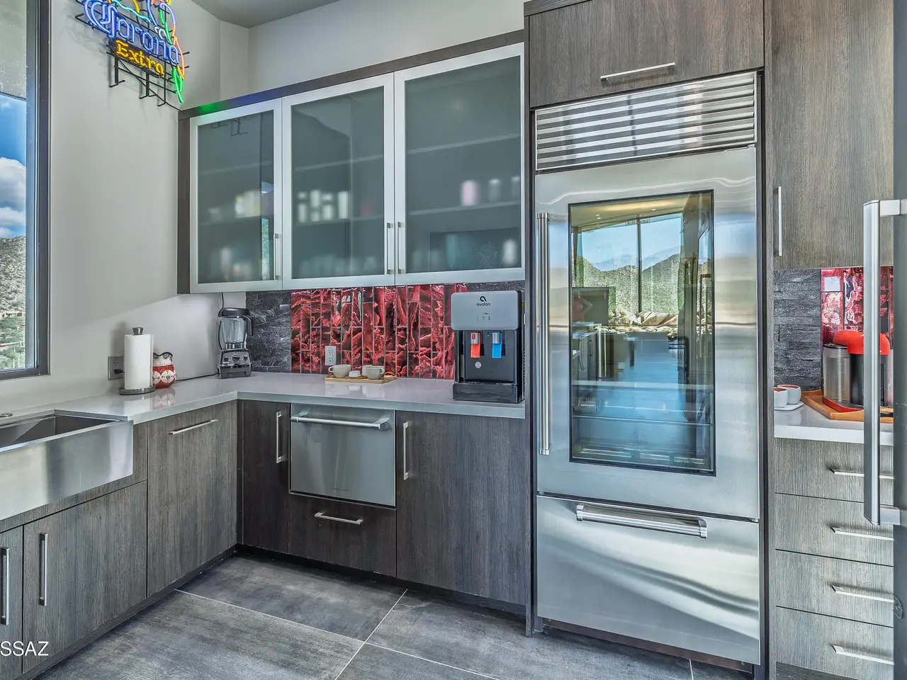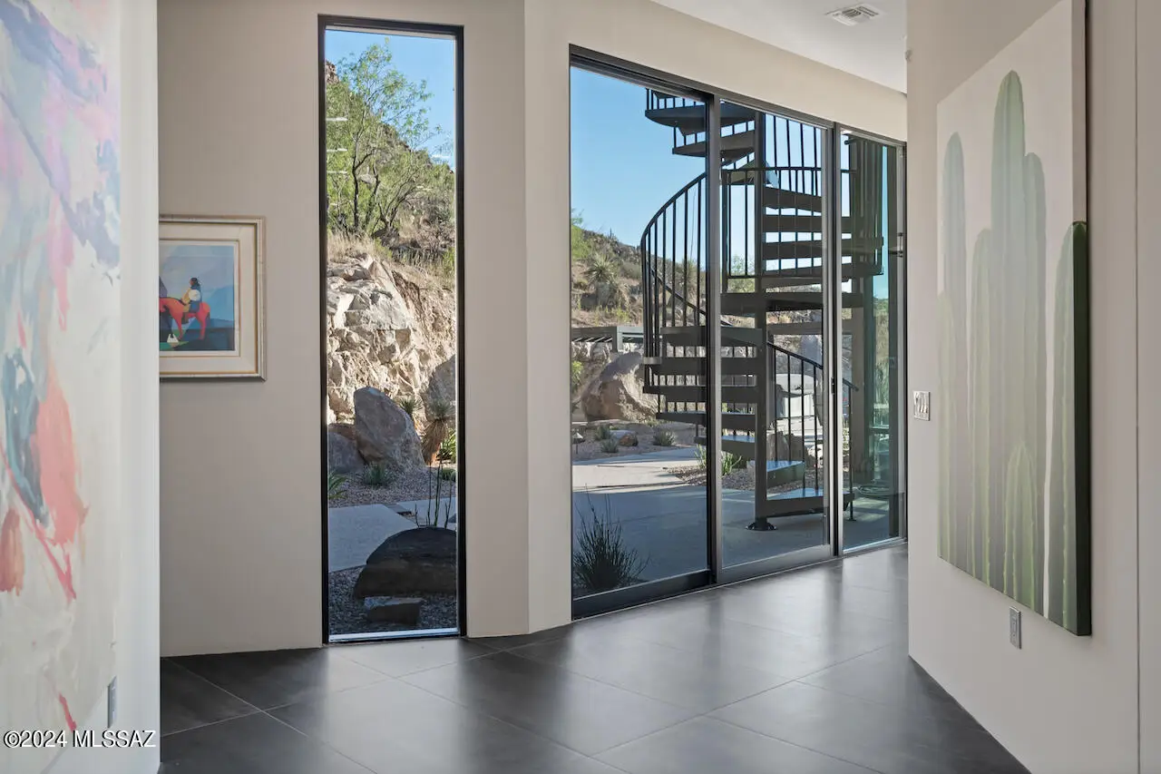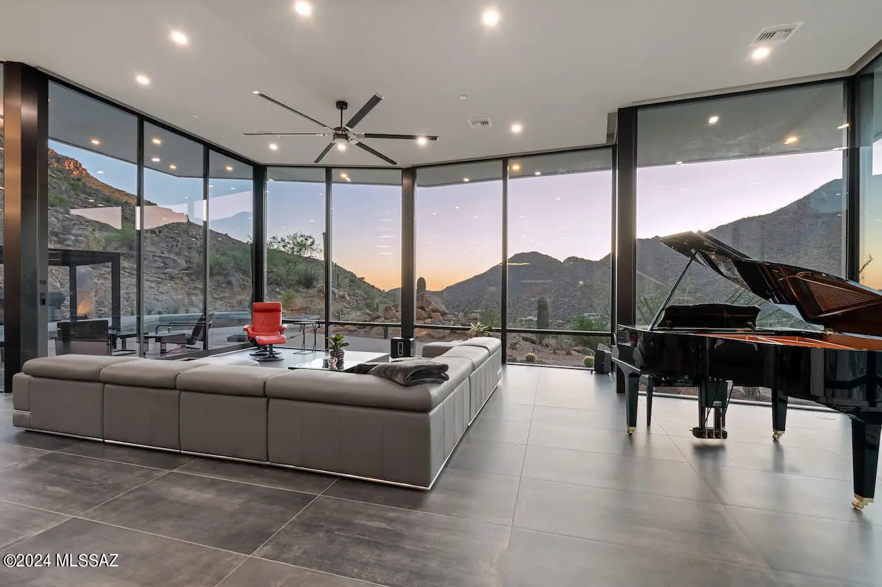 Come visit this custom Desert Modern residence within the man-gated community of Canyon Pass at Dove Mountain. Situated on a gentle rise above other neighboring homesites, this 9+ acre residence is positioned within large Sonoran Desert rock outcroppings providing unobstructed views in all directions. The 'open floor plan' was designed by Mark Soloway w/high ceilings + oversized floor to ceiling glass panes. The residence provides unlimited views yet creates a feeling of privacy and exceptional solitude. High end finishes throughout this custom masterpiece include Subzero/Wolf appliances, Lutron shades and comes fully furnished including a baby grand piano, artwork and electronic accessories. A stylish glass pneumatic elevator provides access to and from the lower level which contains