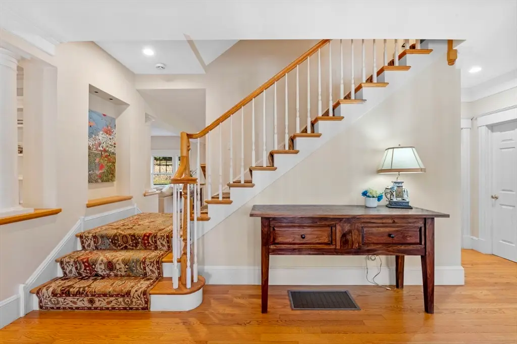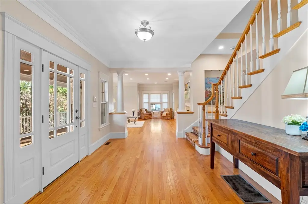 BEACH ACCESS. This 5,486 sqft custom built shingle styled home is tucked away off of Cloutman's Lane in the desired Ocean meadow neighborhood. Flanked w/ ocean views, this fabulous seaside home offers everything you would look for in modern living! Dramatic entry foyer splits formal living & dining room, featuring 9' ceilings, rich hardwoods & custom detail. State-of-the-art chef's kitchen with open floor plan to fireplaced family room and exterior access to yard, patio & wrap around porch. Entry mudroom is easily accessible from the oversized two-car heated garage & offers custom storage. Recently renovated 29x29 great room over the garage features vaulted ceiling, exquisite custom wet bar, stunning fireplace & ample room for guest overflow, play space, or even a wonderful au-pair suite. Expansive primary en-suite offers walk-in closet & ocean views. Three additional bedrooms & laundry room finish off the second floor. Finished third level would be perfect as an office, gym or fifth bedroom.