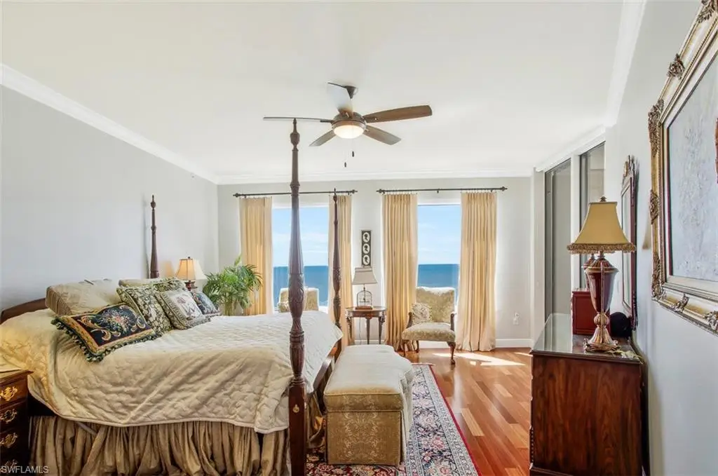 This stunning 3-bedroom + den, 3 (1) -bathroom beachfront home in Belize, located on Marco Island's southwest tip within Cape Marco, offers magnificent, unobstructed views of the Gulf of Mexico & Ten Thousand Islands and year-round sunsets. With a private elevator leading to a grand foyer, a luxurious open great room with expansive windows, and elegant details throughout, this residence is perfect for enjoying the water views from its spacious balconies on the 11th floor. No expense spared for the updated, gourmet kitchen with marble backsplash, quartz countertops, white cabinets, gas cooktop, refrigerator and freezer drawers, pull out drawers in cabinets, and quality stainless steel appliances. The den includes built-ins, beverage refrigerator, and custom pull-out drawers. The master suite features Gulf views, two walk-in closets, a luxurious soaking tub, and dual sinks, while the guest rooms offer privacy with a balcony overlooking the beach and Gulf. Residents can indulge in resort-style amenities such as a Gulf-front pool, spa, social room, fitness center, guest suites and theater. With two under-building parking spaces and easy elevator access to a private lobby, Belize in Cape Marco offers unparalleled Florida resort-style living in a tropical paradise!