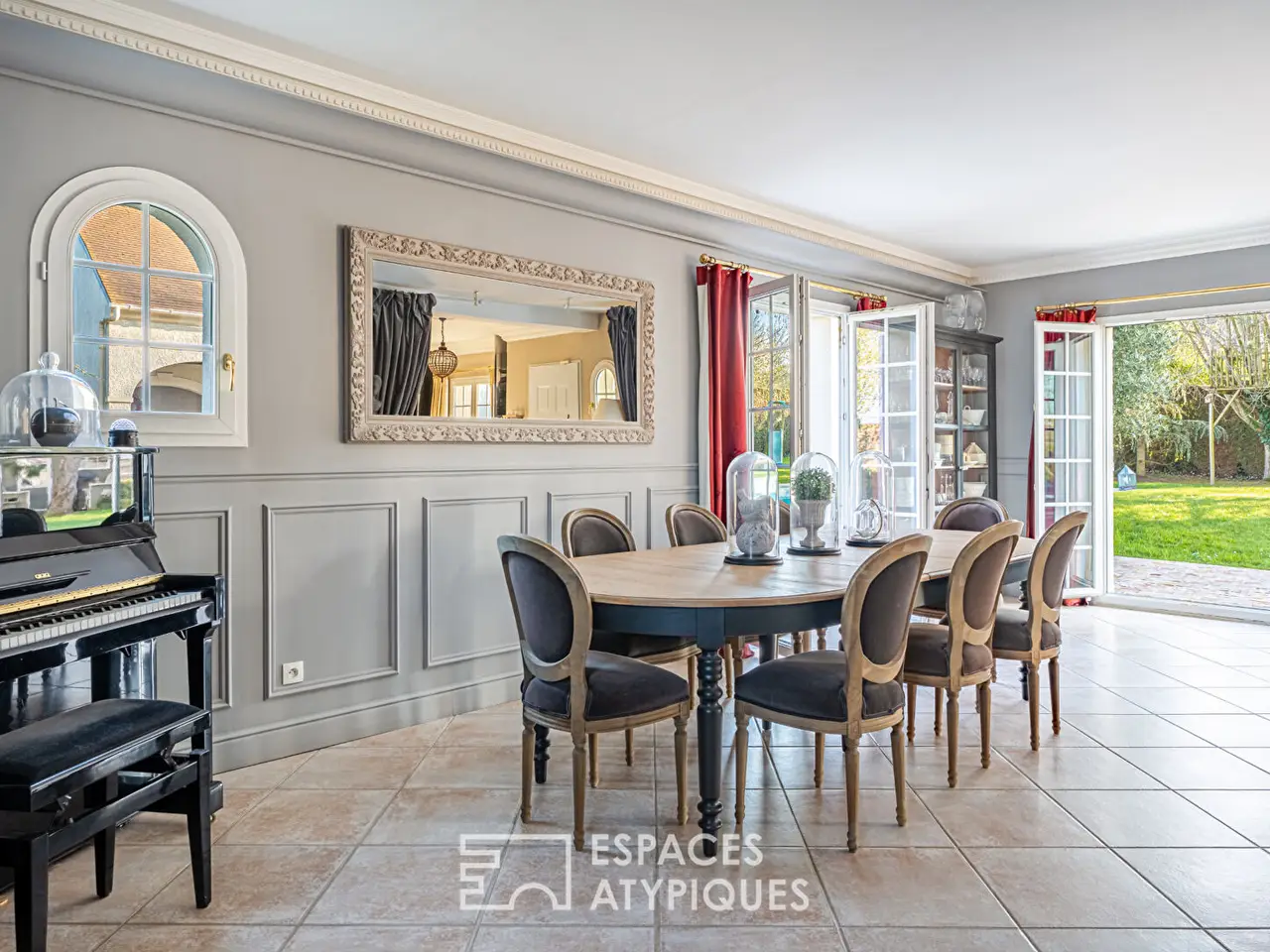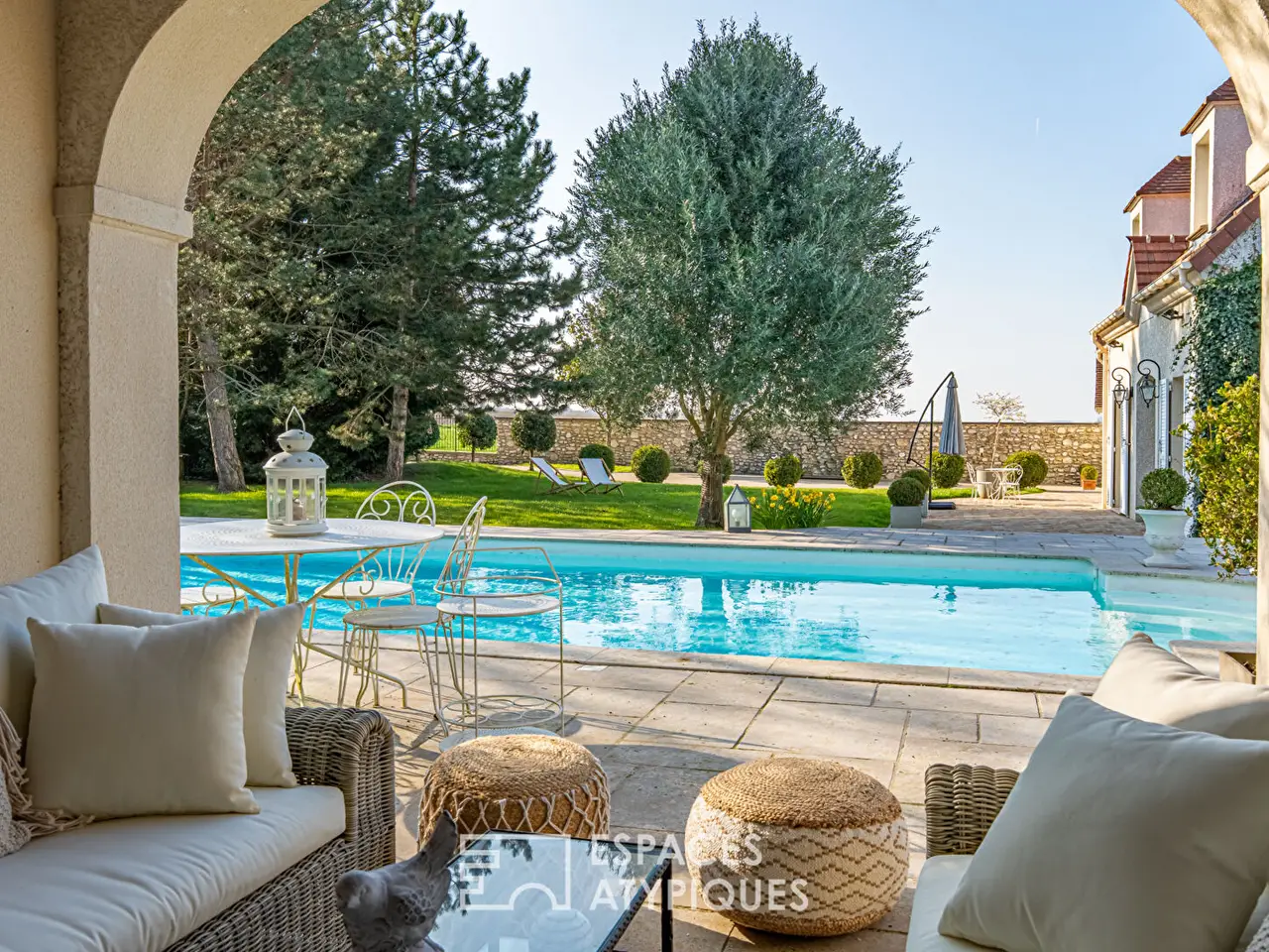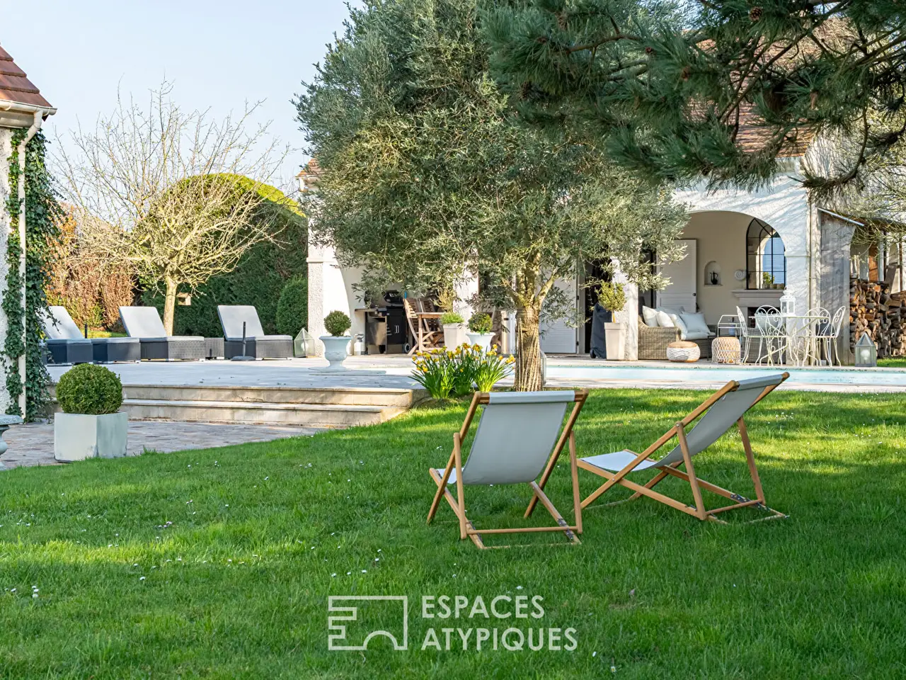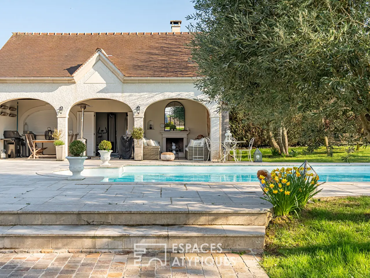 In the heart of a charming, picturesque stone village, located between Thoiry and Montfort-l'Amaury, in Marcq, just 45 minutes from Paris, this property, ideally located and sheltered from view, benefits from exceptional natural light thanks to its double southwest exposure and large windows opening onto a magnificent landscaped garden.Its generous proportions make it the perfect living space for a large family.With a surface area of ??250 m2, this residence combines charm and comfort. Nestled on a landscaped and wooded plot of 2,040 m2, it embodies a cozy lifestyle in a preserved, enchanting setting, with unobstructed views of the surrounding countryside and sumptuous sunsets.Boasting harmonious architecture and high-end amenities, this property stands out with its large reception room, swimming pool, pool house, gym, panic room (which can also be used as a meditation room), and spacious 75 m2 garage that can accommodate three vehicles, motorcycles, and bicycles.The entrance opens onto a beautiful contemporary reception room with a fireplace, followed by a pleasant, fully equipped kitchen featuring a boat-shaped central island (with a suspended ceiling and extractor hood) that invites you to relax.A superb, cozy living room with an insert fireplace, ideal for cozy fires, provides access to an outdoor terrace with a summer lounge and fountain. A bedroom with its own shower room, a powder room, and a laundry room complete this level.Upstairs, a landing leads to the sleeping area, which consists of three bedrooms, a bathroom, and a master suite of over 40 m2 with a future shower room (connections ready), a large dressing room, and a separate toilet.Outside, the vast, flat garden features a tree house, a vegetable garden, a garden shed, and a superb terrace with sun loungers overlooking the 10×5 m heated swimming pool, creating a true oasis of serenity.The large pool house includes a summer kitchen, a lounge area with a fireplace, a gym, and a technical room with a heat pump.Parking for more than 6 vehicles is available in the courtyard and driveway.A sure winner, with no work required.Technical Information:Heating by reversible heat pumpPVC double glazing, electric roller shuttersUnderfloor heating on the ground floorMotorized garage doorAutomatic wrought iron gate, maintenance-free epoxy grillesOld tiles, solid oak flooringAlarm with remote monitoringSubmerged thermal roller shutter for the poolExcellent Energy Performance Certificate: C and ACompliant sanitation (mains drainage)High-speed fiber opticPlot enclosed by wire mesh and gates, planted with treesCeiling height: 2.75 mThree fireplacesLocation:10 minutes from the N12 and 35 minutes from Paris10 minutes from Villiers-Saint-Frederic train station (30 minutes from Paris), or 15 minutes from Mere train station (36 minutes from Montparnasse)Bus to Montfort-l'Amaury, a 5-minute walkHigh-quality nursery and elementary school in the village, a 10-minute walkSchool bus service to Montfort-l'Amaury, Beynes, Villiers-Saint-Frederic, and La Queue-lez-YvelinesShops a 2-minute drive away (Thoiry): bakery, pharmacy, convenience store, tobacconist, restaurants, gas station, etc.Nearby leisure activities: Thoiry Zoo, state-owned forests (Thoiry, Beynes, Marcq), equestrian centers, and golf coursesREF. 10162Additional information* 8 rooms* 4 bedrooms* 2 shower rooms* 1 floor in the building* Outdoor space : 2020 SQM* Parking : 6 parking spaces* Property tax : 4 600 €Energy Performance CertificatePrimary energy consumptionc : 178 kWh/m2.yearHigh performance housing*A*B*178