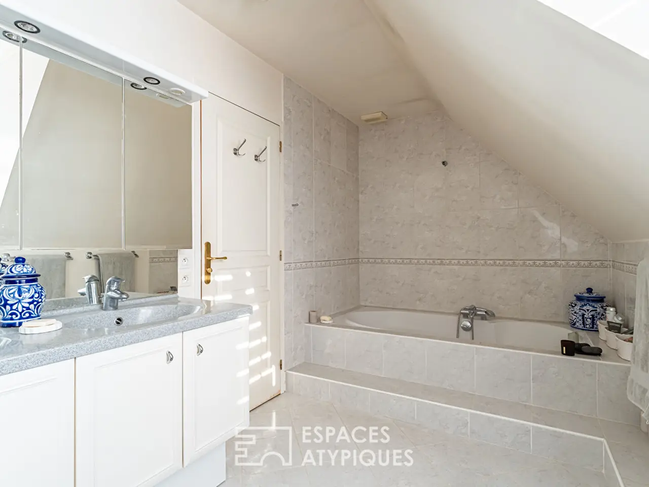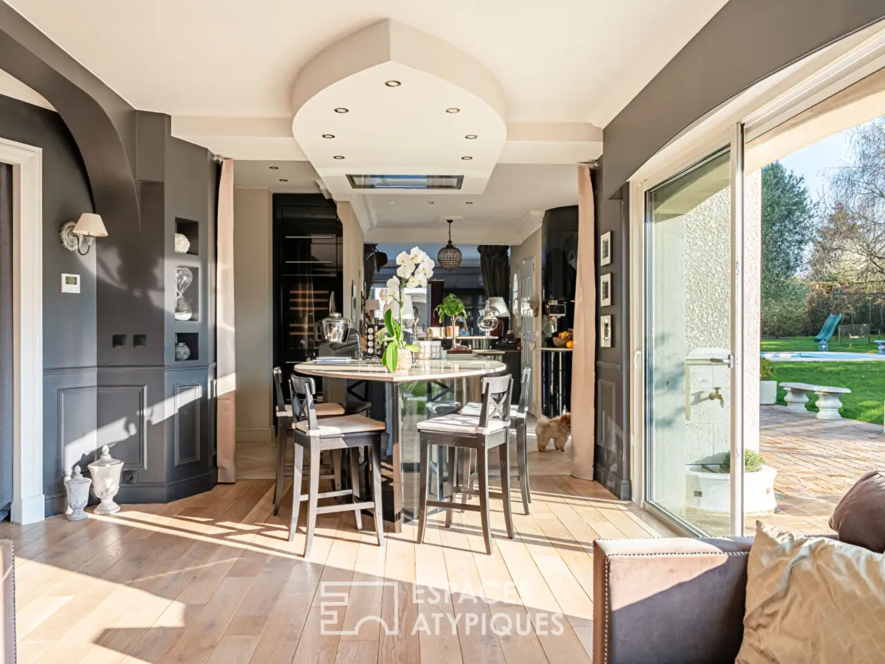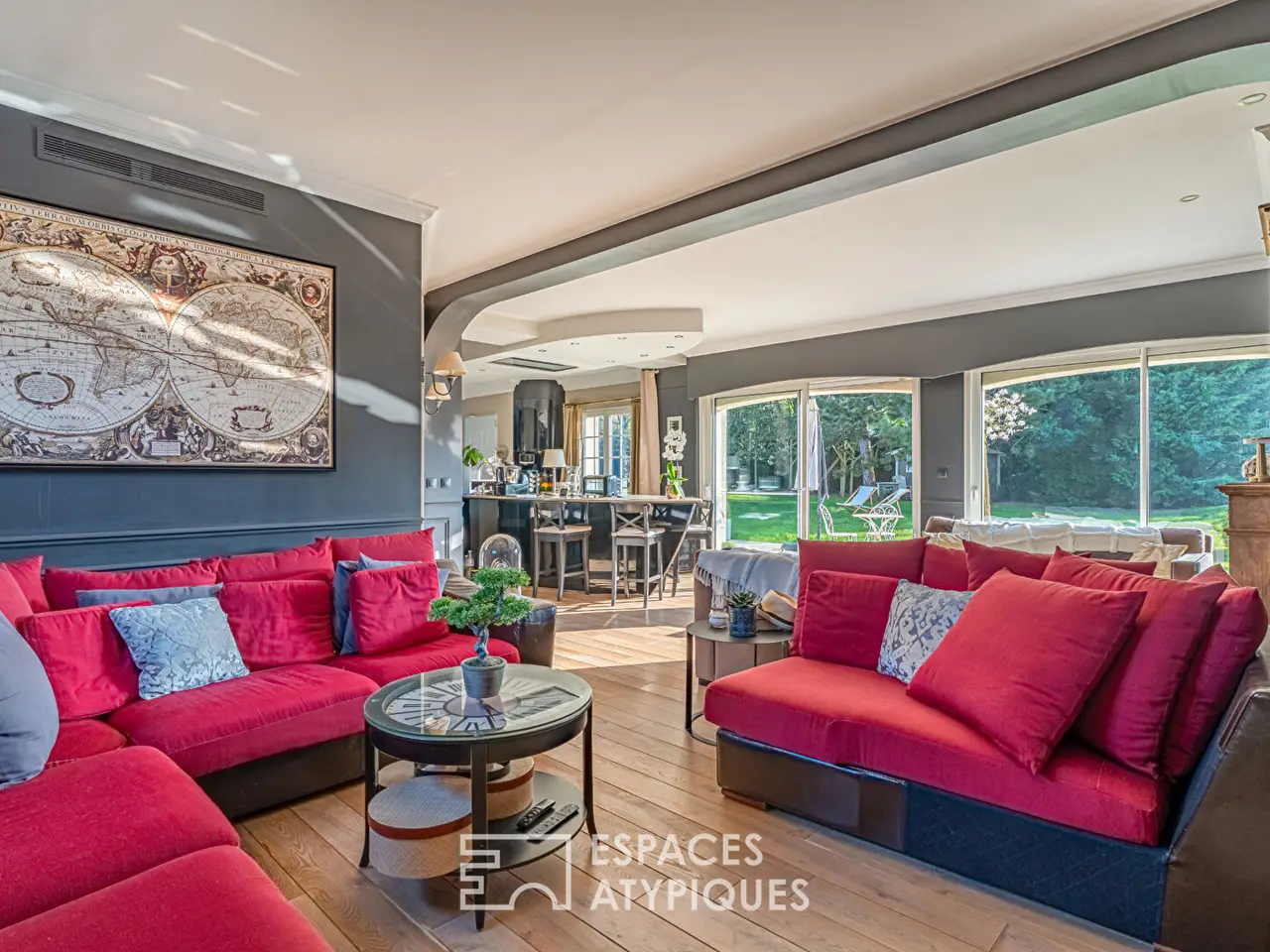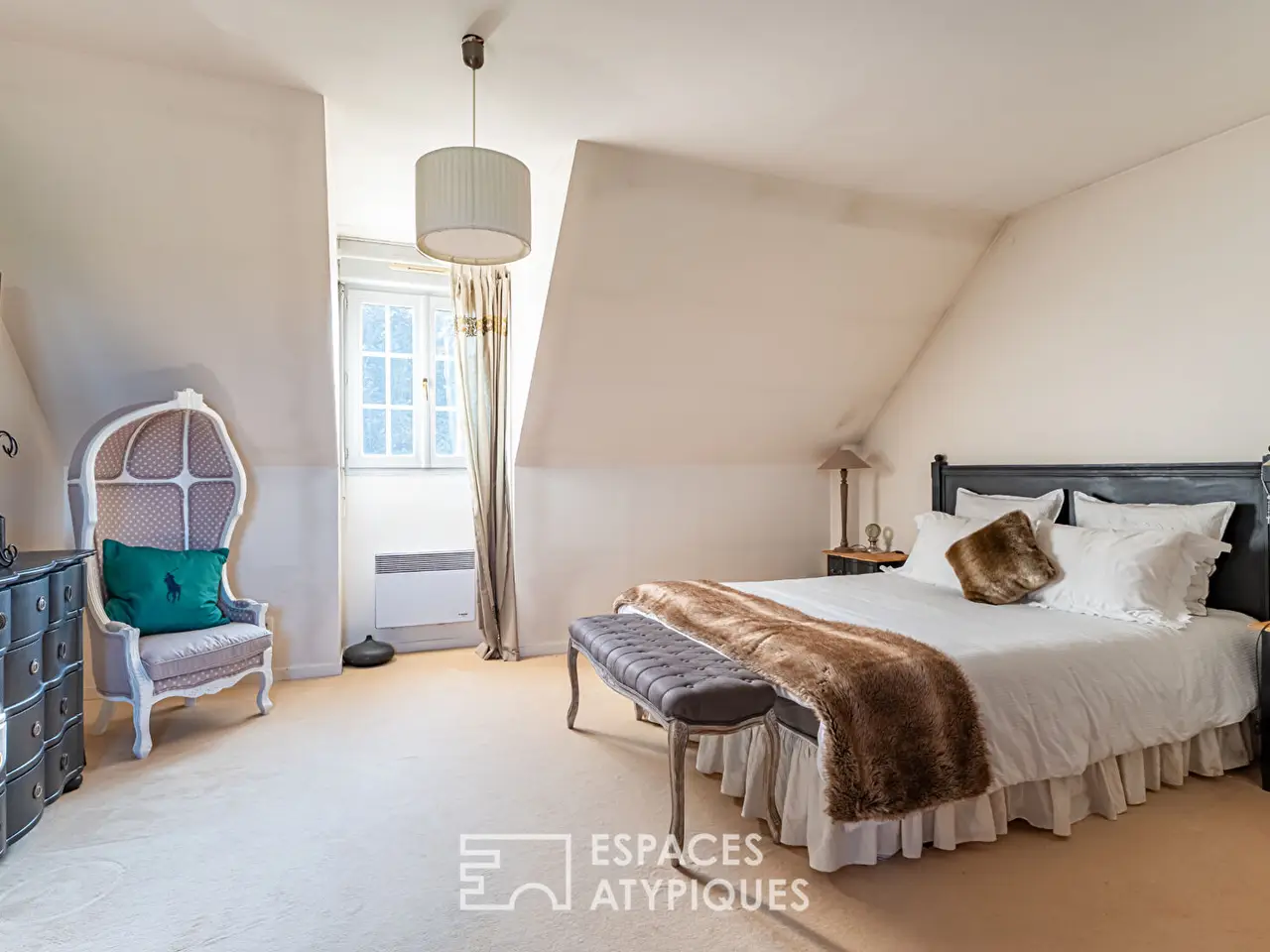 In the heart of a charming, picturesque stone village, located between Thoiry and Montfort-l'Amaury, in Marcq, just 45 minutes from Paris, this property, ideally located and sheltered from view, benefits from exceptional natural light thanks to its double southwest exposure and large windows opening onto a magnificent landscaped garden.Its generous proportions make it the perfect living space for a large family.With a surface area of ??250 m2, this residence combines charm and comfort. Nestled on a landscaped and wooded plot of 2,040 m2, it embodies a cozy lifestyle in a preserved, enchanting setting, with unobstructed views of the surrounding countryside and sumptuous sunsets.Boasting harmonious architecture and high-end amenities, this property stands out with its large reception room, swimming pool, pool house, gym, panic room (which can also be used as a meditation room), and spacious 75 m2 garage that can accommodate three vehicles, motorcycles, and bicycles.The entrance opens onto a beautiful contemporary reception room with a fireplace, followed by a pleasant, fully equipped kitchen featuring a boat-shaped central island (with a suspended ceiling and extractor hood) that invites you to relax.A superb, cozy living room with an insert fireplace, ideal for cozy fires, provides access to an outdoor terrace with a summer lounge and fountain. A bedroom with its own shower room, a powder room, and a laundry room complete this level.Upstairs, a landing leads to the sleeping area, which consists of three bedrooms, a bathroom, and a master suite of over 40 m2 with a future shower room (connections ready), a large dressing room, and a separate toilet.Outside, the vast, flat garden features a tree house, a vegetable garden, a garden shed, and a superb terrace with sun loungers overlooking the 10×5 m heated swimming pool, creating a true oasis of serenity.The large pool house includes a summer kitchen, a lounge area with a fireplace, a gym, and a technical room with a heat pump.Parking for more than 6 vehicles is available in the courtyard and driveway.A sure winner, with no work required.Technical Information:Heating by reversible heat pumpPVC double glazing, electric roller shuttersUnderfloor heating on the ground floorMotorized garage doorAutomatic wrought iron gate, maintenance-free epoxy grillesOld tiles, solid oak flooringAlarm with remote monitoringSubmerged thermal roller shutter for the poolExcellent Energy Performance Certificate: C and ACompliant sanitation (mains drainage)High-speed fiber opticPlot enclosed by wire mesh and gates, planted with treesCeiling height: 2.75 mThree fireplacesLocation:10 minutes from the N12 and 35 minutes from Paris10 minutes from Villiers-Saint-Frederic train station (30 minutes from Paris), or 15 minutes from Mere train station (36 minutes from Montparnasse)Bus to Montfort-l'Amaury, a 5-minute walkHigh-quality nursery and elementary school in the village, a 10-minute walkSchool bus service to Montfort-l'Amaury, Beynes, Villiers-Saint-Frederic, and La Queue-lez-YvelinesShops a 2-minute drive away (Thoiry): bakery, pharmacy, convenience store, tobacconist, restaurants, gas station, etc.Nearby leisure activities: Thoiry Zoo, state-owned forests (Thoiry, Beynes, Marcq), equestrian centers, and golf coursesREF. 10162Additional information* 8 rooms* 4 bedrooms* 2 shower rooms* 1 floor in the building* Outdoor space : 2020 SQM* Parking : 6 parking spaces* Property tax : 4 600 €Energy Performance CertificatePrimary energy consumptionc : 178 kWh/m2.yearHigh performance housing*A*B*178