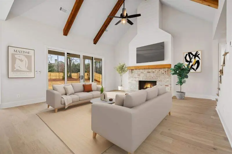 What an amazing opportunity to own this newly built, move-in ready home in Lassiter Cove for a fabulous price! Thoughtfully developed by Cotton States Properties, this four-sided brick home combines functionality and elegance, designed for both daily living and effortless entertaining. An expansive open floor plan featuring a gourmet kitchen with a stunning island overlooking the family room and outdoor kitchen-perfect for hosting gatherings. The spacious primary suite is a true retreat, showcasing a spa-inspired bathroom with a zero-entry, oversized shower. Additionally, the main level offers a secondary ensuite bedroom, ideal for guests or multigenerational living. Upstairs, you will find three additional bedrooms, two full baths (one is jack and jill) and a spacious loft, providing flexible space for a media room, playroom, or home office. This home also offers, ideal outdoor living with a fully fenced, private, flat backyard-perfectly poised and ready for a future pool; two additional covered patios, one with an outdoor kitchen with grill, refrigerator, sink and storage and one right off the great room with expansive luxury sliding glass doors. Designer details include cedar beams, shiplap accents, gorgeous woodwork, and a striking brick fireplace, wood blinds, custom closets, adding warmth and character throughout. This home delivers a move-in ready lifestyle in one of the area's most desirable communities, just moments from top schools, parks, and shopping.