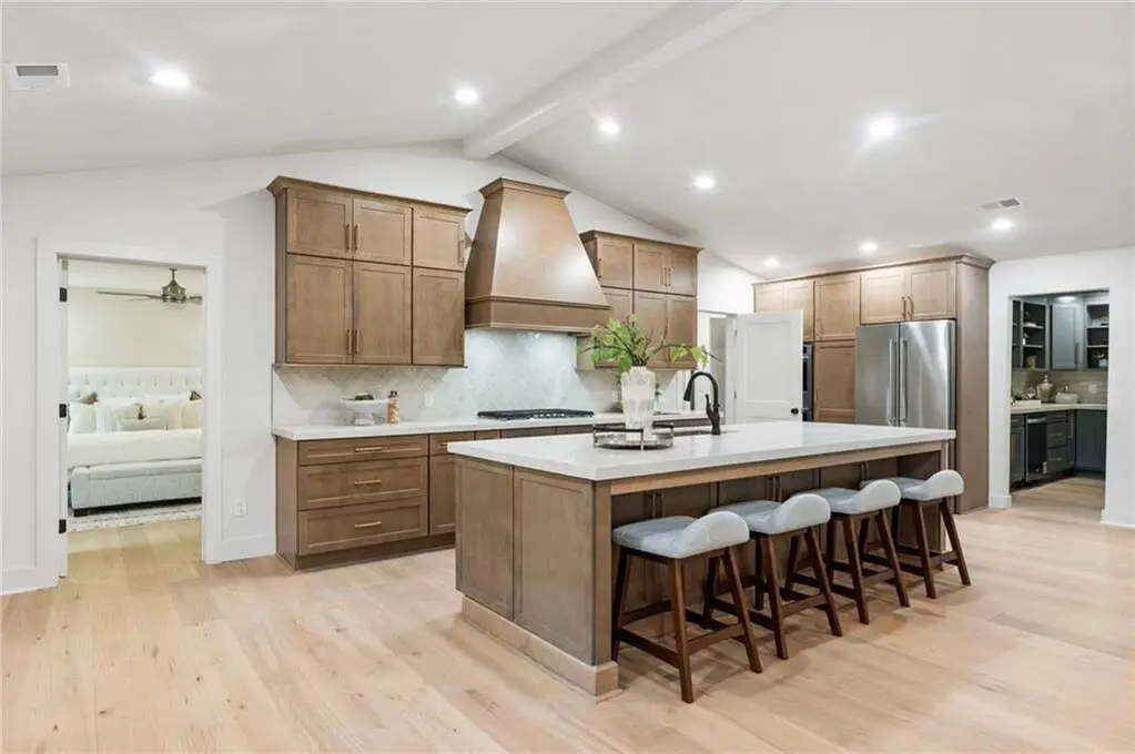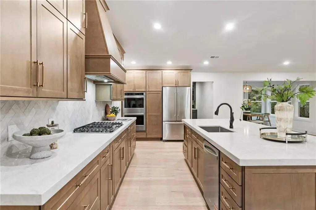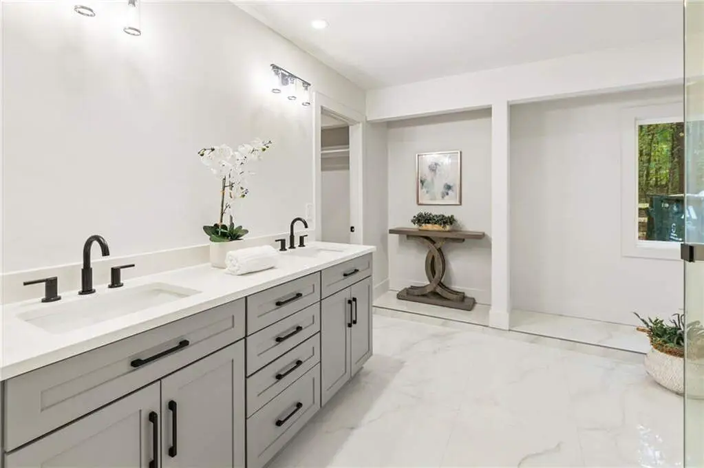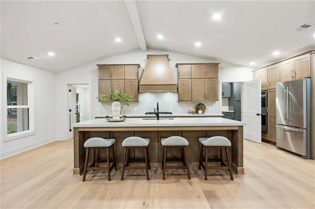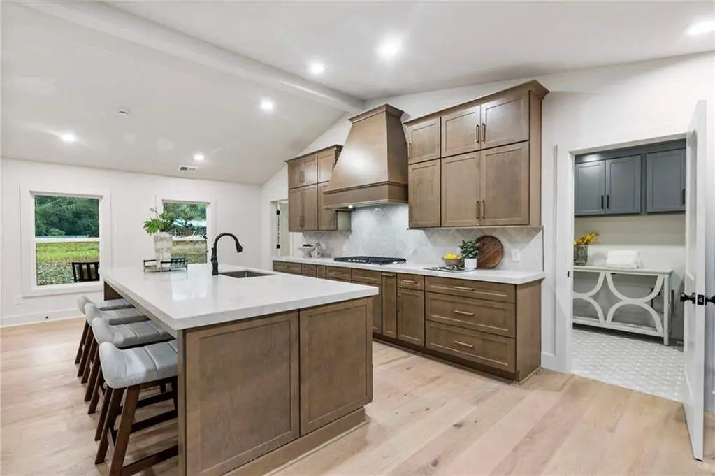 This stunning Marietta home in the Walton HS district has been completely rebuilt from the ground up - and the result is spectacular. Designed primarily as a spacious ranch, it offers four bedrooms and four full baths on the main level, including a luxurious primary suite. A fabulous in-law suite above the two-car garage provides over 500 square feet of space for guests, a home office, or a private retreat with a kitchenette, living space and full bath. The open-concept kitchen of the main home is a showstopper, featuring beautiful quartz countertops, soft-close cabinetry, double ovens, a 5-burner gas cooktop with vent hood, French-door refrigerator, and built-in microwave and dishwasher. Entertaining is effortless with a large scullery/pantry that includes a second sink and dishwasher. The great room offers flexible space for living, dining, and entertaining, all filled with abundant natural light. The primary suite features double vanities, dual shower heads, ample storage and a spacious walk-in closet. Throughout the home, you'll find wide-plank white oak hardwood flooring and designer tile in all baths and the laundry - no carpet anywhere. Each bedroom offers generous space and large closets, with en-suite or nearby bath access. Set on a 1.3+ acre lot, the property provides both privacy and potential, with room to add a pool or outdoor recreation area. Located close to major commuter routes and the top-rated Walton High School, this home truly has it all.