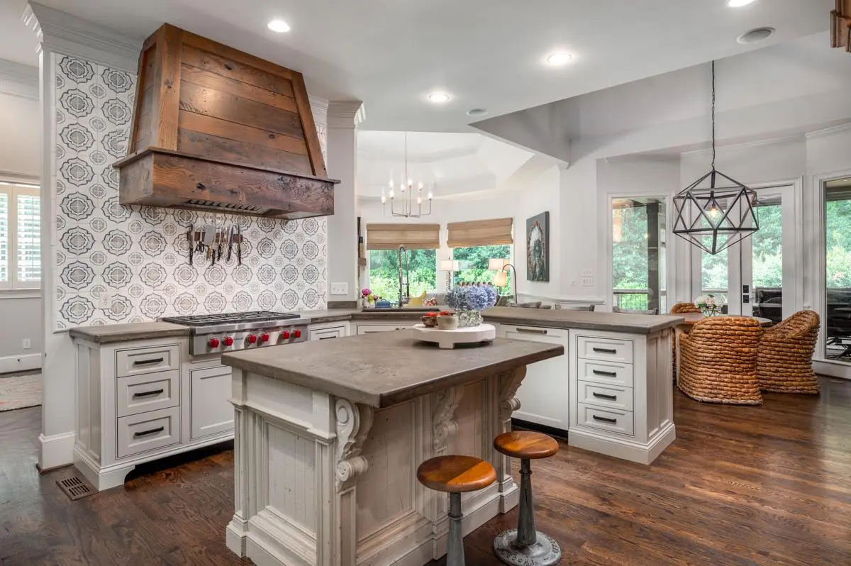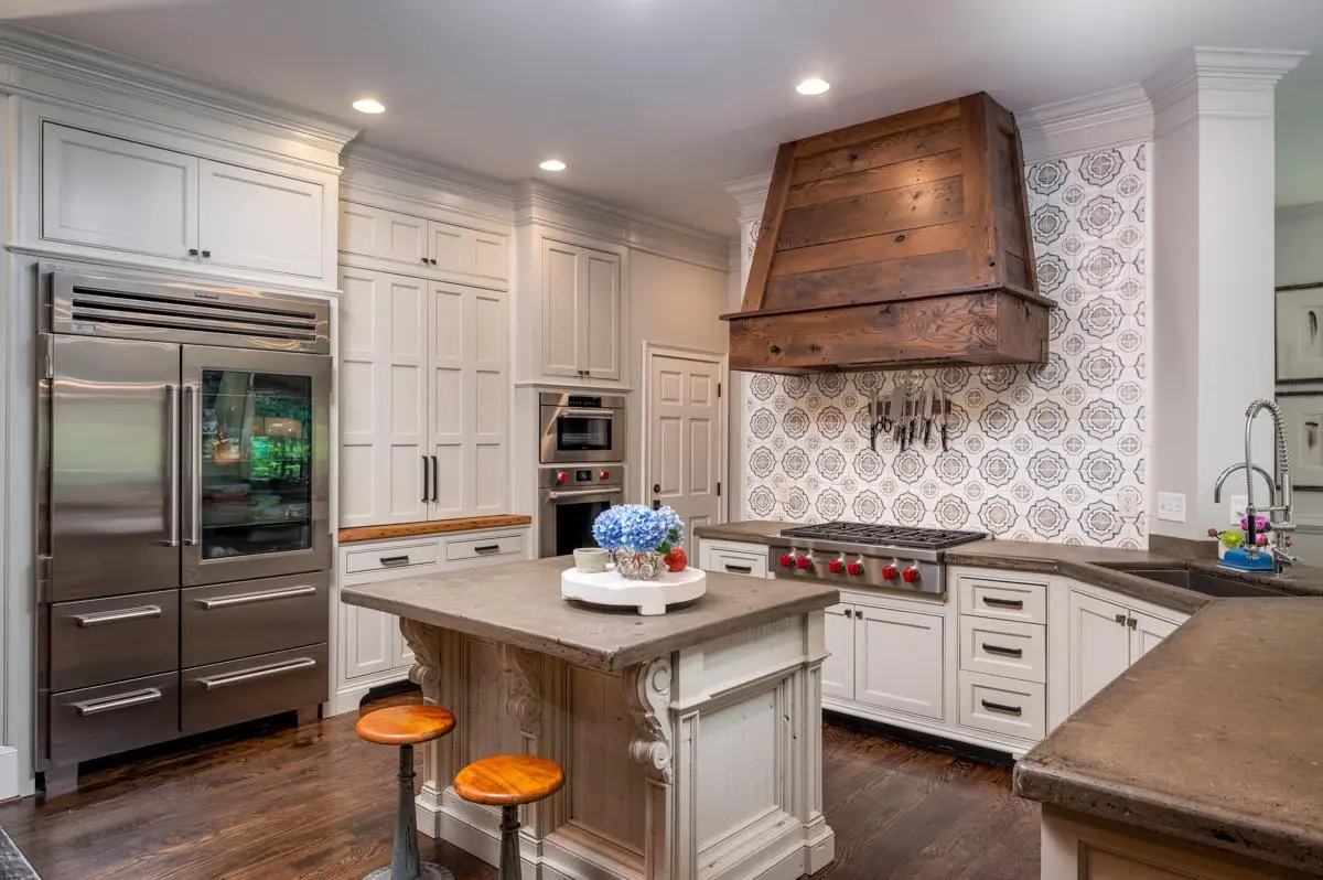 The totally remodeled kitchen has exquisite custom floor to ceiling cabinetry and Wolf appliances including two ovens (electric and steam). You won't want to miss the Concrete countertops that offer a modern touch and serving bar area that opens the kitchen to the family room. Cozy keeping room off breakfast area is a perfect place to enjoy your guests as you prepare a meal in the gourmet kitchen.
