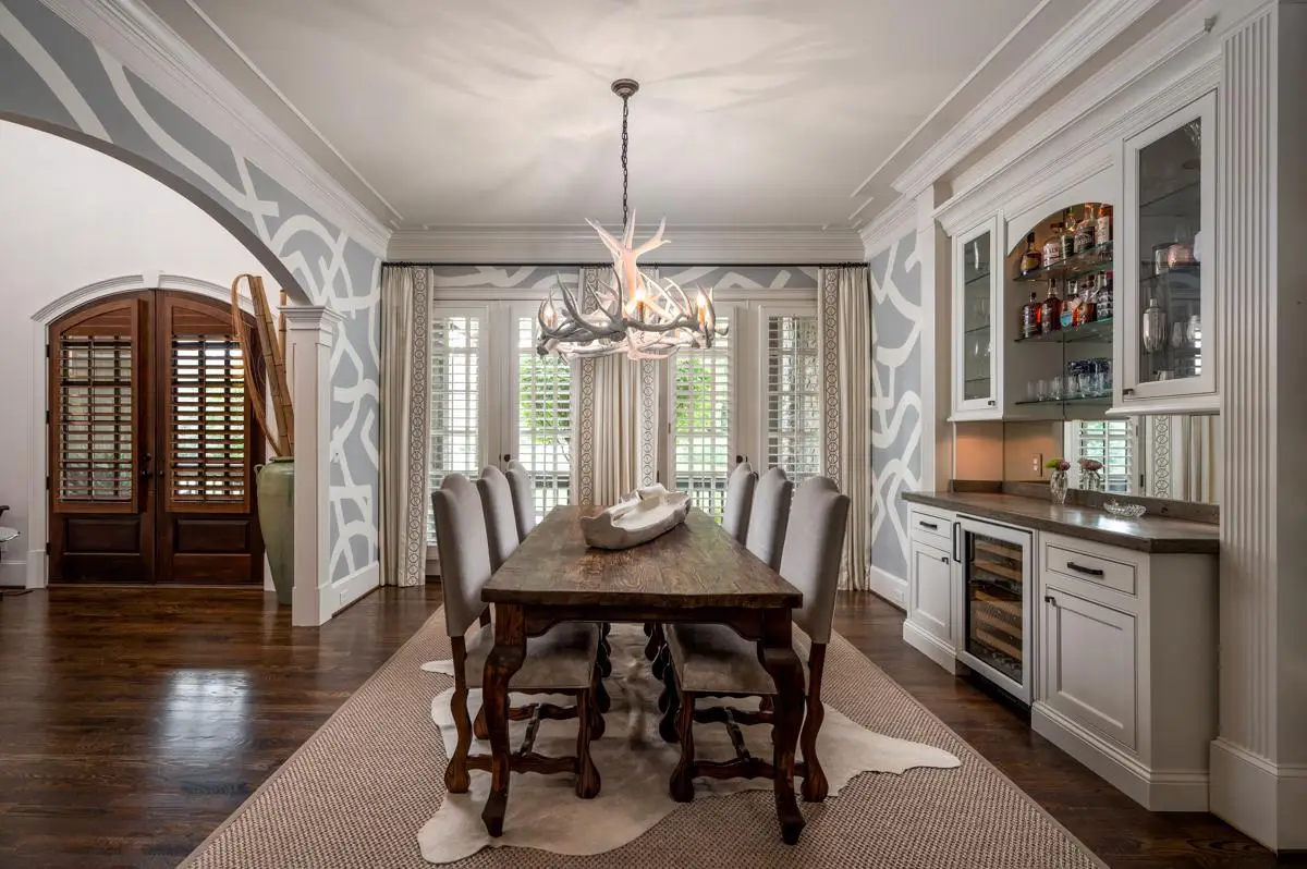 As you enter the foyer you will notice that all the lighting has been updated with designer chosen pieces that complement the open floor plan. Work from home from the main floor office that has multiple doors to the front and side porch. The formal dining room boasts built-in cabinetry that is nice for serving plus built in wine refrigerator.