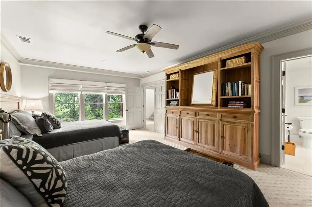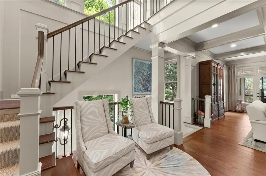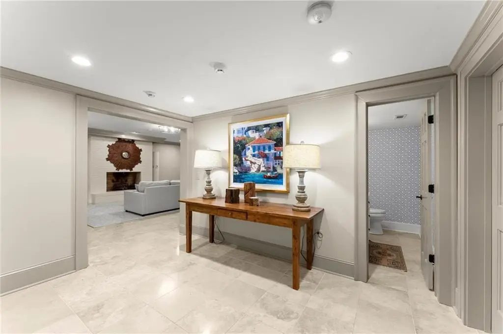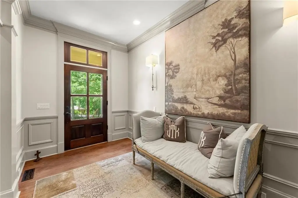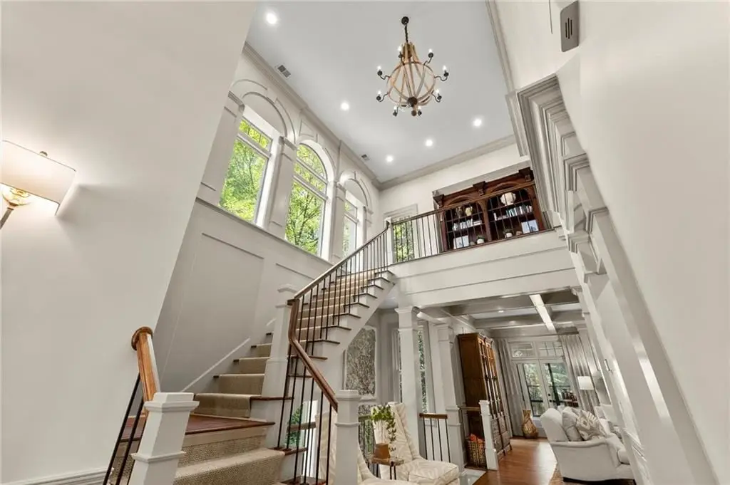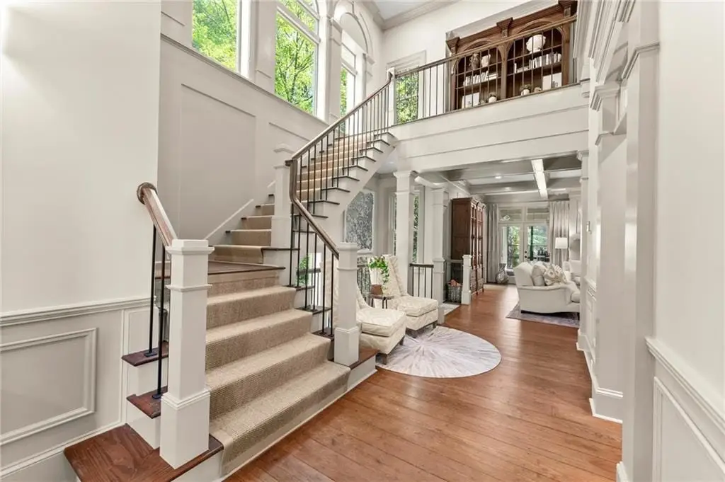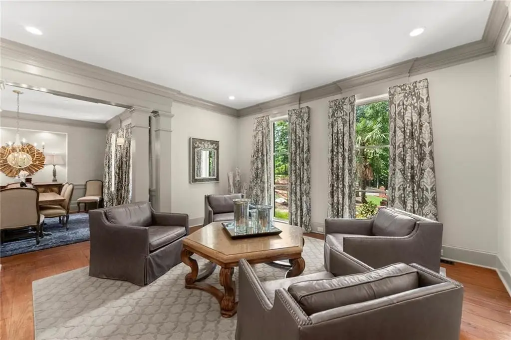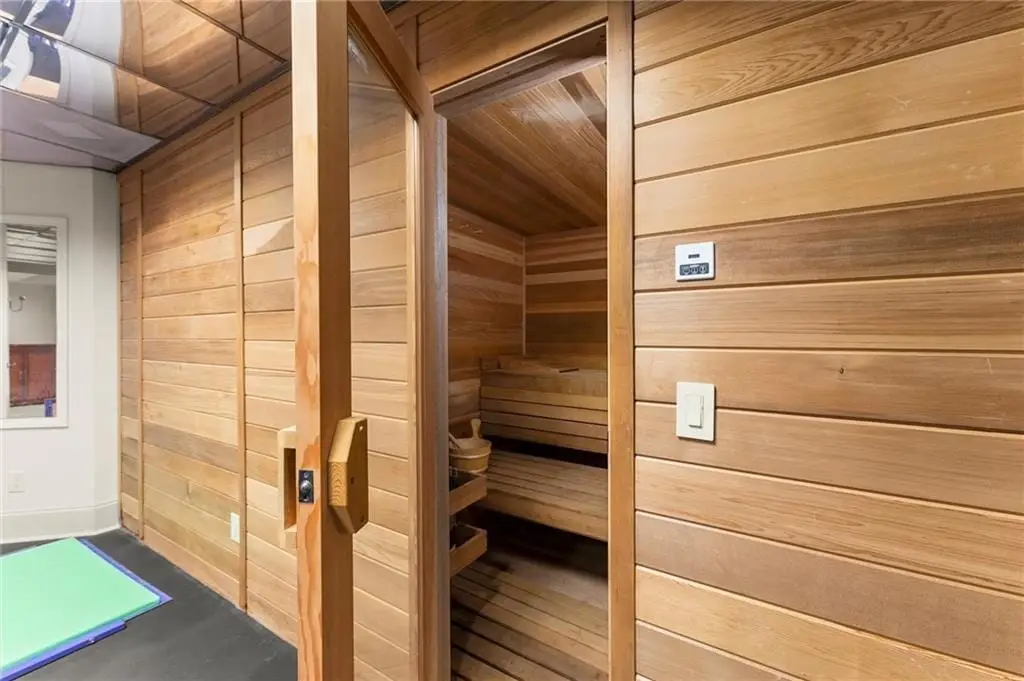 Exceptional home in Atlanta Country Club on a quiet cul-de-sac is enhanced with refined architectural details such as window transoms, privacy alcoves, high profile molding, stair landings and much more. The professionally designed and renovated residence offers a cohesive and timeless transitional style throughout making it turnkey ready. Upon entry, a two-story foyer will greet you with a truly elegant staircase and dramatic windows. A formal living room is adjacent to the entryway. A spacious but warm family room with coffered ceilings opens seamlessly to a sophisticated kitchen with marble countertops, Sub-Zero refrigerator, Thermador gas range, KitchenAid appliances, warming drawer, prep sink and banquet seating. A butlers pantry with wine fridge and glass cabinetry adds elegance while connecting the kitchen and dining room which easily accommodates 12 guests. The main level also offers a chic powder room with alcove entrance as well as a full bath with hidden shower, two large storage closets, and an expansive laundry room with built-ins and a desk area. A portico-covered private back entry leads into an access hallway with a mudroom and connects to the main laundry room. Upstairs the newly expanded Primary Suite is entered through a private sitting room with a fireplace. The oversized bedroom showcases a wall of windows with a stunning view of the pool and a fireplace. A true dressing room houses four custom, built-in armoires. The suite features His & Her walk-in closets. The fresh, all white primary bath includes a steam shower, heated floors, dual vanities, water closet and heated towel rack. Additionally, two more bedrooms with walk in closets are connected by a true Jack and Jill bath. A third secondary bedroom has an ensuite bath with a walk-in closet. A fourth suite style bedroom is accessed by a private staircase, ensuite bath and walk in closet. This large suite would be ideal for a nanny, guest or other. A secondary laundry room is located upstairs for convenience. A sixth bedroom with ensuite bath is on the lower level. The fully finished basement opens to a sunny spacious living area with a fireplace and leads to a fully equipped kitchen with double ovens, dishwasher, refrigerator and granite bar. Additionally there is a soundproof media room, weight room with sauna and a powder room. Enjoy year-round outdoor living on the covered porch featuring new Eze-Breeze windows, infrared heaters, and a cozy fireplace. The walk-out terrace level showcases an infinity-edge pool, brand-new paver pool deck (2024), hot tub with waterfall, outdoor kitchen with grill, sink, refrigerator, granite counters, bar seating, and a freestanding fireplace plus ample yard space beyond. Three-car garage with epoxy flooring. Ample parking in the driveway. This is luxury living at its finest in one of Atlanta’s most prestigious communities.