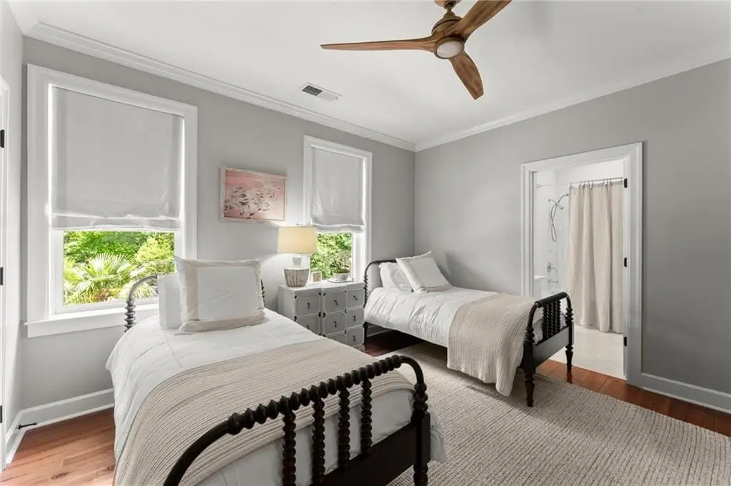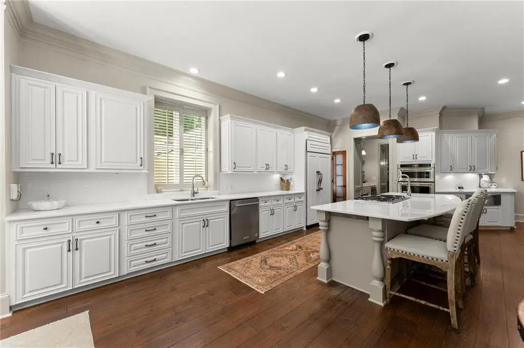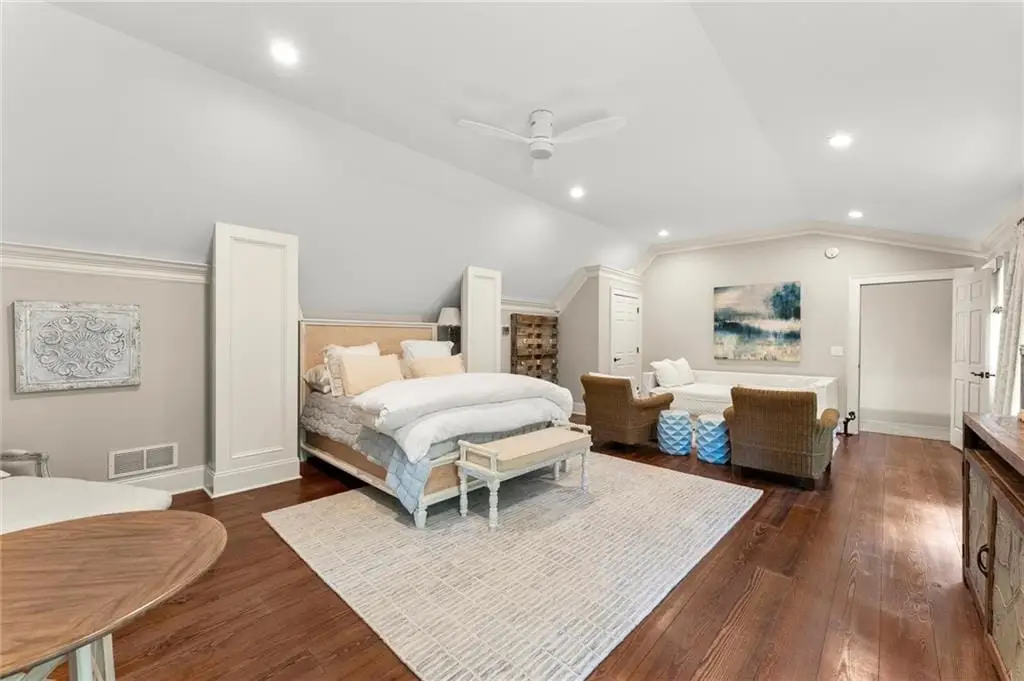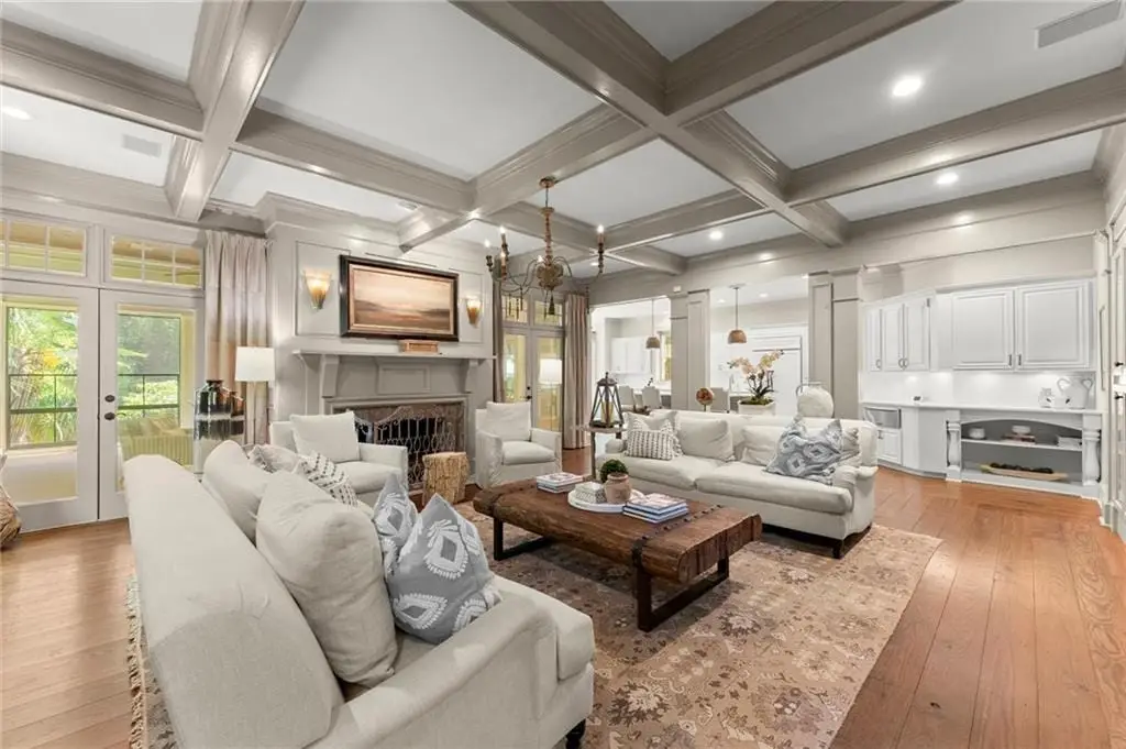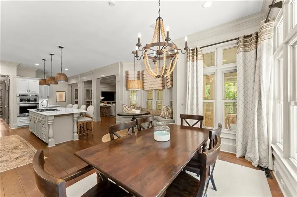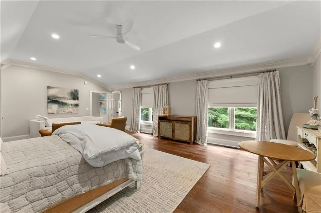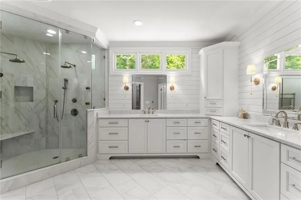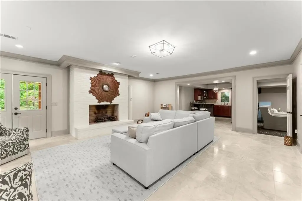 Exceptional home in Atlanta Country Club on a quiet cul-de-sac is enhanced with refined architectural details such as window transoms, privacy alcoves, high profile molding, stair landings and much more. The professionally designed and renovated residence offers a cohesive and timeless transitional style throughout making it turnkey ready. Upon entry, a two-story foyer will greet you with a truly elegant staircase and dramatic windows. A formal living room is adjacent to the entryway. A spacious but warm family room with coffered ceilings opens seamlessly to a sophisticated kitchen with marble countertops, Sub-Zero refrigerator, Thermador gas range, KitchenAid appliances, warming drawer, prep sink and banquet seating. A butlers pantry with wine fridge and glass cabinetry adds elegance while connecting the kitchen and dining room which easily accommodates 12 guests. The main level also offers a chic powder room with alcove entrance as well as a full bath with hidden shower, two large storage closets, and an expansive laundry room with built-ins and a desk area. A portico-covered private back entry leads into an access hallway with a mudroom and connects to the main laundry room. Upstairs the newly expanded Primary Suite is entered through a private sitting room with a fireplace. The oversized bedroom showcases a wall of windows with a stunning view of the pool and a fireplace. A true dressing room houses four custom, built-in armoires. The suite features His & Her walk-in closets. The fresh, all white primary bath includes a steam shower, heated floors, dual vanities, water closet and heated towel rack. Additionally, two more bedrooms with walk in closets are connected by a true Jack and Jill bath. A third secondary bedroom has an ensuite bath with a walk-in closet. A fourth suite style bedroom is accessed by a private staircase, ensuite bath and walk in closet. This large suite would be ideal for a nanny, guest or other. A secondary laundry room is located upstairs for convenience. A sixth bedroom with ensuite bath is on the lower level. The fully finished basement opens to a sunny spacious living area with a fireplace and leads to a fully equipped kitchen with double ovens, dishwasher, refrigerator and granite bar. Additionally there is a soundproof media room, weight room with sauna and a powder room. Enjoy year-round outdoor living on the covered porch featuring new Eze-Breeze windows, infrared heaters, and a cozy fireplace. The walk-out terrace level showcases an infinity-edge pool, brand-new paver pool deck (2024), hot tub with waterfall, outdoor kitchen with grill, sink, refrigerator, granite counters, bar seating, and a freestanding fireplace plus ample yard space beyond. Three-car garage with epoxy flooring. Ample parking in the driveway. This is luxury living at its finest in one of Atlanta’s most prestigious communities.