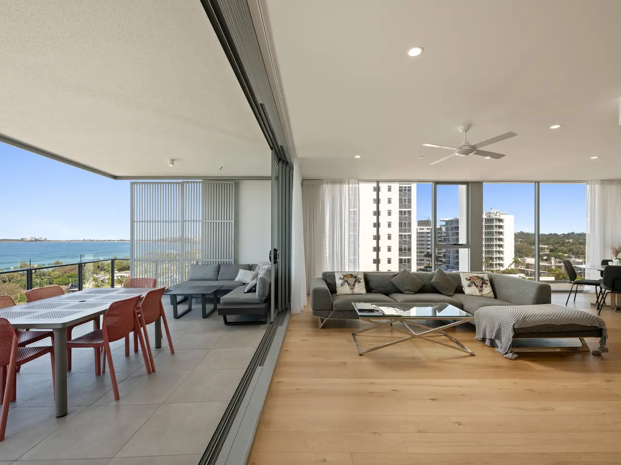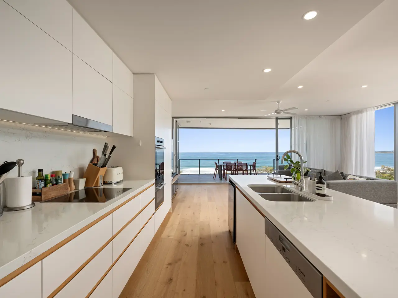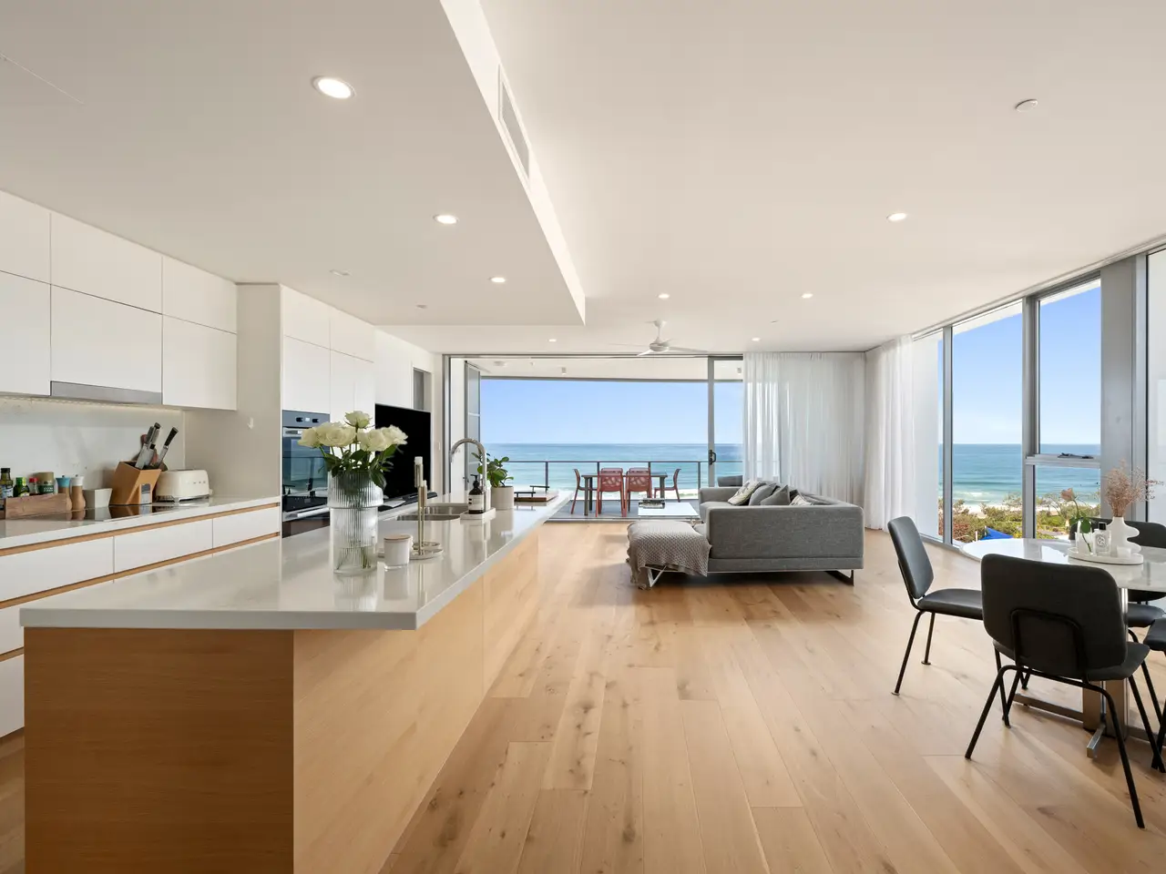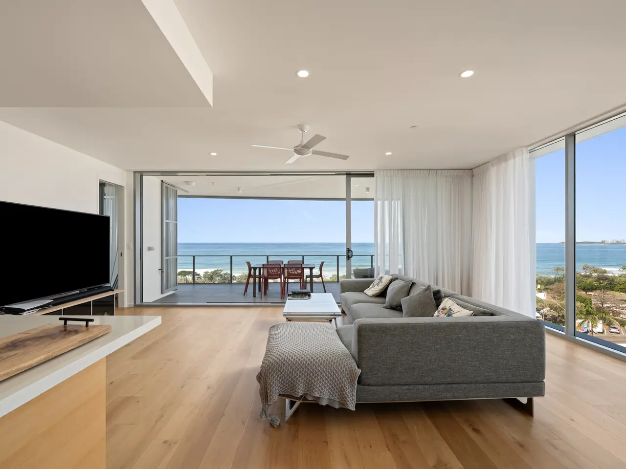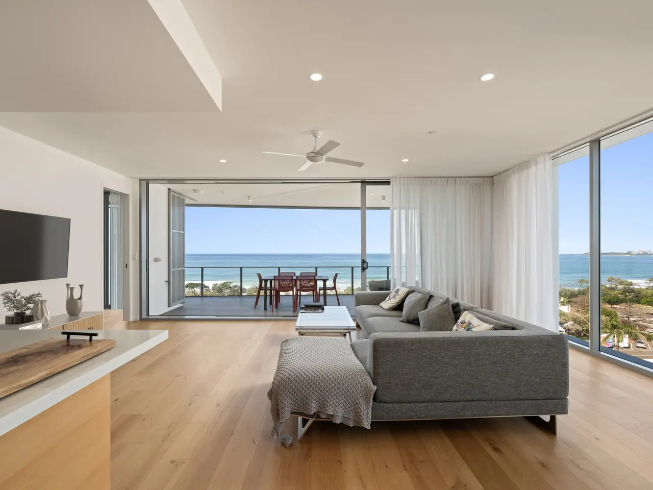 Words struggle to illustrate the panoramic views of the azure waters from the Coral Sea framed by the golden sand of the pristine beach below. Floor to ceiling glass ensures every inch of this sublime properties panorama is drawn into the home. Cooling sea breezes, golden sunrises and the sound of rolling waves are captured and fill the apartment with life and light. At over 175m2 this house size apartment will suit those looking to downsize in style or secure their long coveted dream home. An 8th floor position ensures the prized views will never be built out and the world below disappears in peaceful privacy. A private entry allows for a spectacular reveal of the kitchen lounge and dining areas. All flooring throughout the living areas is a soft golden hybrid timber adding to the light, bright beach side aesthetic. The kitchen is generous, luxurious and well equipped. Cooking for a large gathering is a breeze within this immaculately conceived and expertly executed gourmet hub. Fixtures include, Miele pyrolytic and combo ovens, induction cooktop, integrated fridge/freezer and built-in Vintec wine fridge. Expansive counter tops, endless storage and soft close drawers are all included. The master bedroom is equally impressive. A sectioned balcony allows for extra privacy and equal enjoyment of the sunrise views over the ocean. A large walk in wardrobe is finished with a dressing table/make up station. The luxurious ensuite is a perfect match. Two person shower room with ample bench space, deep soaking bath and his and hers vanities are lifted with the added bonus of a picture window to the ocean view. A relaxing bath becomes a journey for the soul. Two additional bedrooms with built-in wardrobes complete the accommodation picture. The main bathroom is centrally located perfect for entertaining, has a large shower and loads of storage. With over 34m2 of deep balcony, your ability to enjoy the majestic position is not limited by season or weather. Here you will find room for outdoor dining, lounge and BBQ area, more sitting area is available outside the master bedroom. The entire ocean facing wall of the apartment can be retracted to create a seamless connection to the natural beauty to the impeccable design within. This property is a design masterpiece with a natural masterpiece as it's setting. At a glance - Three large bedrooms all with built in wardrobes and walk-in wardrobe for the master - Views from almost everywhere within the apartment - Pool, BBQ area and gym within the complex - Wine bar at the entrance to the complex - Two side by side carparks, double secured and close to lifts - Hybrid timber floors - Reverse cycle ducted air conditioned - Integrated fridge and Vintec wine fridge included - Master ensuite comes with a bath with a view to the ocean - Loads of storage - Integrated laundry with hanging space and storage - Blackout blinds installed in the bedroom and sheer curtains throughout Location - Short stroll to the patrolled beach and surf club - Begin your coastal walk/ride at your front door and enjoy unbroken access to Mooloolaba and beyond - Surrounded by restaurants, cafes and retail - Grocery shopping, post office, doctors and more within a 5 minute stroll at Cotton Tree - Close to Sunshine Plaza, Duporth av, Cotton Tree esplanade services and shops - Approx 15 minutes to the Sunshine Coast Airport *This property is being sold by auction or without a price and therefore a price guide cannot be provided. The website may have filtered the property into a price bracket for website functionality purposes.