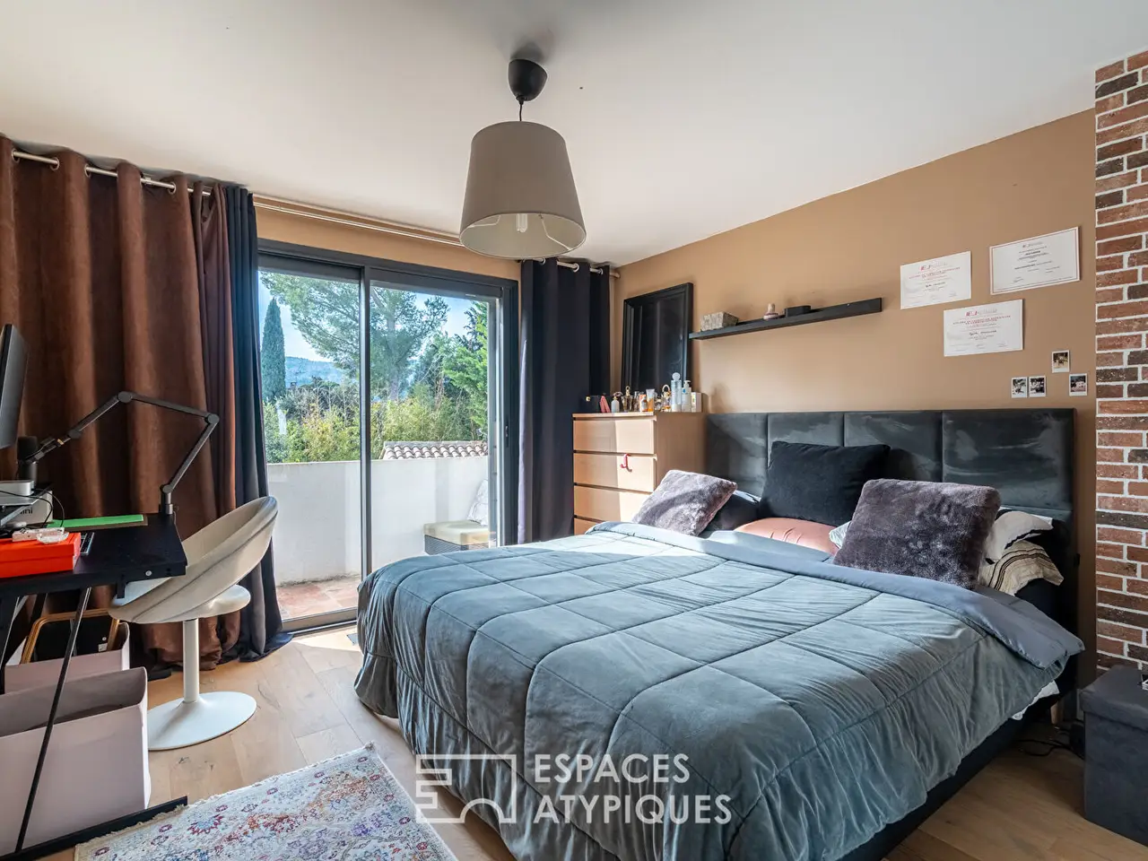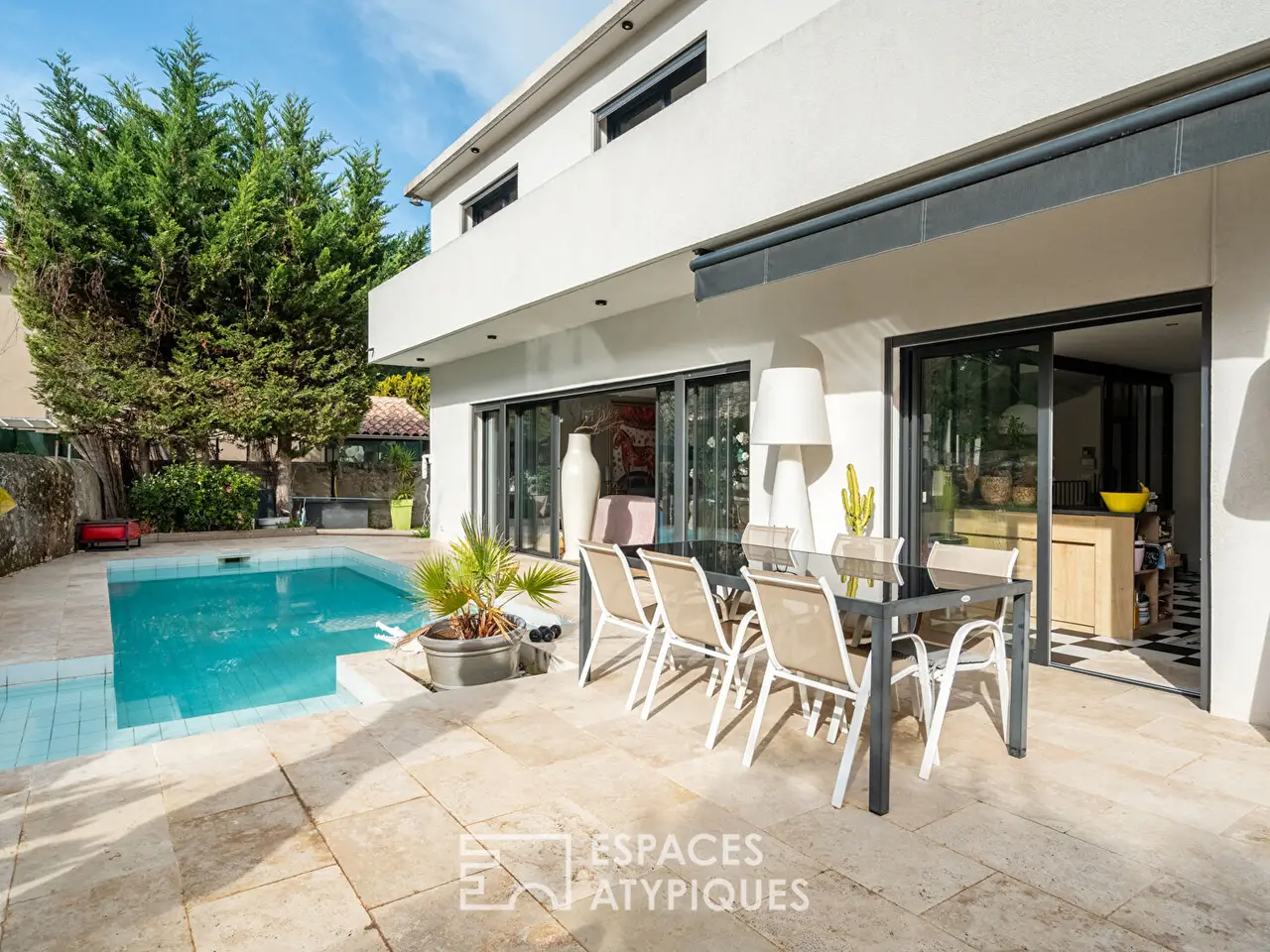 Contemporary house with swimming poo Ideally located in Marseille's 9th arrondissement, in the immediate vicinity of the village center of Mazargues, this contemporary house offers 210 sq m of living space and sits on a 500 sq m plot with a terrace, swimming pool, and parking area.The choice of high-quality materials such as marble and solid wood flooring blends seamlessly with the design principles of contemporary living, characterized by numerous openings and ensuring a constant connection with the outdoors and abundant natural light.The living spaces, arranged around a large living room, open directly onto the exterior and the swimming pool. The kitchen, separated by a sliding industrial-style glass partition, integrates naturally into the living area, where the volumes flow together with fluidity. A magnificent wrought-iron staircase leads to the upper floor, where the master suite and two bedrooms share a bathroom. This level benefits from a large balcony accessible from every room. On the lower level, a 70sqm space, currently used for storage and relaxation, could be converted into a self-contained apartment with a living room, bedroom, and bathroom. The exterior is designed around the swimming pool, which is the true centerpiece and offers several distinct areas including an outdoor lounge, dining table, petanque court, and a children's play area.Parking for several cars, air conditioning, and ample storage further enhance the appeal of this property. It is conveniently located near shops, schools, public transport, and the sea.ENERGY RATING: B / CLIMATE RATING: A. Estimated annual energy costs for standard use, based on 2022 energy prices: between EUR1250 and EUR1750 per year.REF. 13605Additional information* 5 rooms* 4 bedrooms* 3 bathrooms* 1 floor in the building* Outdoor space : 500 SQM* Property tax : 2 871 €Energy Performance CertificatePrimary energy consumptionb : 85 kWh/m2.yearHigh performance housing*A*85kWh/m2.year2*kg CO2/m2.yearB*C*D*E*F*GExtremely poor housing performance* Of which greenhouse gas emissionsa : 2 kg CO2/m2.yearLow CO2 emissions*2kg CO2/m2.yearA*B*C*D*E*F*GVery high CO2 emissionsEstimated average annual energy costs for standard use, indexed to specific years 2021, 2022, 2023 : between 1250 € and 1750 € Subscription IncludedAgency feesThe fees include VAT and are payable by the vendorMediatorMediation Franchise-Consommateurswww.mediation-franchise.com29 Boulevard de Courcelles 75008 ParisInformation on the risks to which this property is exposed is available on the Geohazards website : www.georisques.gouv.fr