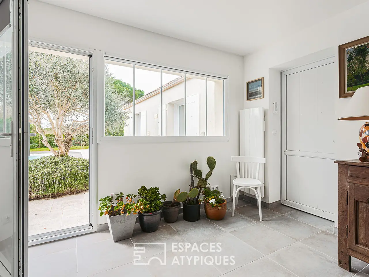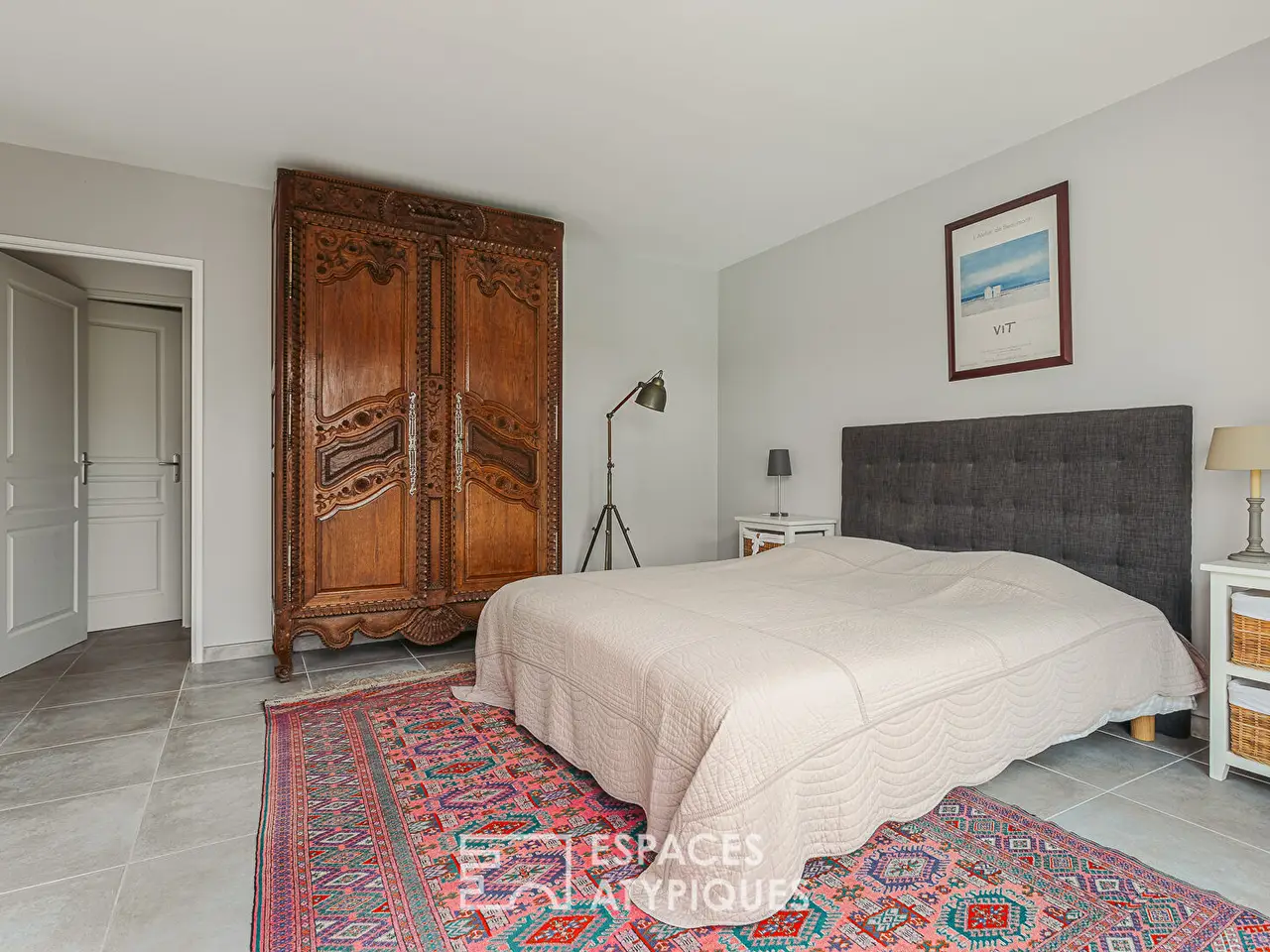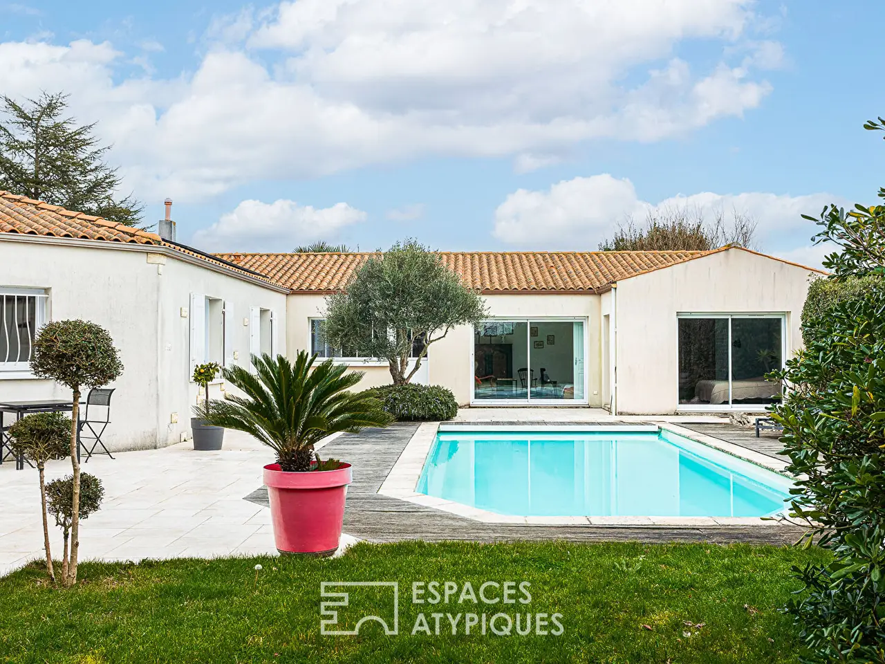 In the immediate vicinity of the town centre and shops, this family home is located in a quiet residential area of the village of Marsilly. This property offers a peaceful living environment, sheltered from view and with neat services. It reveals a hilly outdoor space, composed of a large swimming pool with pool house and a lush landscaped garden. From the entrance, the house charms with its spacious and bright living spaces. The authentic kitchen evokes the simplicity of country houses, opening onto a living room bathed in light thanks to its through exposure, overlooking the terrace and the exteriors. A fireplace and an office with elegant beams complete this space. The discovery continues with the main wing of the house with a large storage cloakroom, followed by a first parental suite, in a cozy style, with a large dressing room and a recent bathroom. A second suite is revealed with shower, bathtub and toilet, in order to fully enjoy the intimate atmosphere of the place. Finally, a shower and a toilet, both independent, enrich this night space. In the extension, a large garage allows you to easily park a vehicle, decorated with a cellar in the basement. Currently adjoining the second part of the property, it can be reduced by half to create a passageway communicating with the main house. The second wing of the house, built in 2012 and completely independent, projects towards a living space that can be intended for your guests. Indeed, a bedroom and a small living room allow you to accommodate them with comfort and modernity, as well as a suite of more than 23m2 with shower room and separate toilet. The plot is fully enclosed and not overlooked, closed by an automatic gate, and has three outdoor parking spaces and a garden shed to perfect your daily life in this harmonious living environment. All shops and schools are accessible within a radius of 600 meters, and the town has public transport and cycle paths to easily reach La Rochelle and the Ile de Re. ENERGY CLASS: 'D' / CLIMATE CLASS: 'C'. Estimated average amount of annual energy expenditure for standard use, established from energy prices for the years 2021, 2022, 2023: between EUR2,971 and EUR4,019. REF. EALR1960 Additional information * 9 rooms * 4 bedrooms * 1 bathroom * 3 shower rooms * Outdoor space : 1170 SQM * Parking : 3 parking spaces * Property tax : 2 628 € Energy Performance Certificate Primary energy consumption d : 197 kWh/m2.an High performance housing