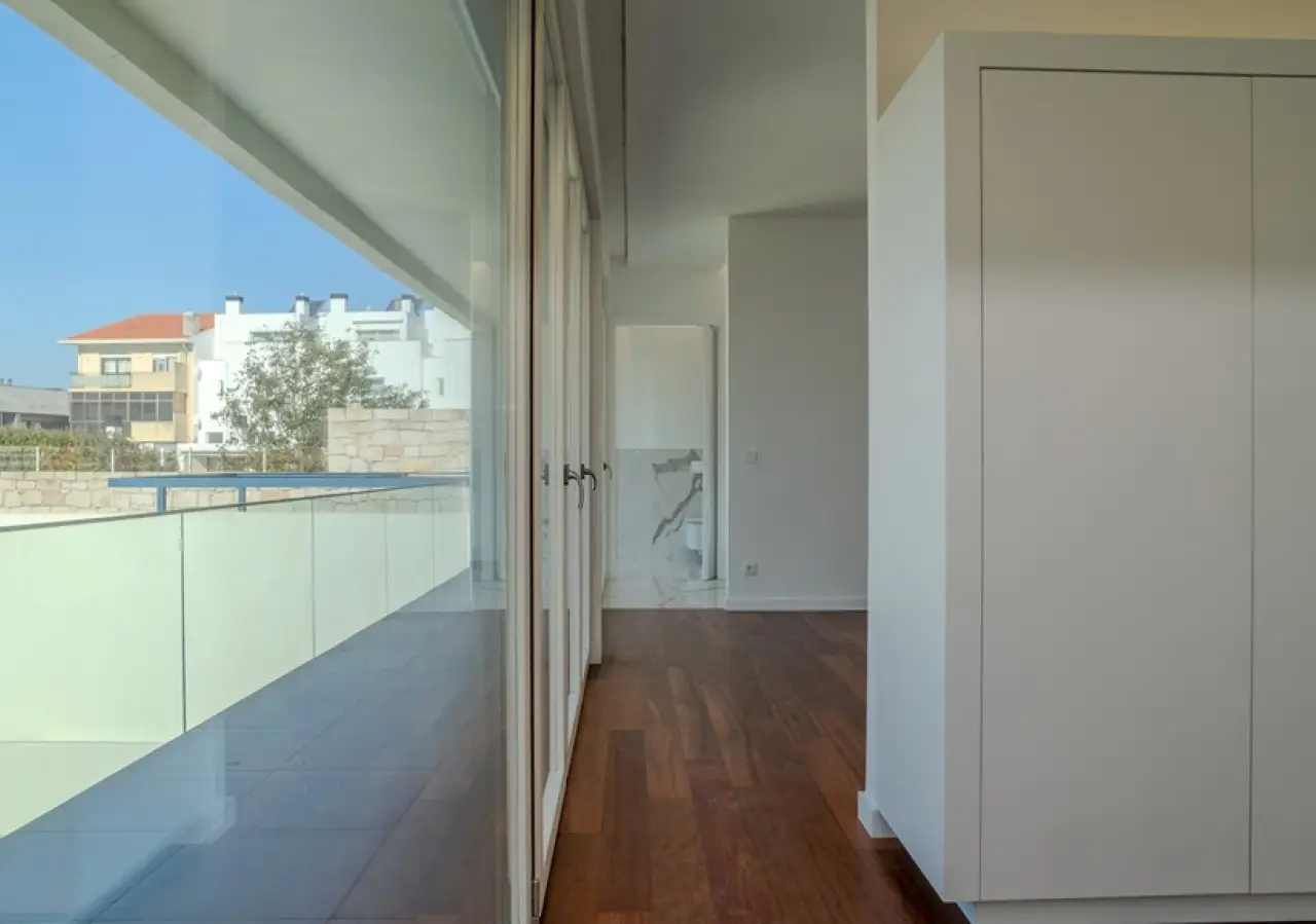 Fantastic new three-bedroom detached house on four fronts for sale in Leça da Palmeira. The property, with its high-quality finishes, generous areas, excellent sun exposure and large glazed windows, gives the house a unique light . Spread over three floors, on the first floor you'll find the social area comprising a generous living room and kitchen equipped with a wine cellar, a guest bathroom and access to the outdoor garden area. On the second floor you'll find the intimate area with three ensuite bedrooms. There is also a garage for four cars and a laundry room in the basement with direct elevator access to the upper floors. Inserted in a private condominium made up of five luxury villas, providing maximum comfort, security and privacy. Located in a privileged area with a wide range of shops, services, the Leixões Marina, the beach and restaurants. CHARACTERISTICS: Plot Area: 332 m2 | 3 574 sq ft Deployment Area: 147 m2 | 1 582 sq ft Building Area: 334 m2 | 3 595 sq ft Bedrooms: 3 Bathrooms: 4 Garage: 4 Energy efficiency: A FEATURES: 3 Bedroom Villa Private Condominium Elevator 3 Suites exterior Area: 185m2 Balcony: 15.85m2