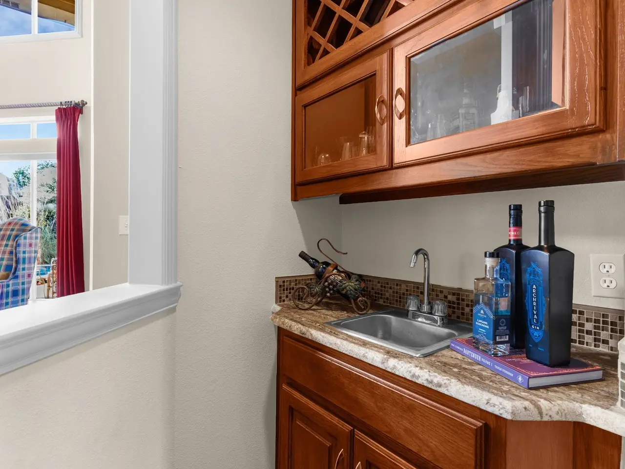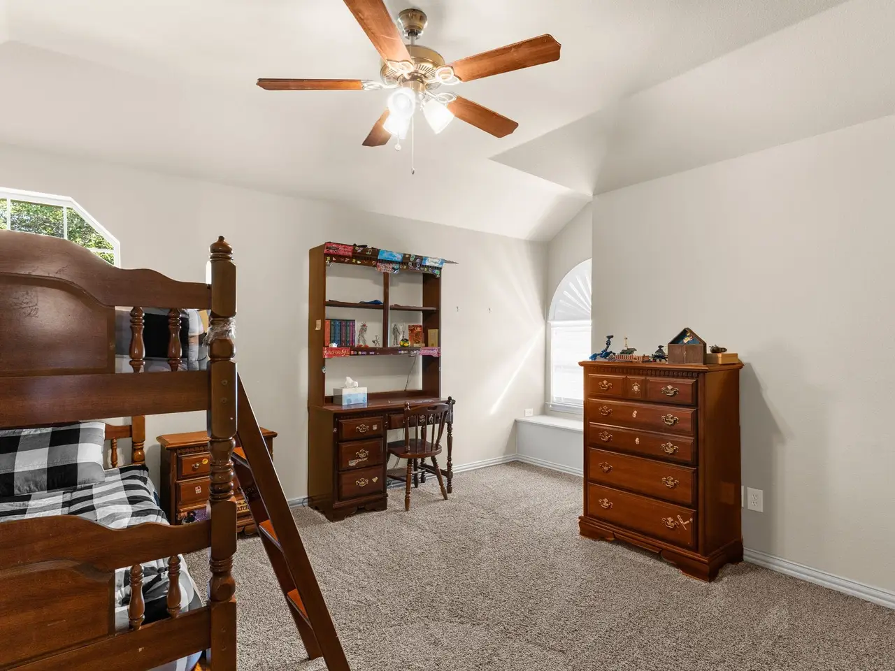 Welcome to this custom-built, original-owner home located in a second-to-none neighborhood within Stonebridge Ranch. Partial lake view with catch and release fishing only steps away. This elegant property offers timeless construction with 100% brick exterior, mature oak and crepe myrtle trees. The private backyard features a beautifully renovated foley diving and lap pool, size 38 x 18 x 10 ft. deep. View the serene backyard from the breakfast nook and patio. The home has a primary down and a second bedrm or office down with full bath next to it. 3 bedrooms up with LA. Two attached garagesa 2-car garage and a 1-car garageprovide exceptional storage and parking flexibility. Inside, the home underwent extensive updates, including full interior paint, new flooring throughout most of the rooms (hardwood, tile, and carpet), window blinds downstairs, and updated kitchen finishes such as leathered granite countertops, stainless steel appliances, shiplap island, backsplash, and hardware on all cabinetry. The primary bath was refreshed with new paint, faucets, toilets, and hardware. Additional features include two fireplaces (living room and primary bedroom), a wet bar off the living room, and a utility room plumbed for a sink with space for an additional refrigerator. Mechanical updates include two water heaters, roof in 2017, underground sprinkler system, downstairs HVAC replaced in 2012, and the upstairs HVAC replaced in 2015. Exterior improvements include fresh exterior paint in 2025 and solar landscape lighting. The pool was fully redone in 2024 with pebble, plaster, travertine, spa enhancements, $2,000 in LED lighting, stabilized skimmers, and an auto filler. Artificial boxwoods are placed outside the dining room window. Stonebridge Ranch offers unmatched amenities, including the Aquatic Center, sports courts, numerous playgrounds, lakes, greenbelts, and strong community appeal. This home delivers an exceptional blend of quality, privacy, location, and lifestyle.