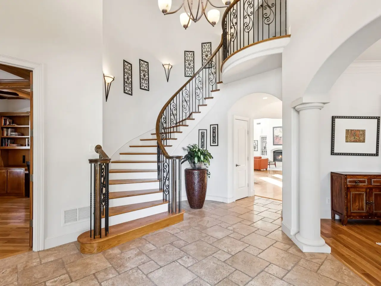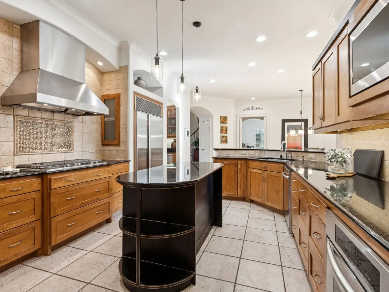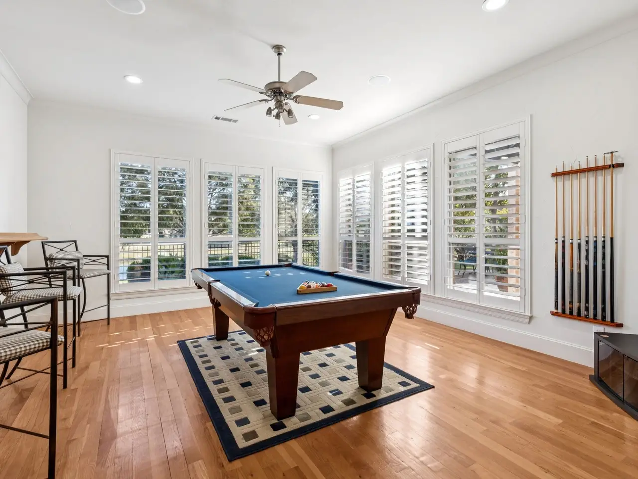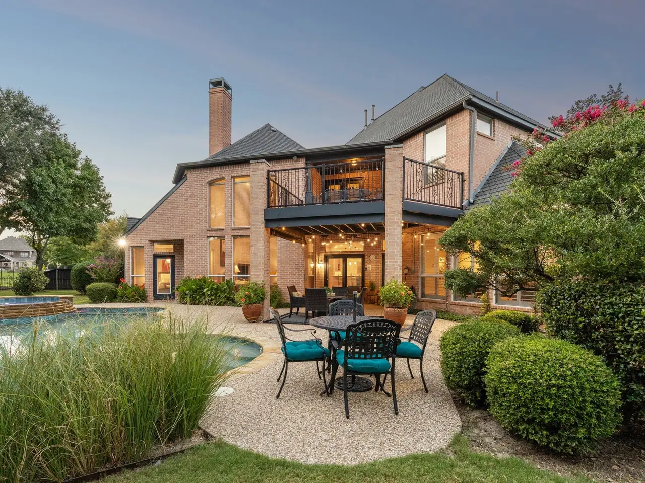 Rare East-Facing Gem in McKinney, TX - voted Best Place to Live in the U.S! Experience refined living in this custom masterpiece, gracefully situated on a large corner lot embraced by sweeping greenbelt views & tranquil ponds. Walls of windows frame a picture of serenity, while the setting offers both privacy & the vibrant active lifestyle of Stonebridge Ranch - with a highly rated Bennett Elementary just a short walk away. From the moment you arrive, stunning iron doors welcome you into a grand entryway where soaring ceilings & an open-concept design create the perfect stage for effortless entertaining. The chef’s kitchen is a showpiece, blending rich honey maple cabinetry with sleek granite countertops & premium appliances that will inspire culinary creations. The main level is a sanctuary of comfort & elegance. Retreat to the expansive primary suite, host guests in their own private suite, or work in style from the distinguished office with coffered ceilings. A versatile flex room with breathtaking pond views invites possibilities - from a game room to an intimate lounge. Gleaming hardwoods flow seamlessly throughout, adding warmth and timeless sophistication. Upstairs, the luxury continues with a spacious game or play area & three oversized bedrooms - each with hardwood floors, walk-in closets & bath access, ensuring comfort for all. Step outside to your own resort-style paradise. Multiple patios frame the sparkling pool & spa, where majestic trees & shimmering water create a backdrop of pure tranquility. Its the perfect setting to savor Texas sunsets & make lasting memories with family & friends. A rare combination of elegance & function, this residence also offers generous storage, expansive pantries & a side facing, three-car gated garage courtyard. With a subzero fridge, washer, dryer, TVs, state-of-the-art audio system & pool table included it's ready to move right in!