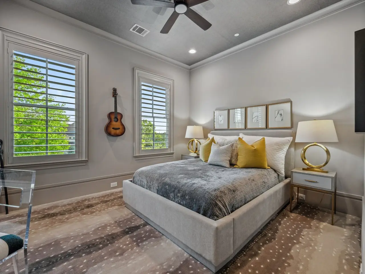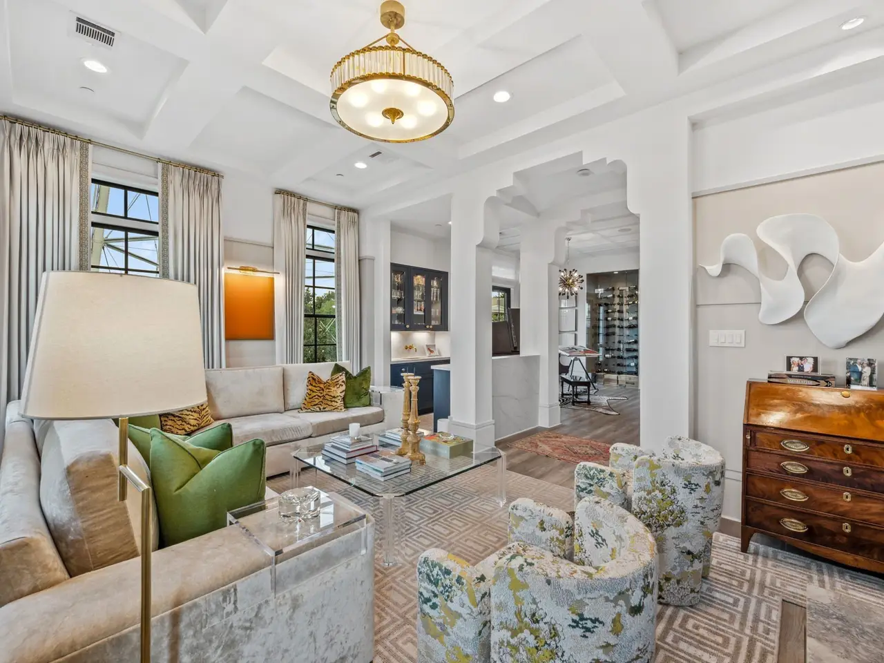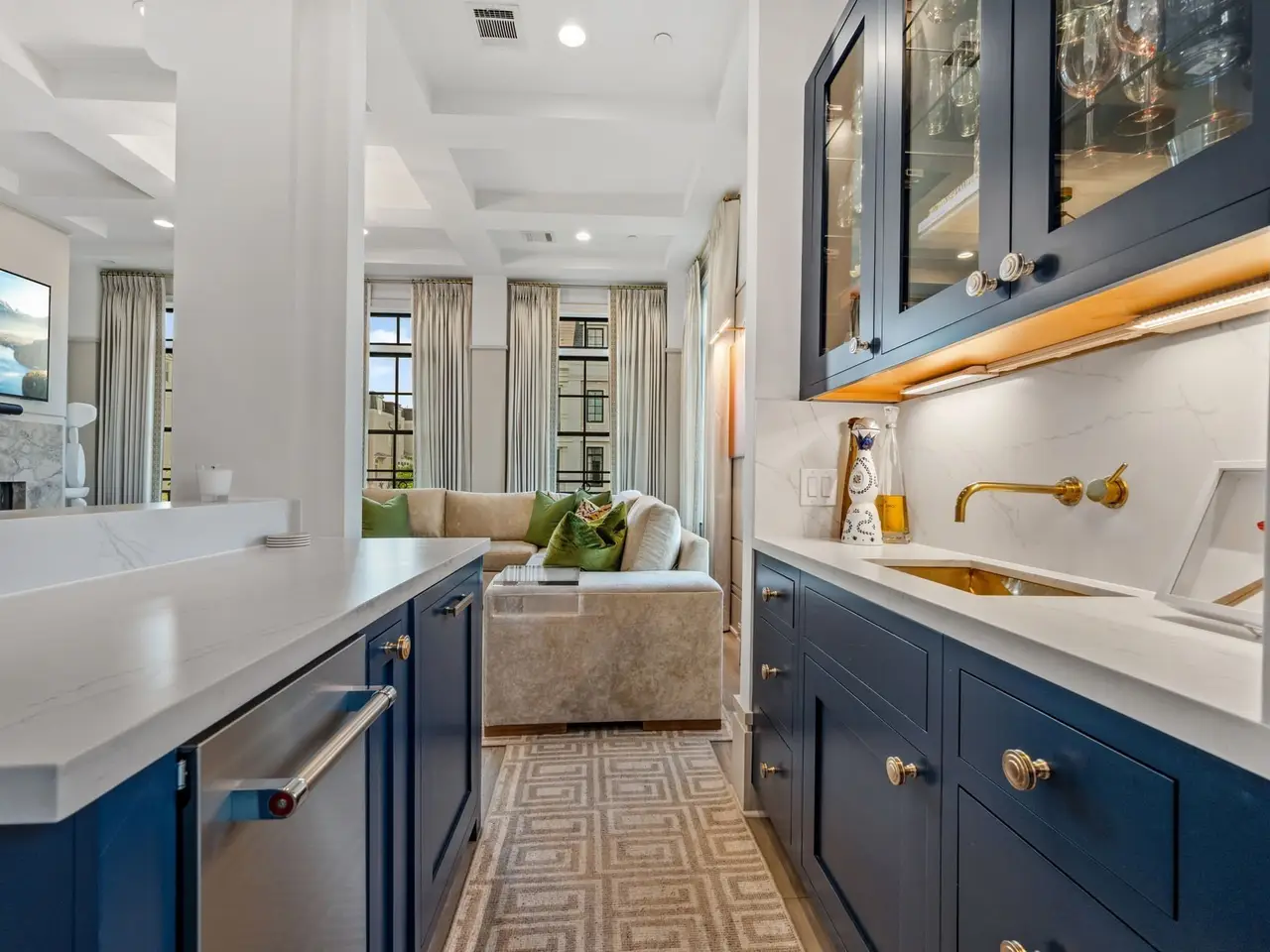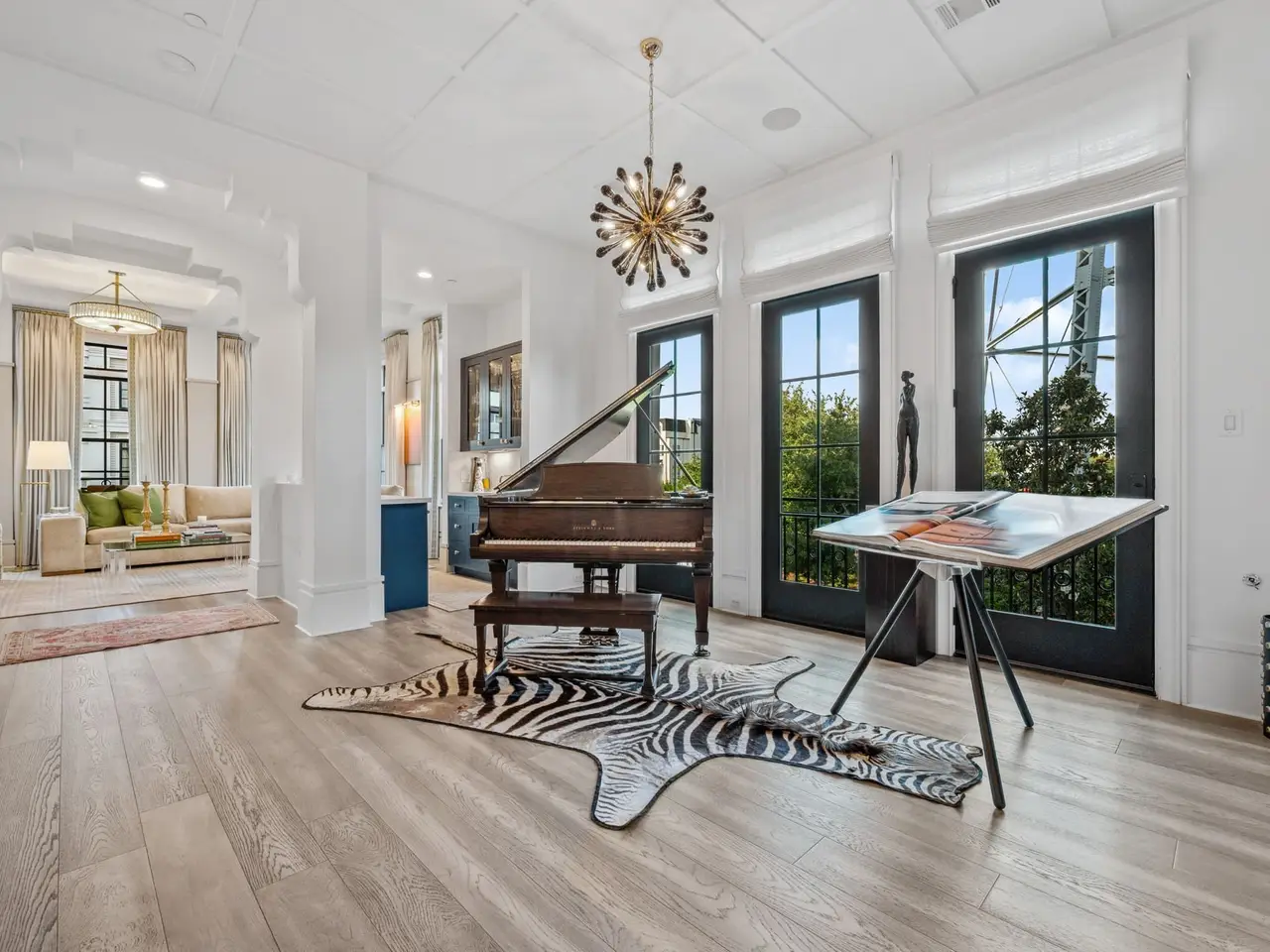Publication-worthy lock and leave thoughtfully appointed by esteemed L. Pearson Design. Upon entry, a fine guest suite is found adjacent the foyer complete with whole-home elevator. The sizable living room, bursting with natural light, provides ample space for gatherings both formal and casual. The opulent kitchen boasts a six-burner, double oven wolf range accompanied by an elegant waterfall island featuring dual sink faucets. A cozy dining area flanks the kitchen lending itself to intimate meals and conversation. Unveiled in the primary retreat is the epitome of luxury. Generous in size, a sitting area accompanies the warm fireplace and spa-like bath giving a sense of serenity to the space. The penultimate level showcases a handsome media space, additional secondary bedroom, and remarkable treetop views of the Houston landscape. From the custom window treatments to the sumptuous wallpaper and tasteful countertops, 81 Crain Square exudes graceful individuality. Per Seller