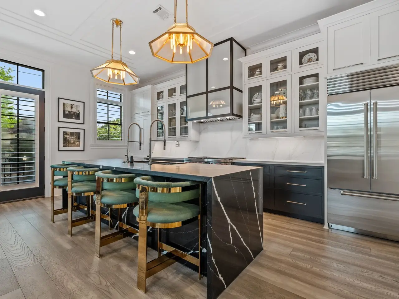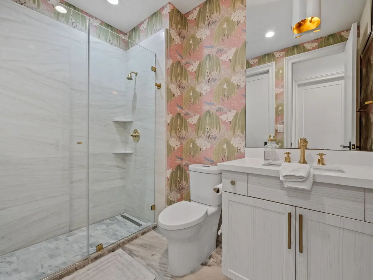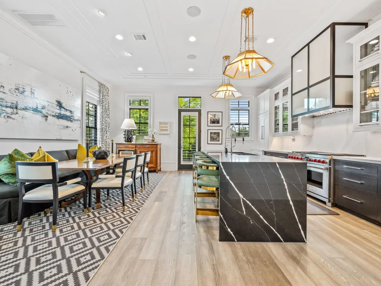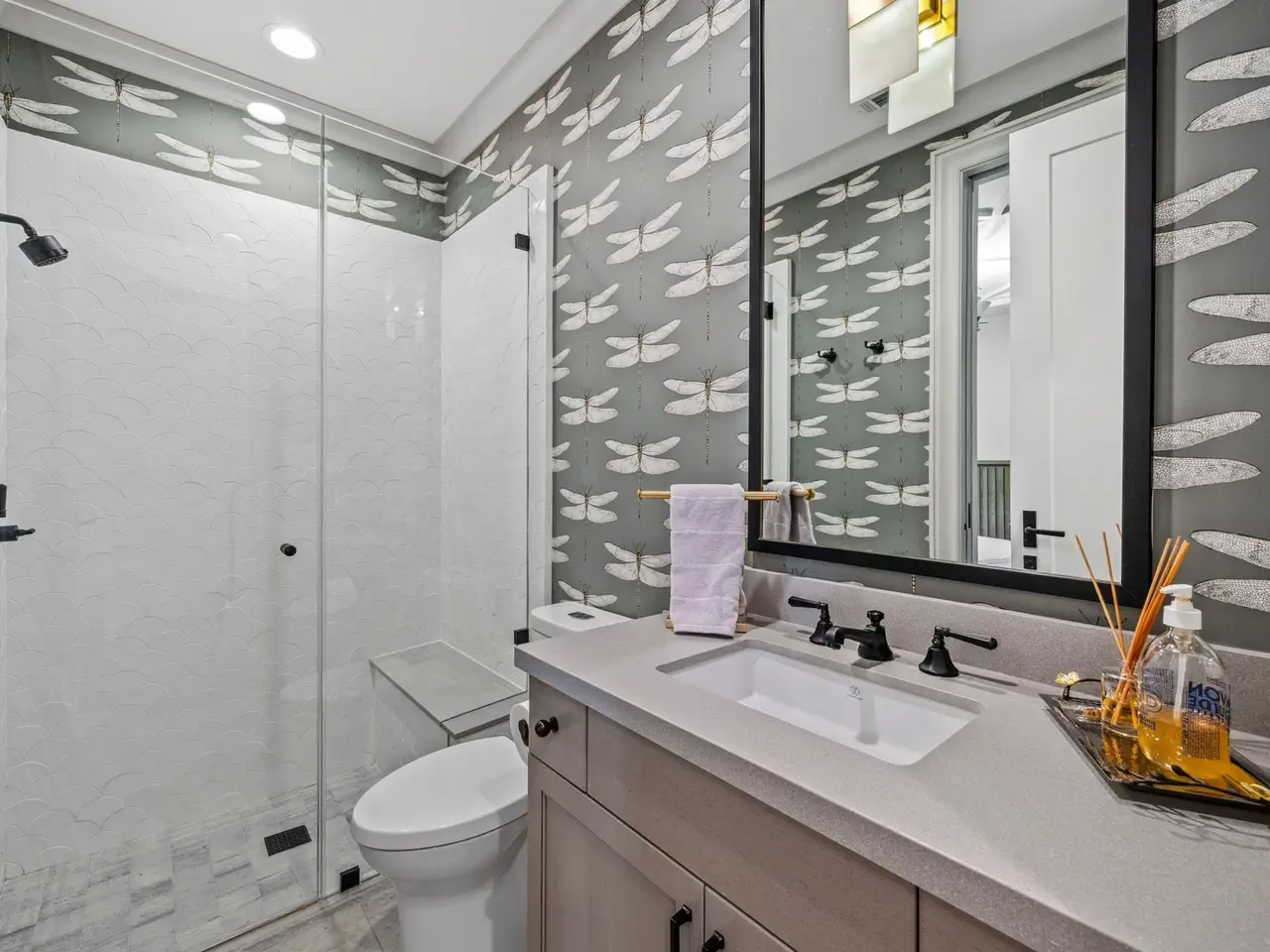 Publication-worthy lock and leave thoughtfully appointed by esteemed L. Pearson Design. Upon entry, a fine guest suite is found adjacent the foyer complete with whole-home elevator. The sizable living room, bursting with natural light, provides ample space for gatherings both formal and casual. The opulent kitchen boasts a six-burner, double oven wolf range accompanied by an elegant waterfall island featuring dual sink faucets. A cozy dining area flanks the kitchen lending itself to intimate meals and conversation. Unveiled in the primary retreat is the epitome of luxury. Generous in size, a sitting area accompanies the warm fireplace and spa-like bath giving a sense of serenity to the space. The penultimate level showcases a handsome media space, additional secondary bedroom, and remarkable treetop views of the Houston landscape. From the custom window treatments to the sumptuous wallpaper and tasteful countertops, 81 Crain Square exudes graceful individuality. Per Seller