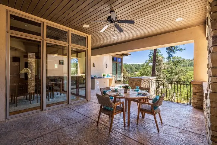 Welcome to this stunning 4,600 square foot custom home situated on a 1.1-acre lot. Featuring 4+ bedrooms and 3.5 bathrooms, it offers a luxurious living experience in Meadow Vista's Winchester Country Club community. Upon entering, you're greeted by sweeping forested views, an open floor plan, and an abundance of natural light streaming through expansive floor-to-ceiling windows that beautifully enhance the space. The home exudes a peaceful and inviting atmosphere throughout, with its beautiful hickory wood flooring and numerous skylights! The Chef's kitchen is equipped with high-end Wolf appliances, a Sub-Zero refrigerator, and ample space for entertaining. A large temperature-controlled wine cellar and butler's pantry enhance the kitchen experience. The expansive primary suite includes a private balcony, perfect for enjoying morning coffee or relaxing evenings while taking in the scenic surroundings, free standing bathtub, gorgeous marble vanities and large walk-in closet. Enjoy exclusive access to two private clubhouses, including the Swim & Tennis Club, and the highly acclaimed Robert Trent Jones Jr.-designed golf course, voted one of the toughest courses in Northern California. The community offers resort-style amenities, and 24/7 security patrol.